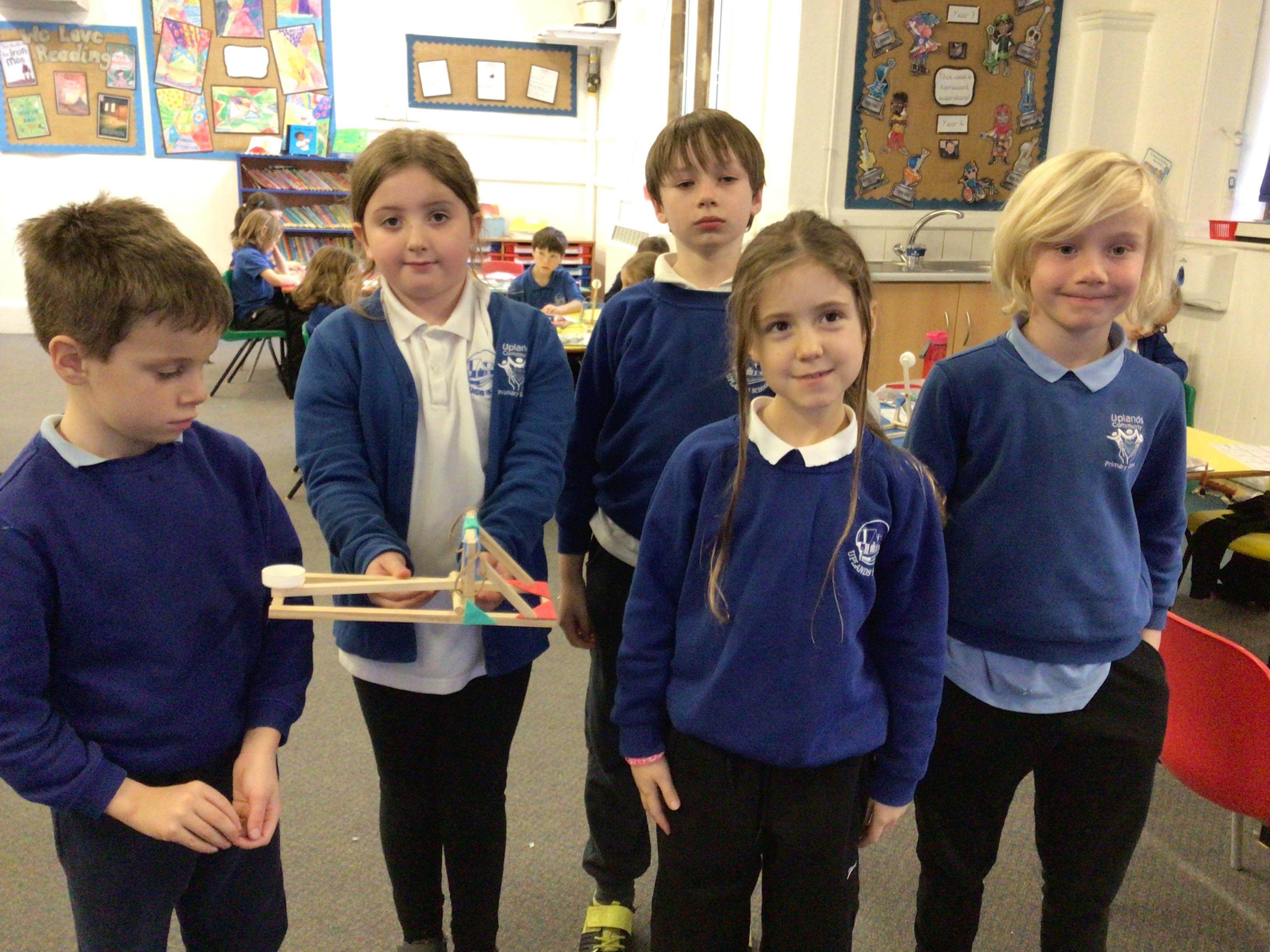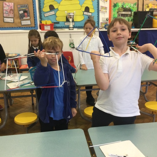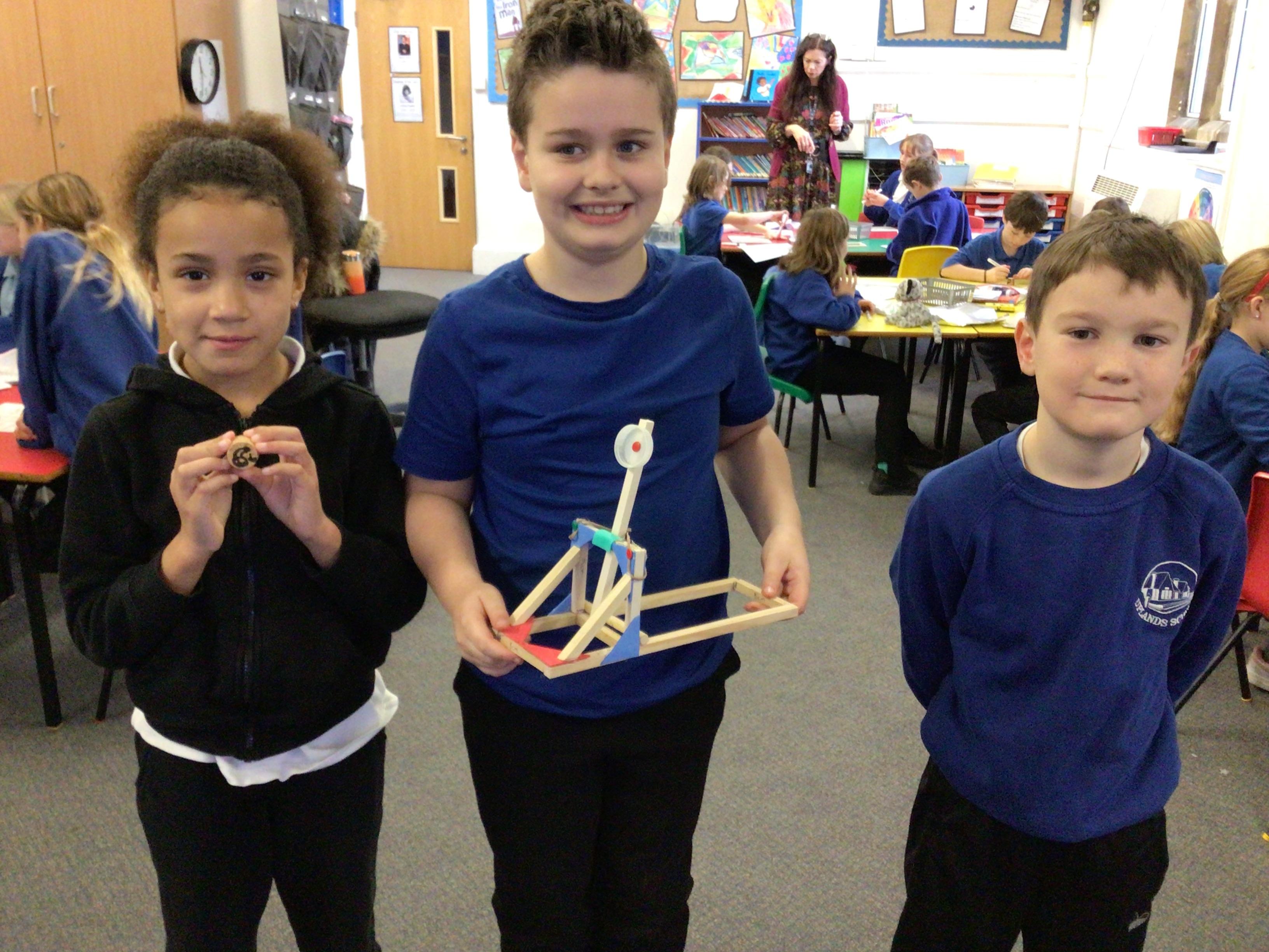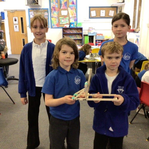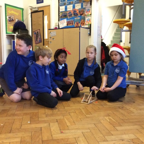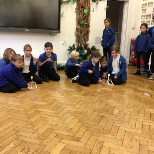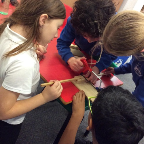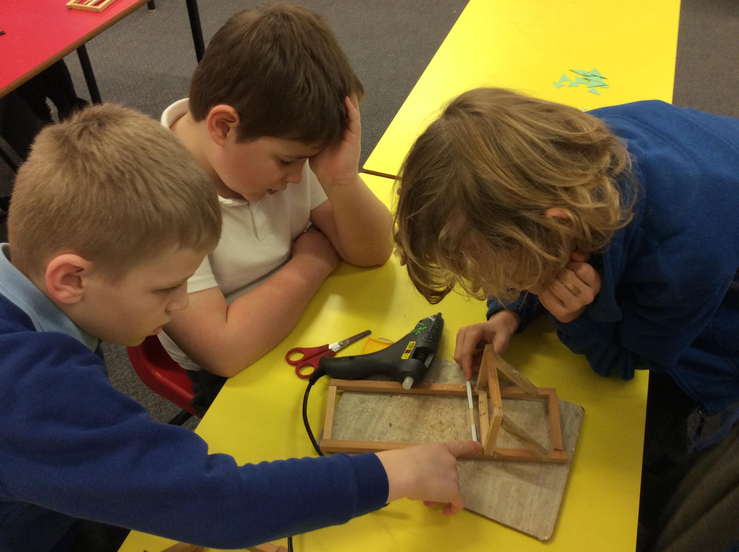 We finished our catapults this week and enjoyed trying them out with tin foil balls and corks. We were seeing how far across the hall we could get them.