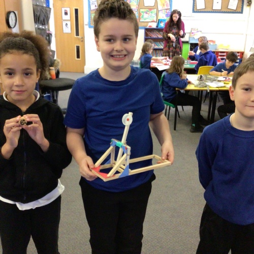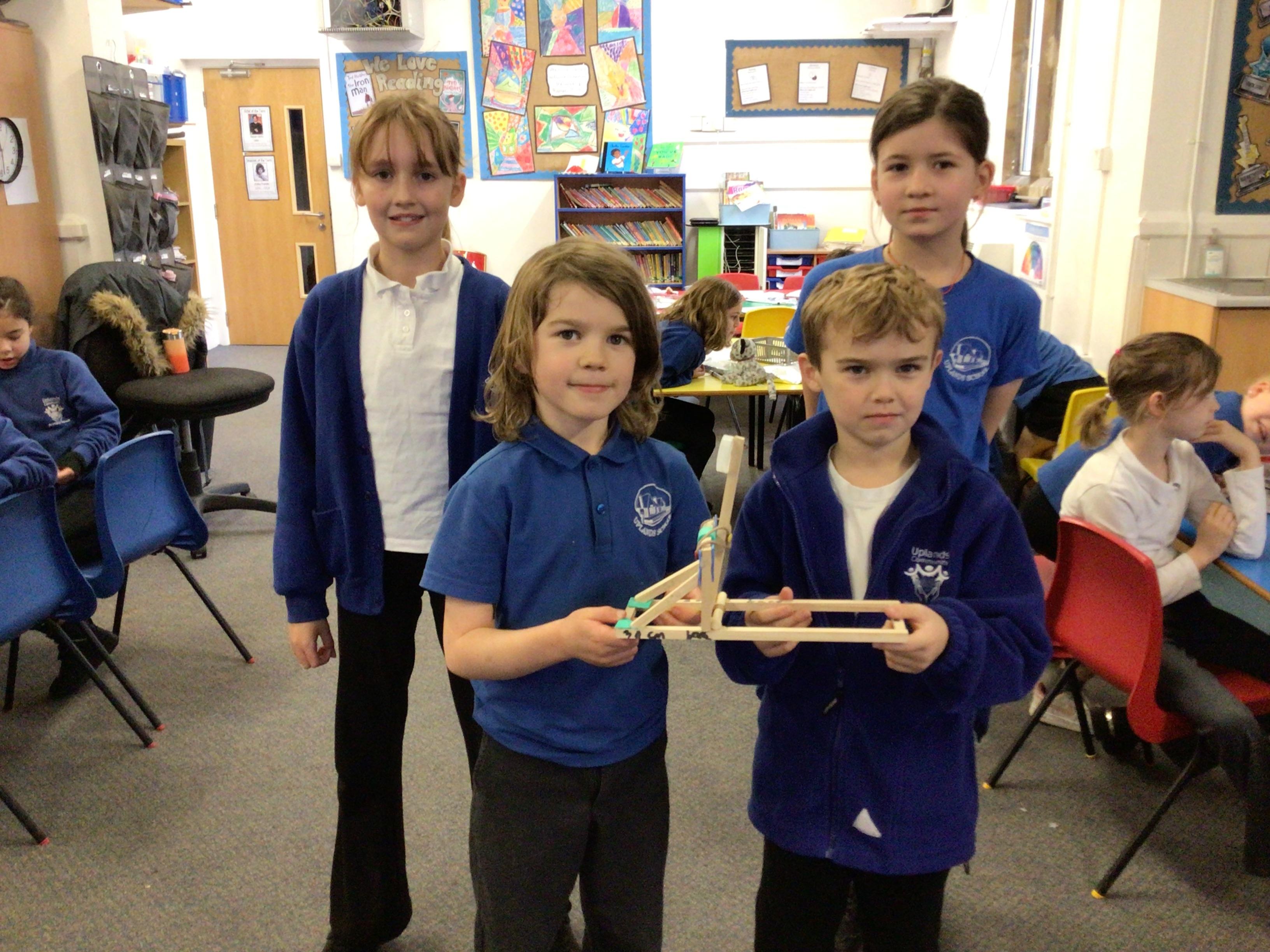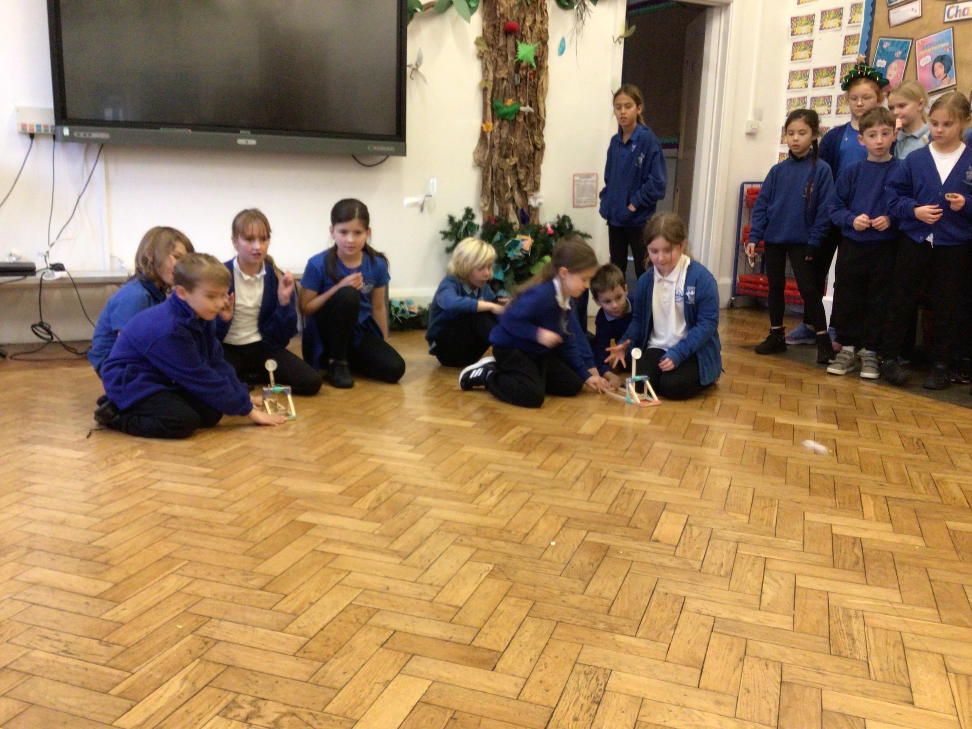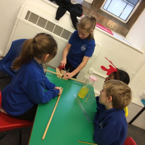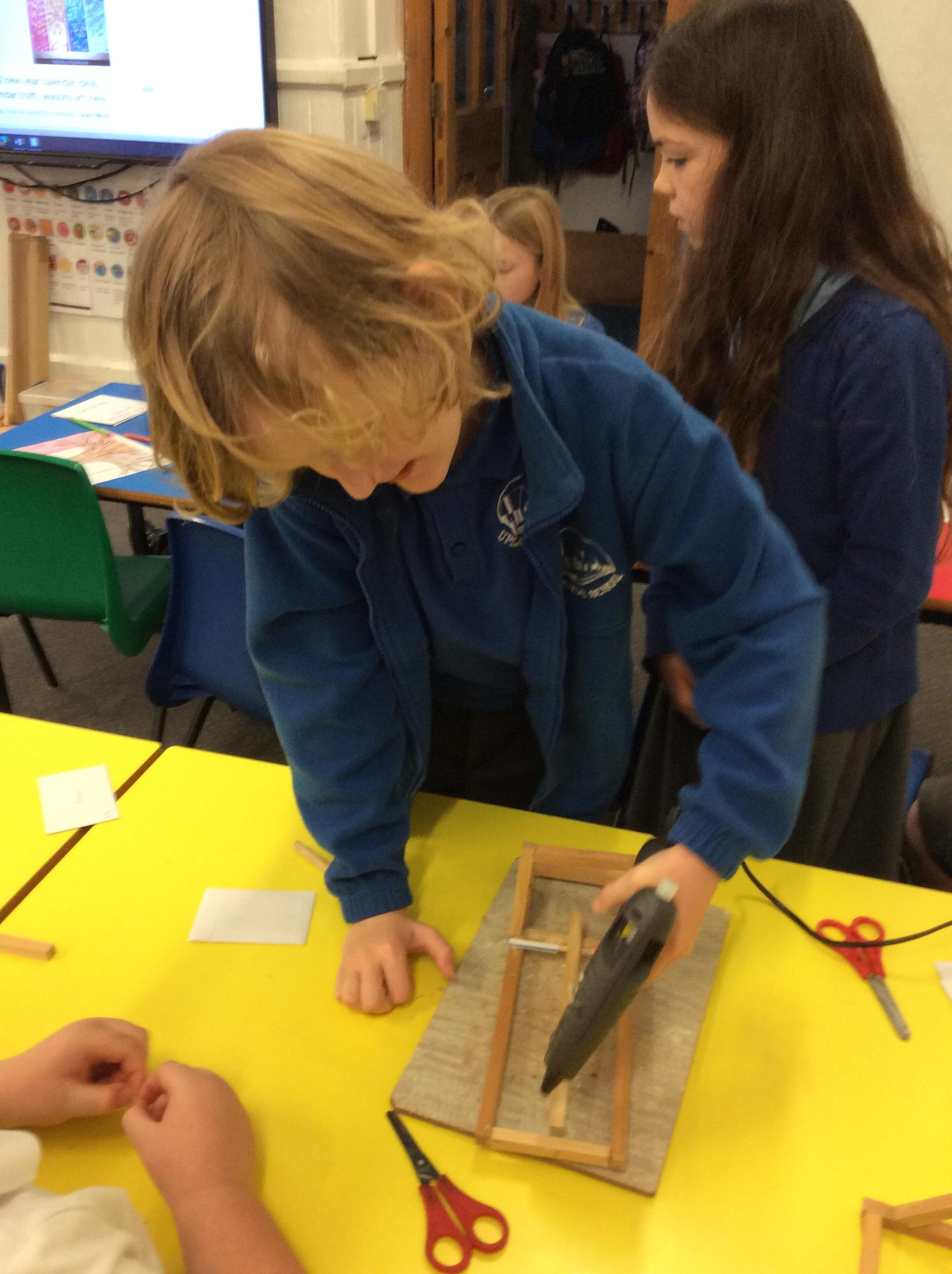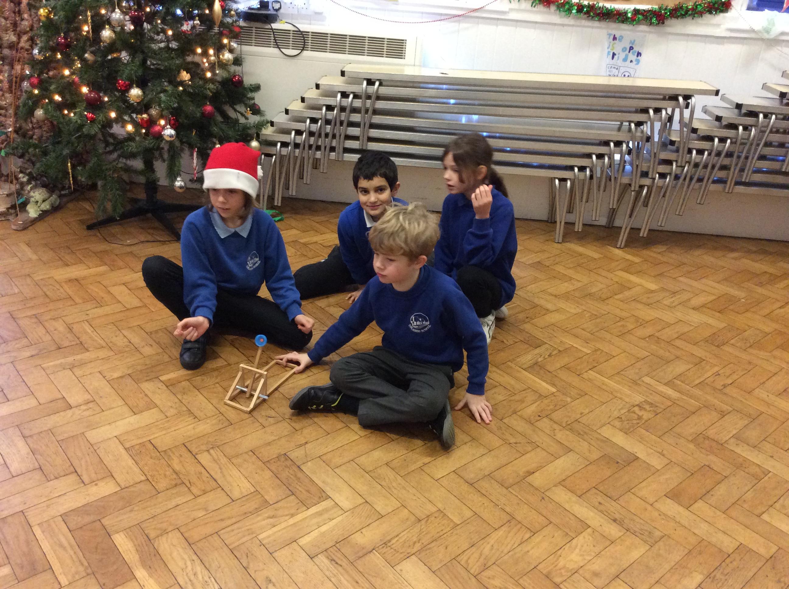 We finished our catapults this week and enjoyed trying them out with tin foil balls and corks. We were seeing how far across the hall we could get them.
