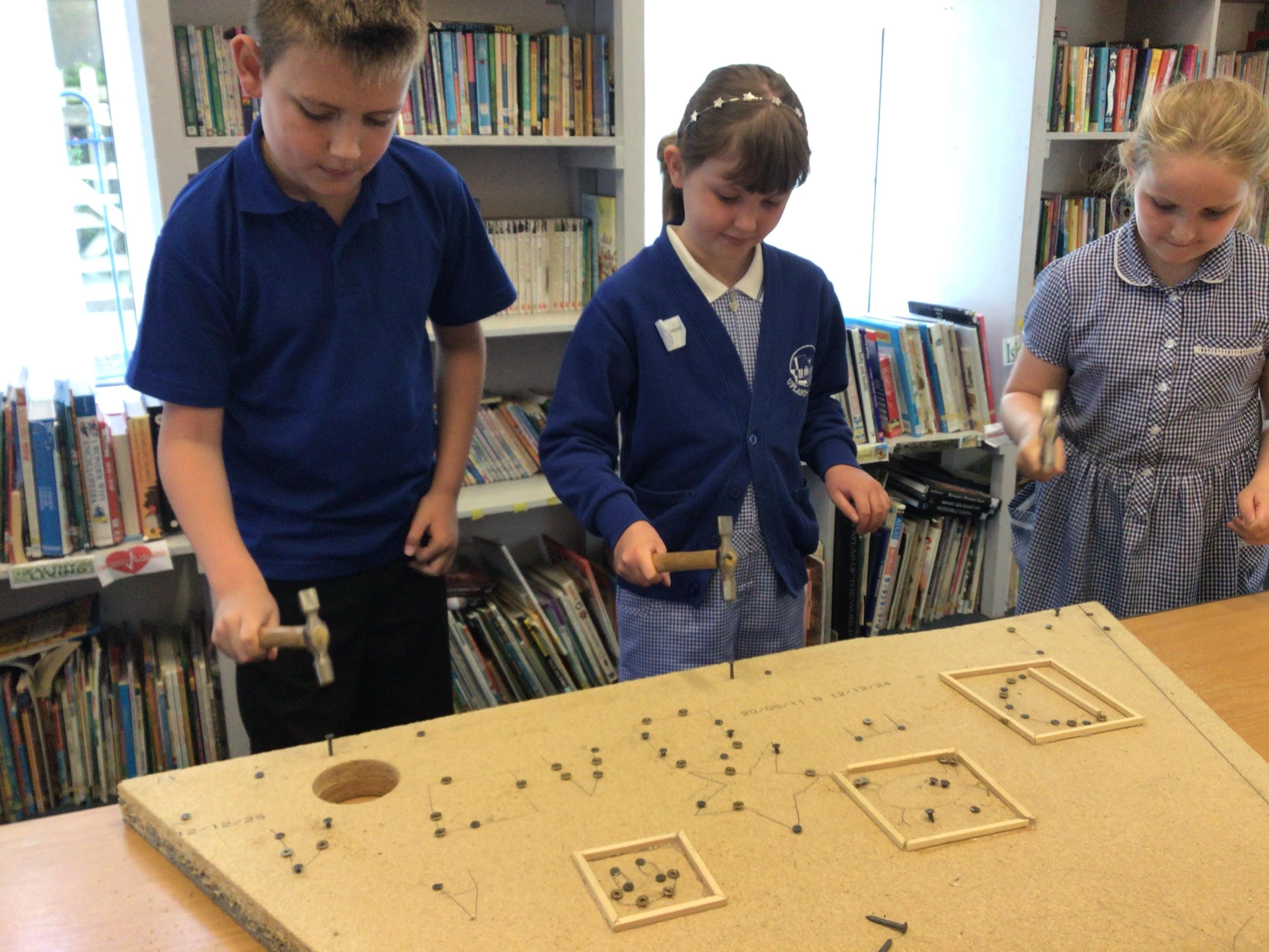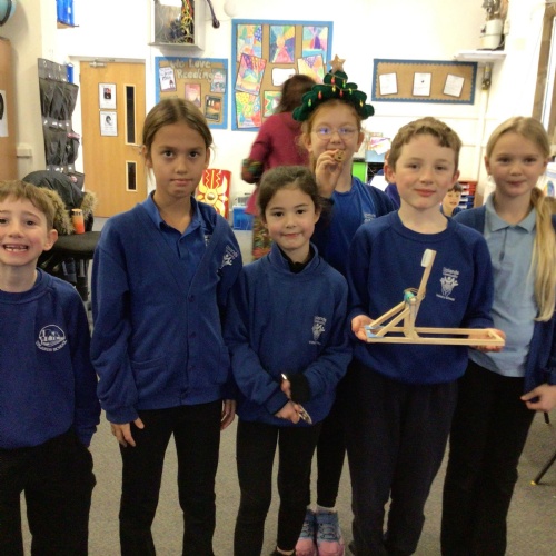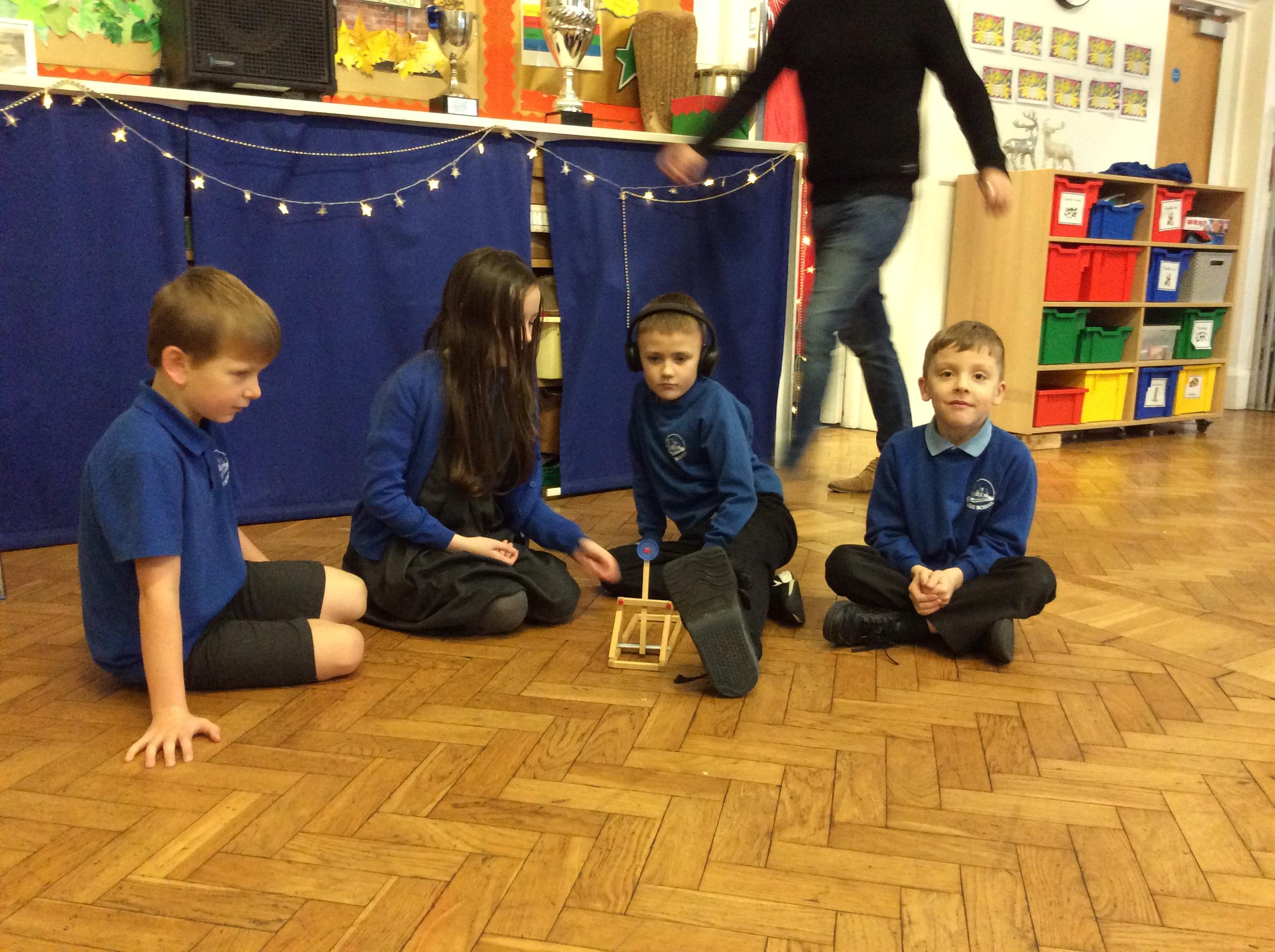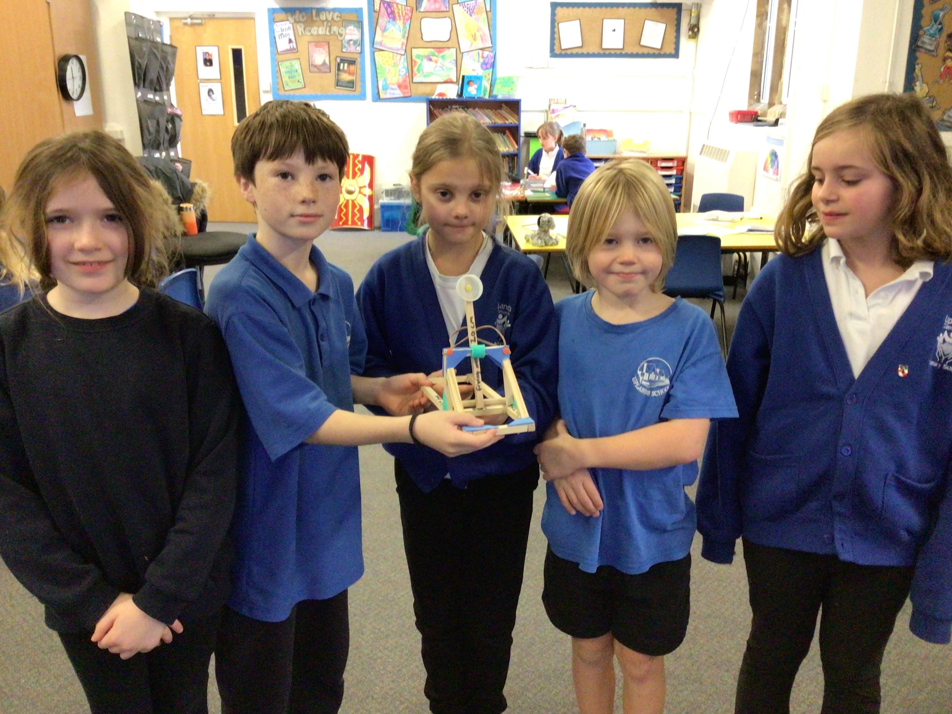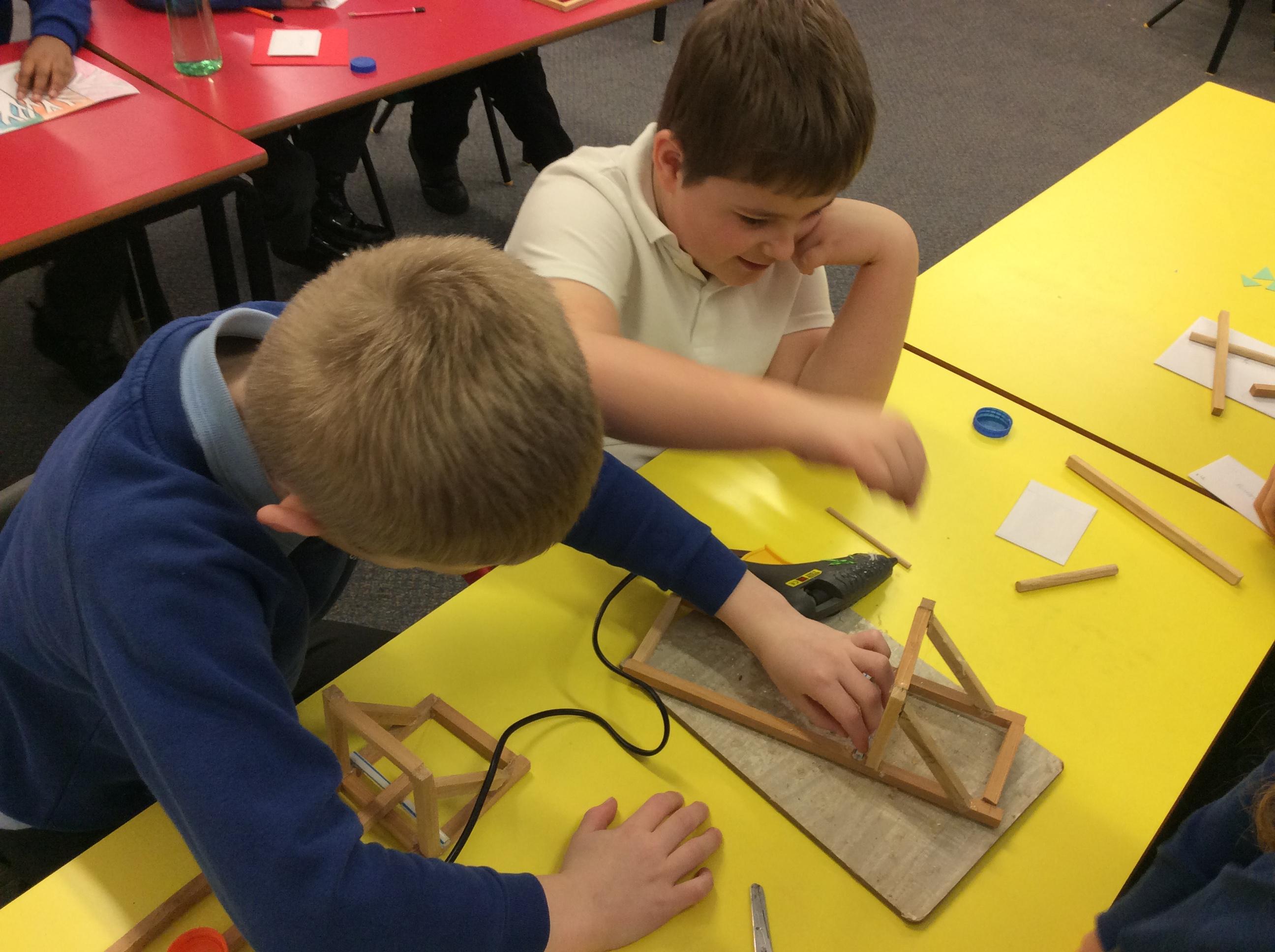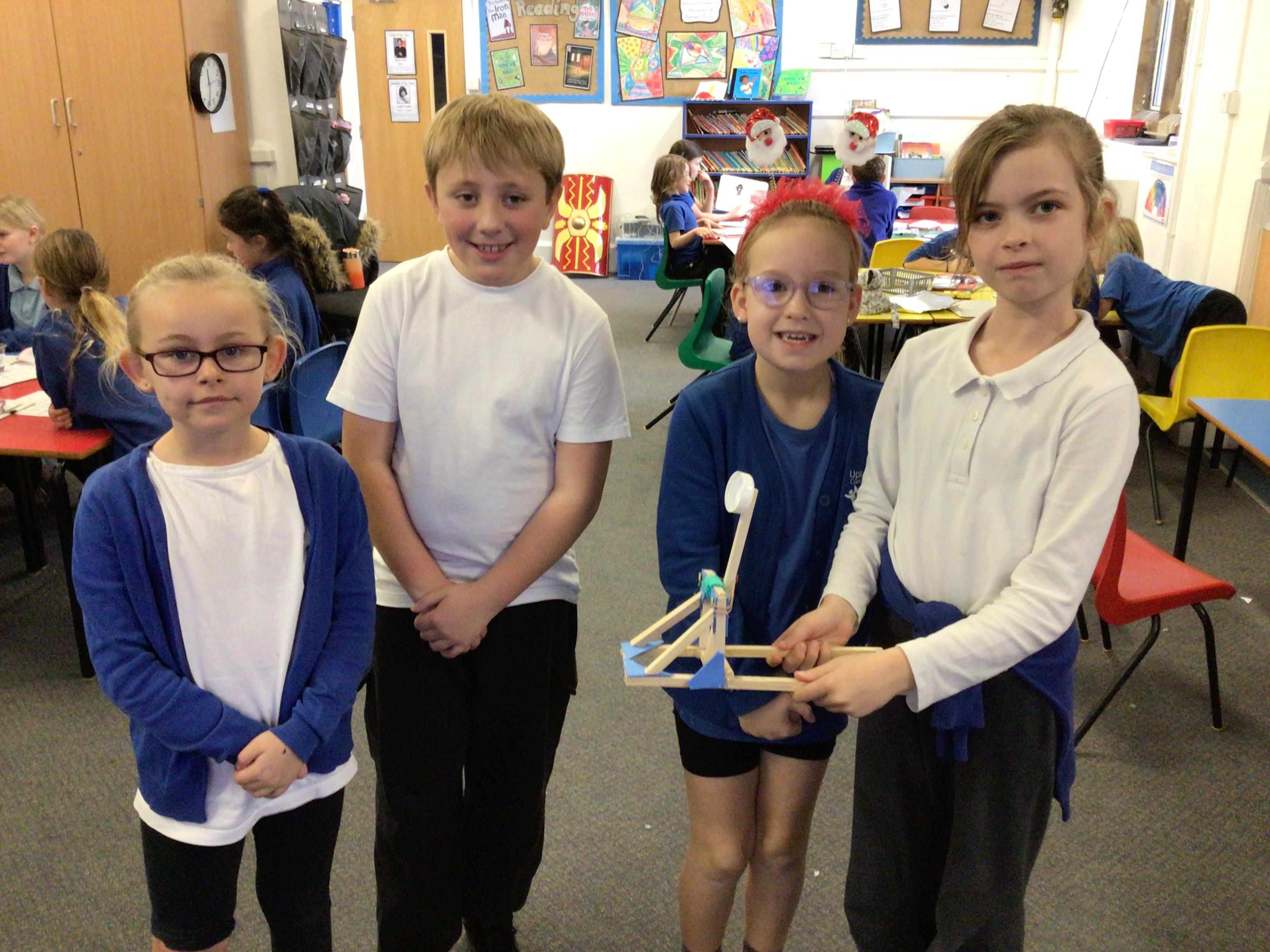 We finished our catapults this week and enjoyed trying them out with tin foil balls and corks. We were seeing how far across the hall we could get them.