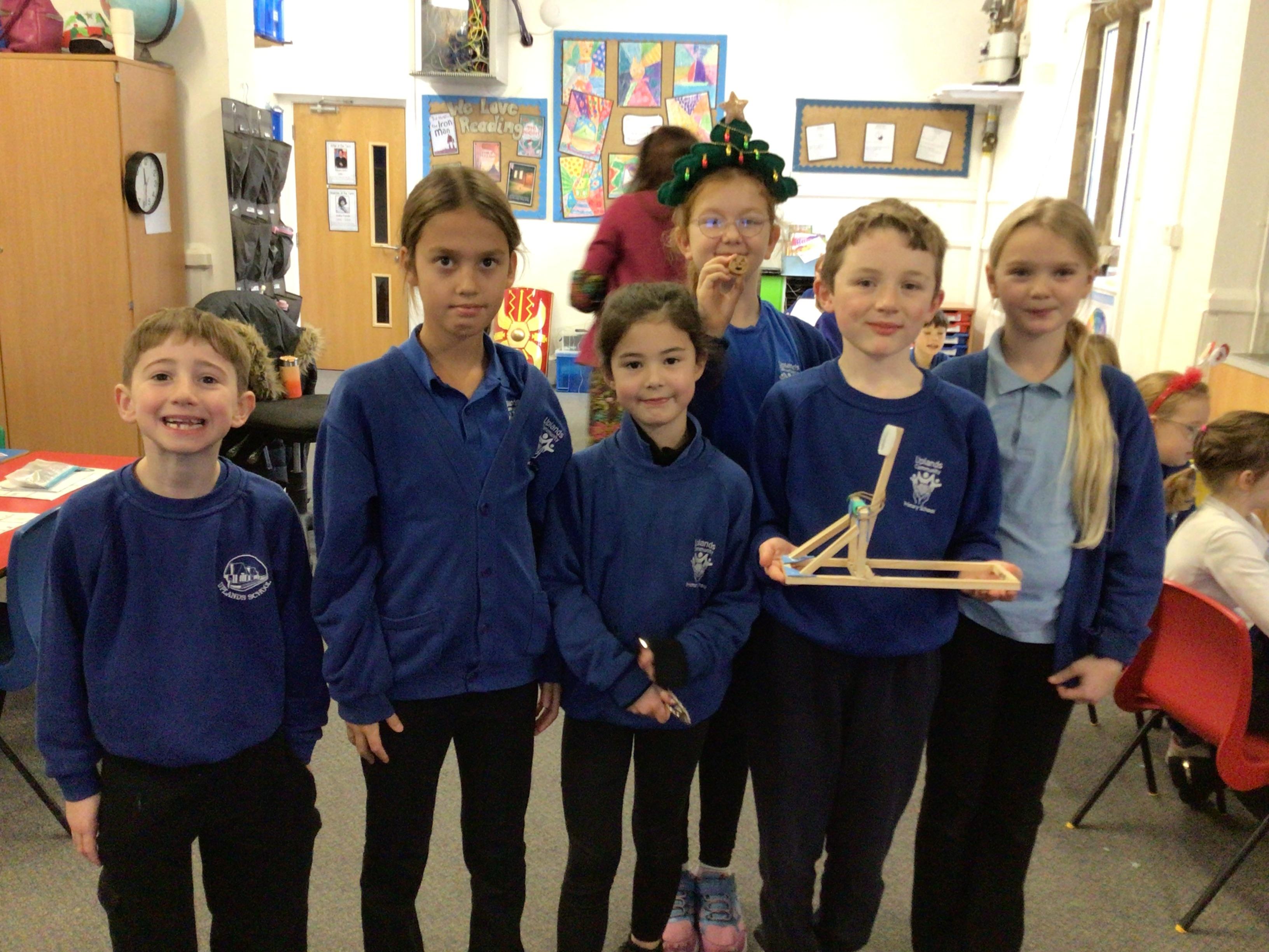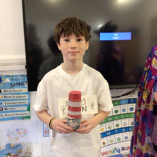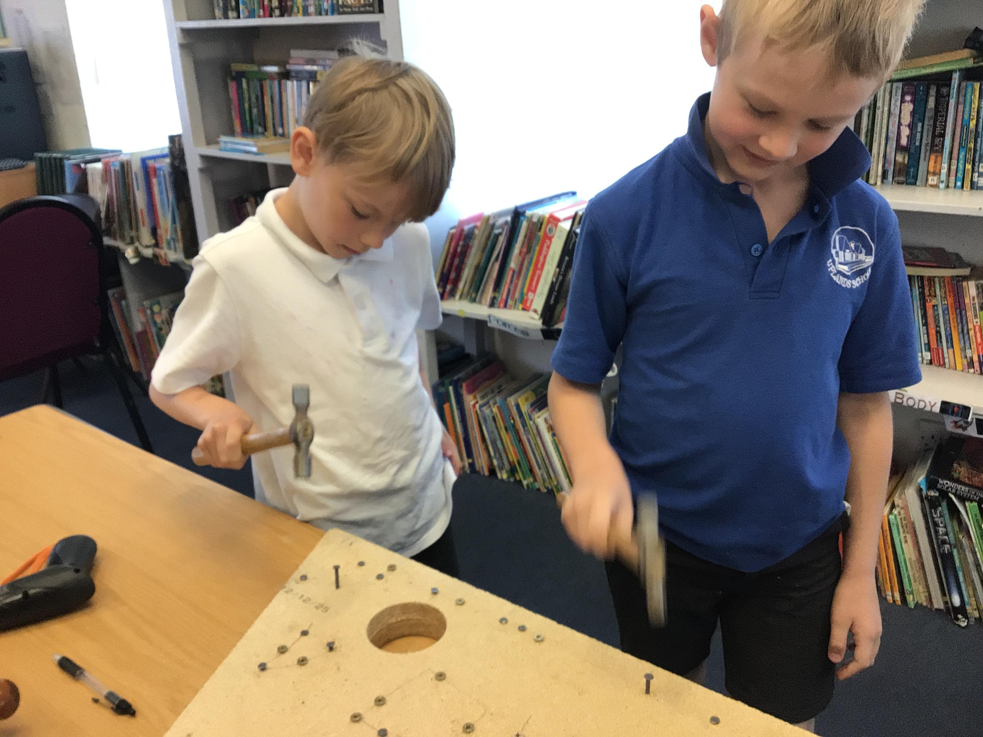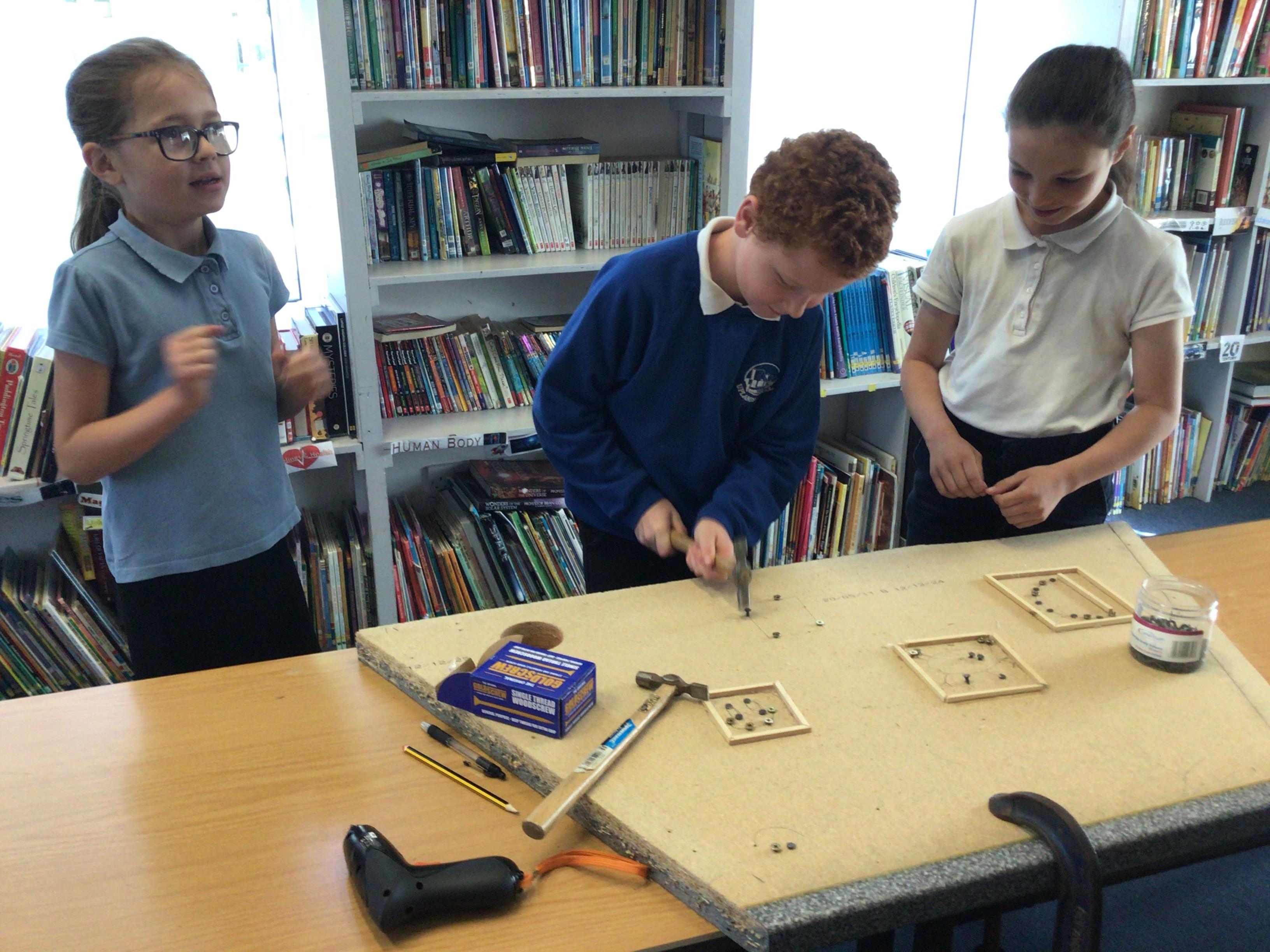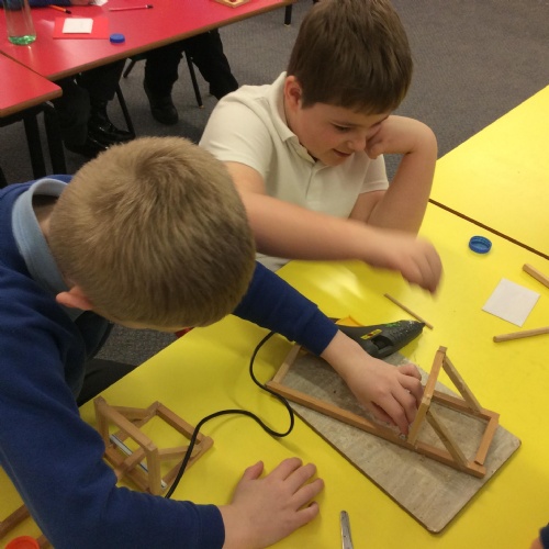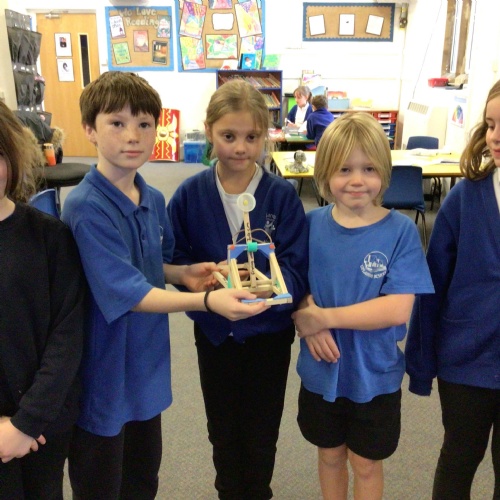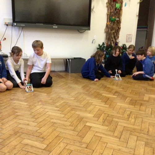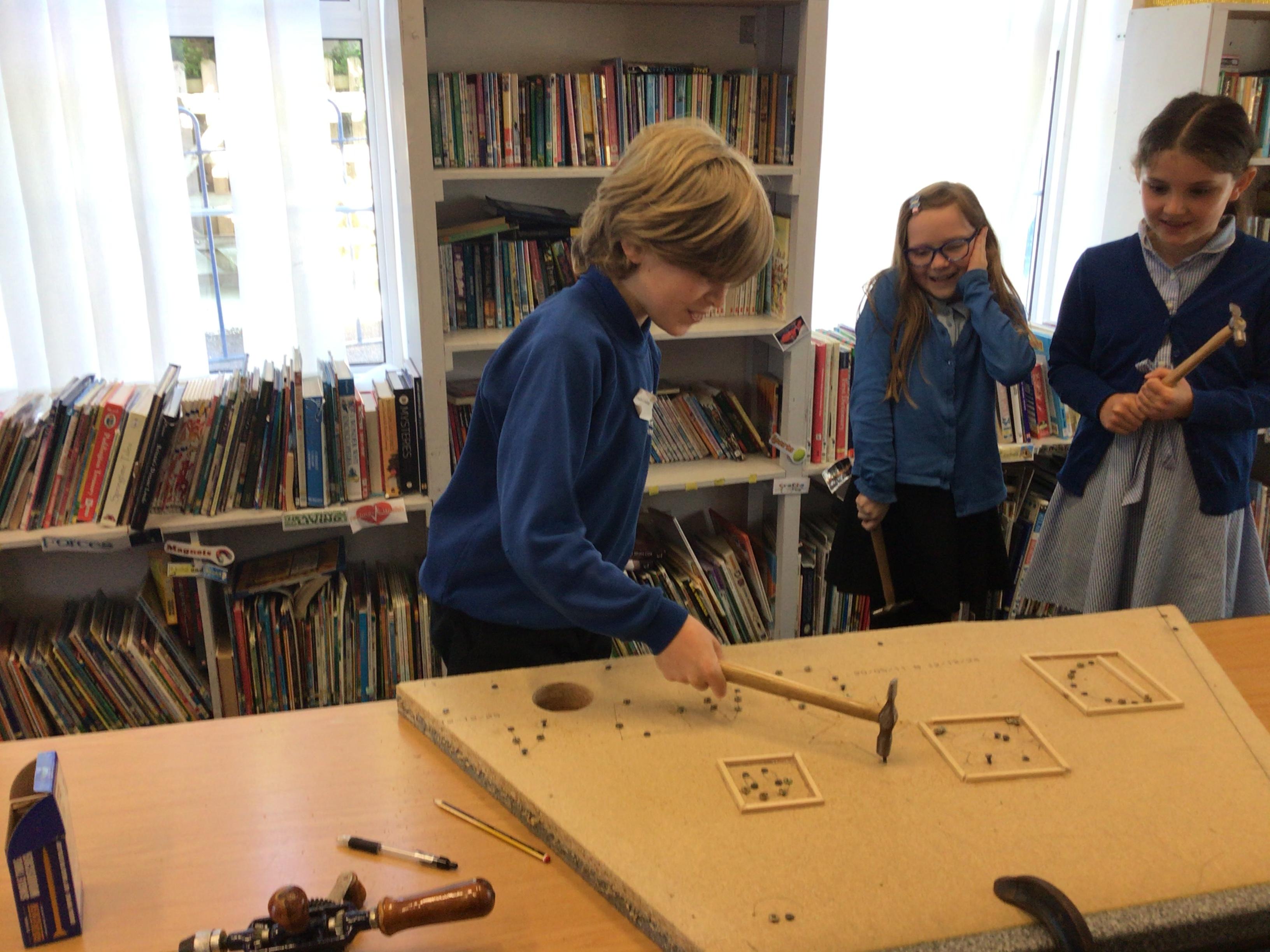 We finished our catapults this week and enjoyed trying them out with tin foil balls and corks. We were seeing how far across the hall we could get them.