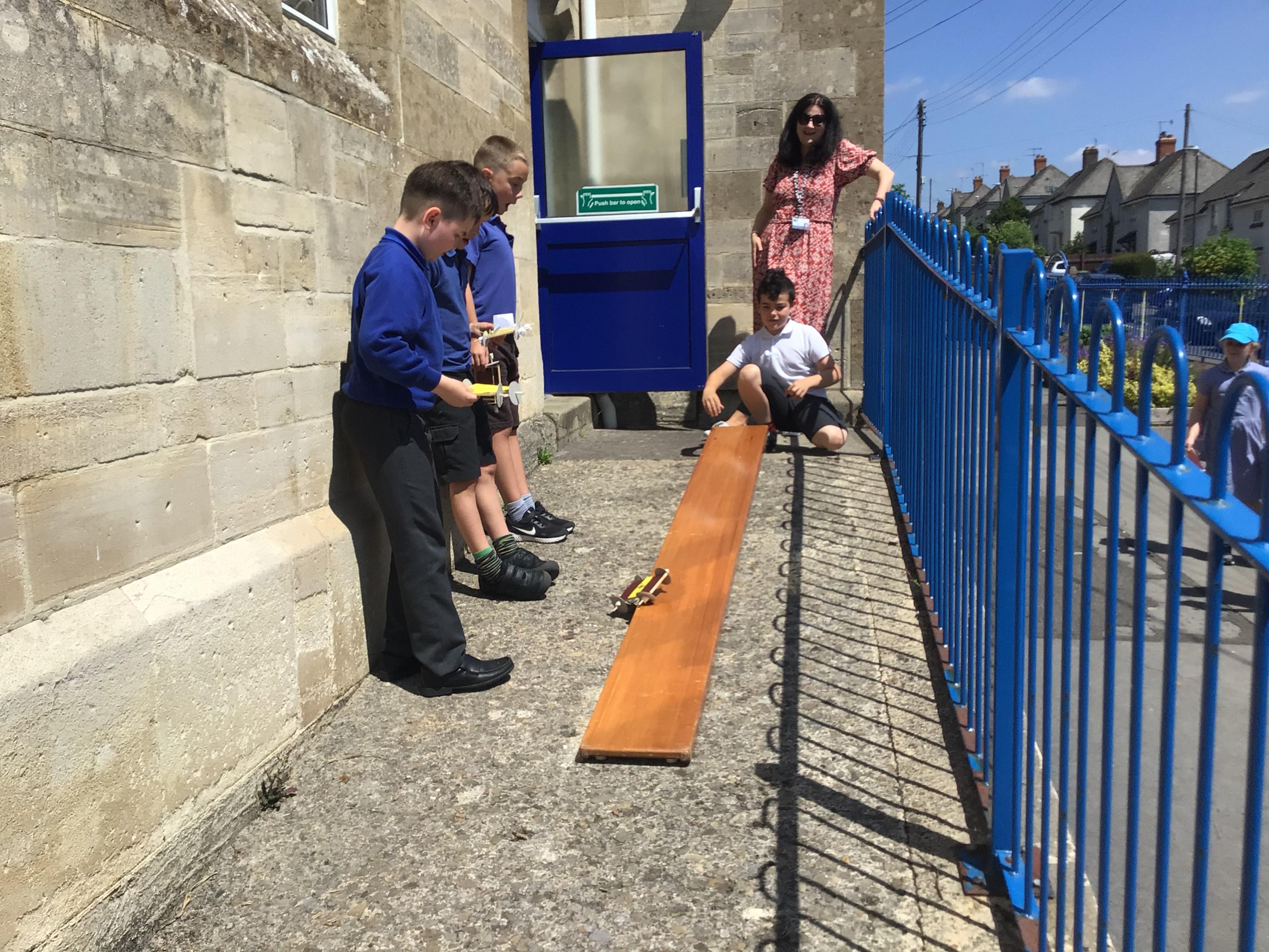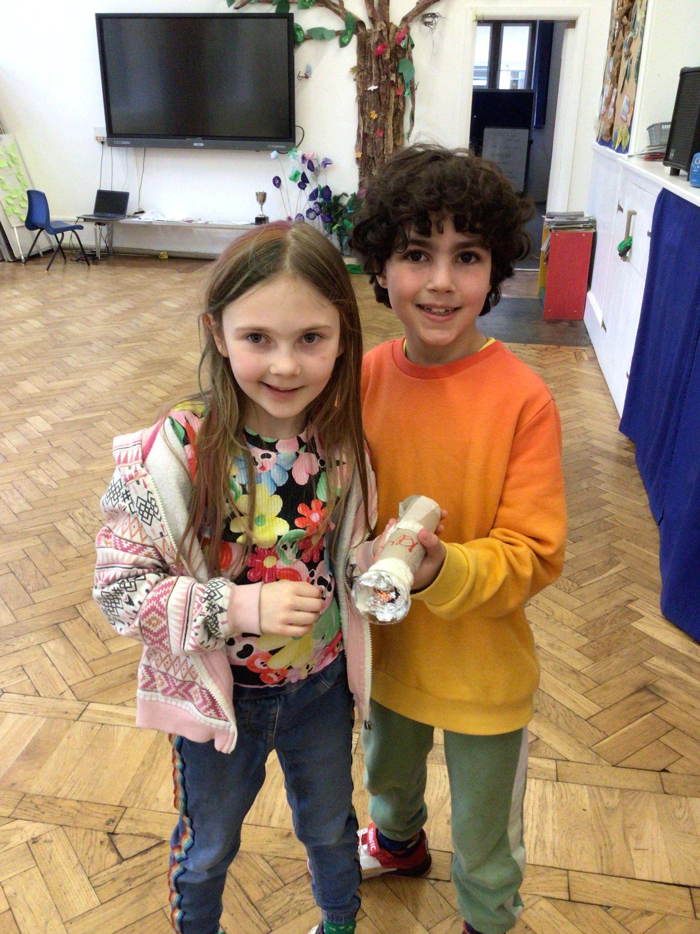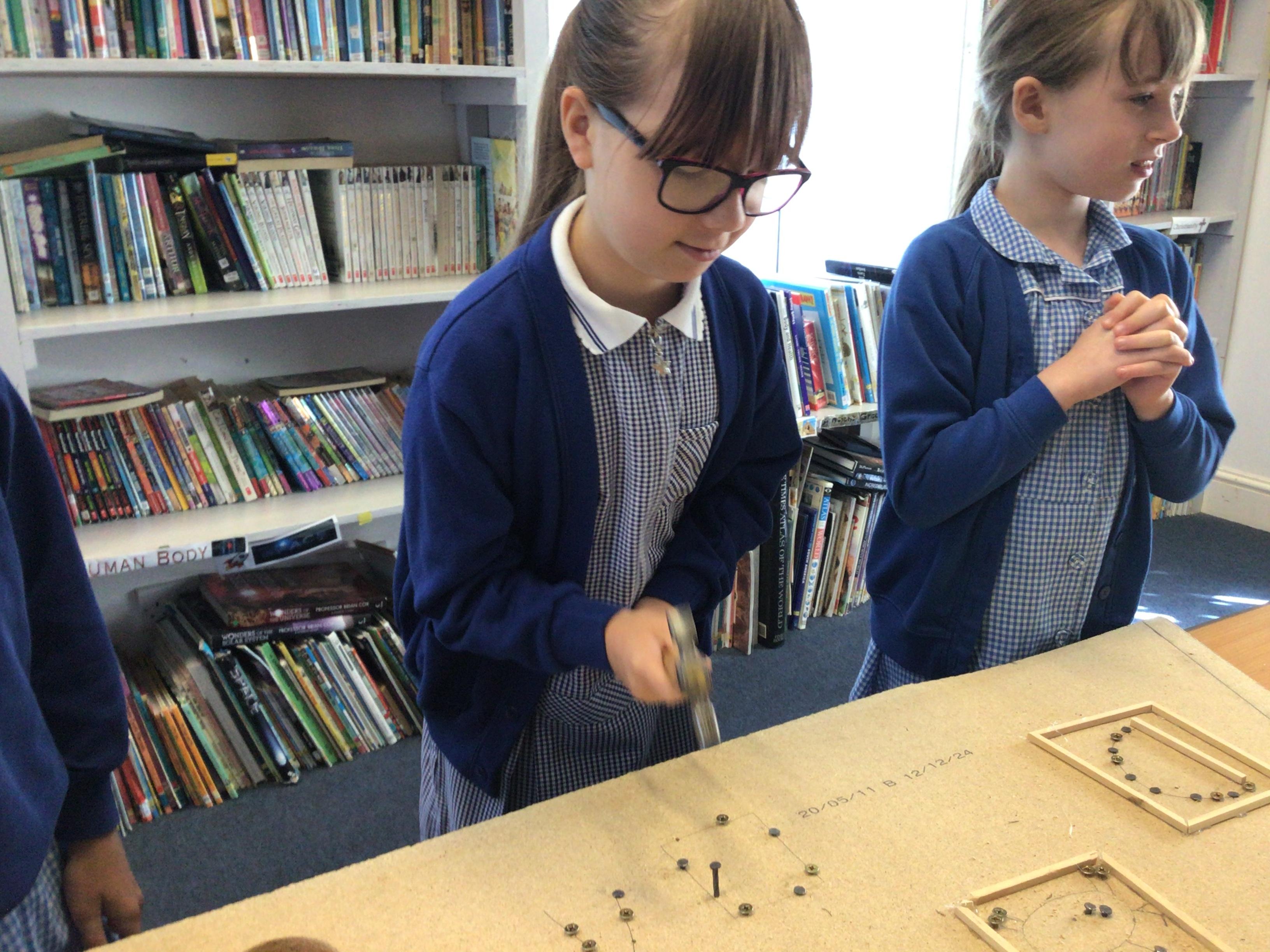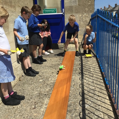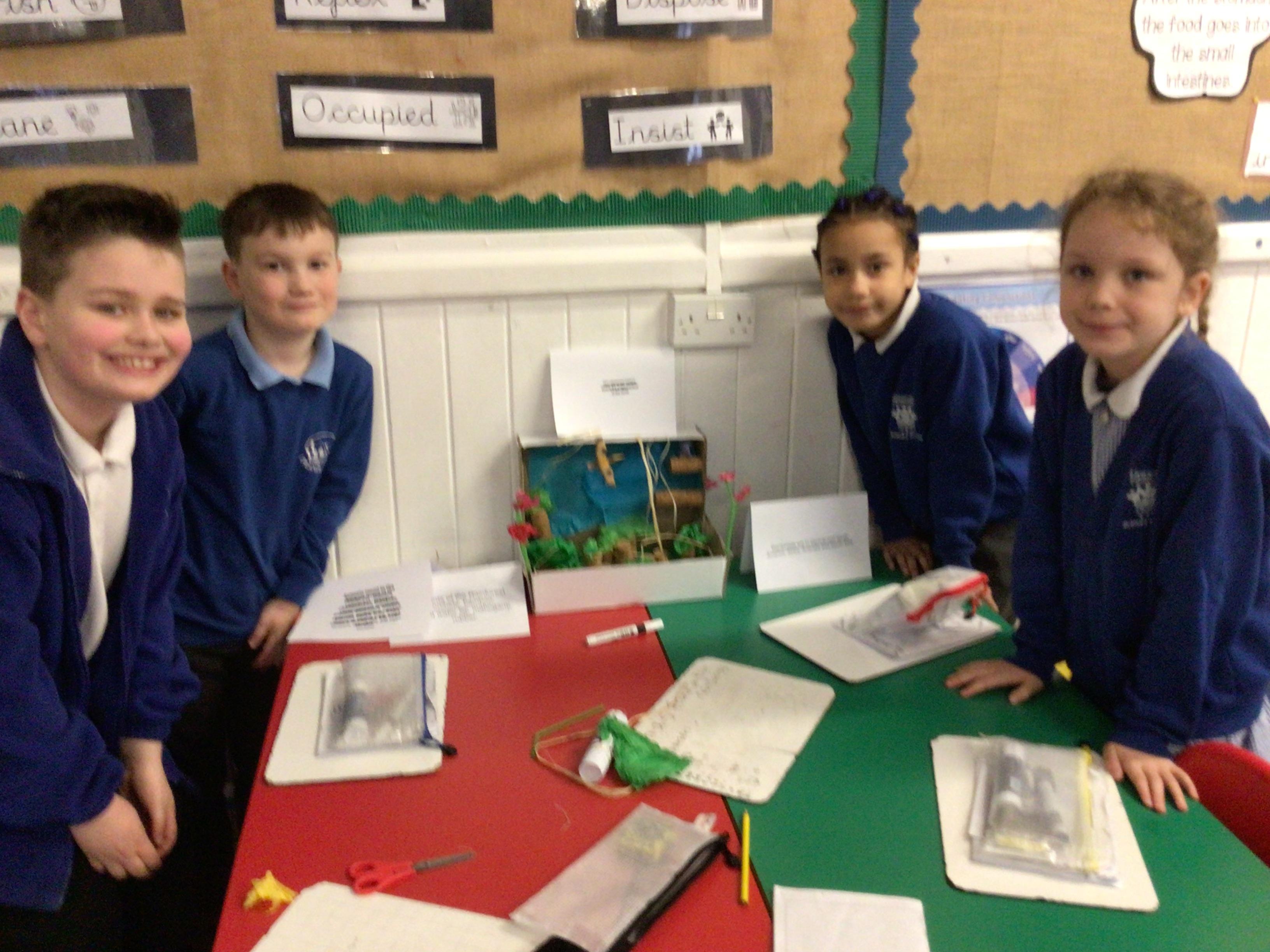 We finished our catapults this week and enjoyed trying them out with tin foil balls and corks. We were seeing how far across the hall we could get them.