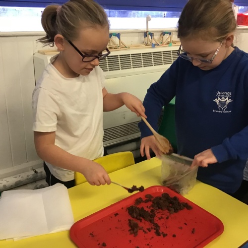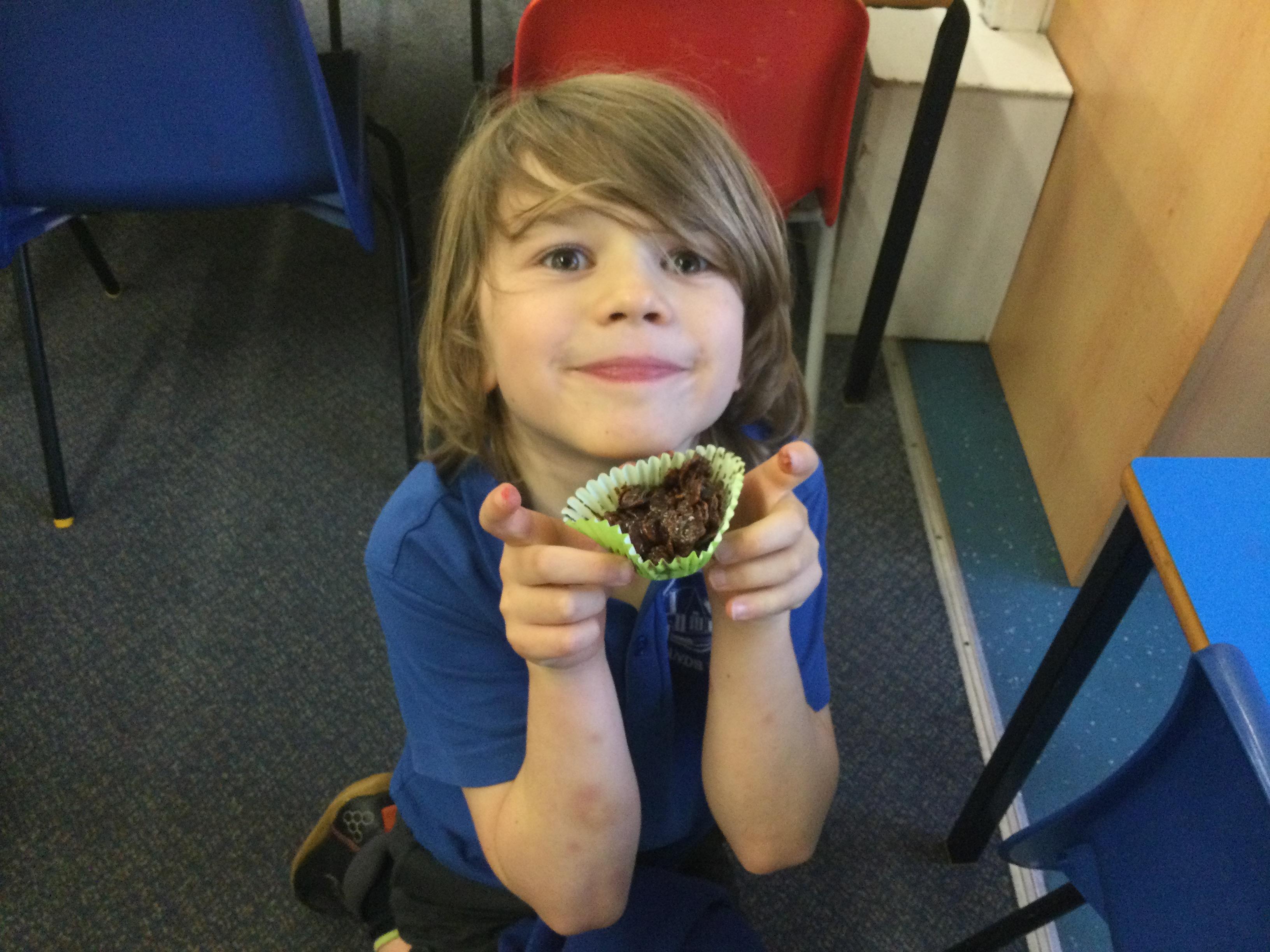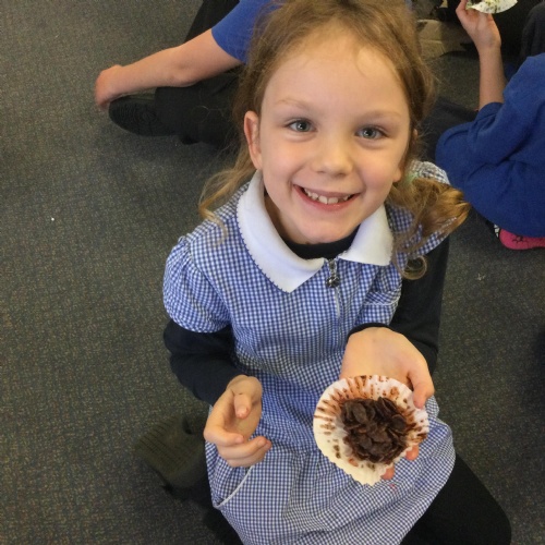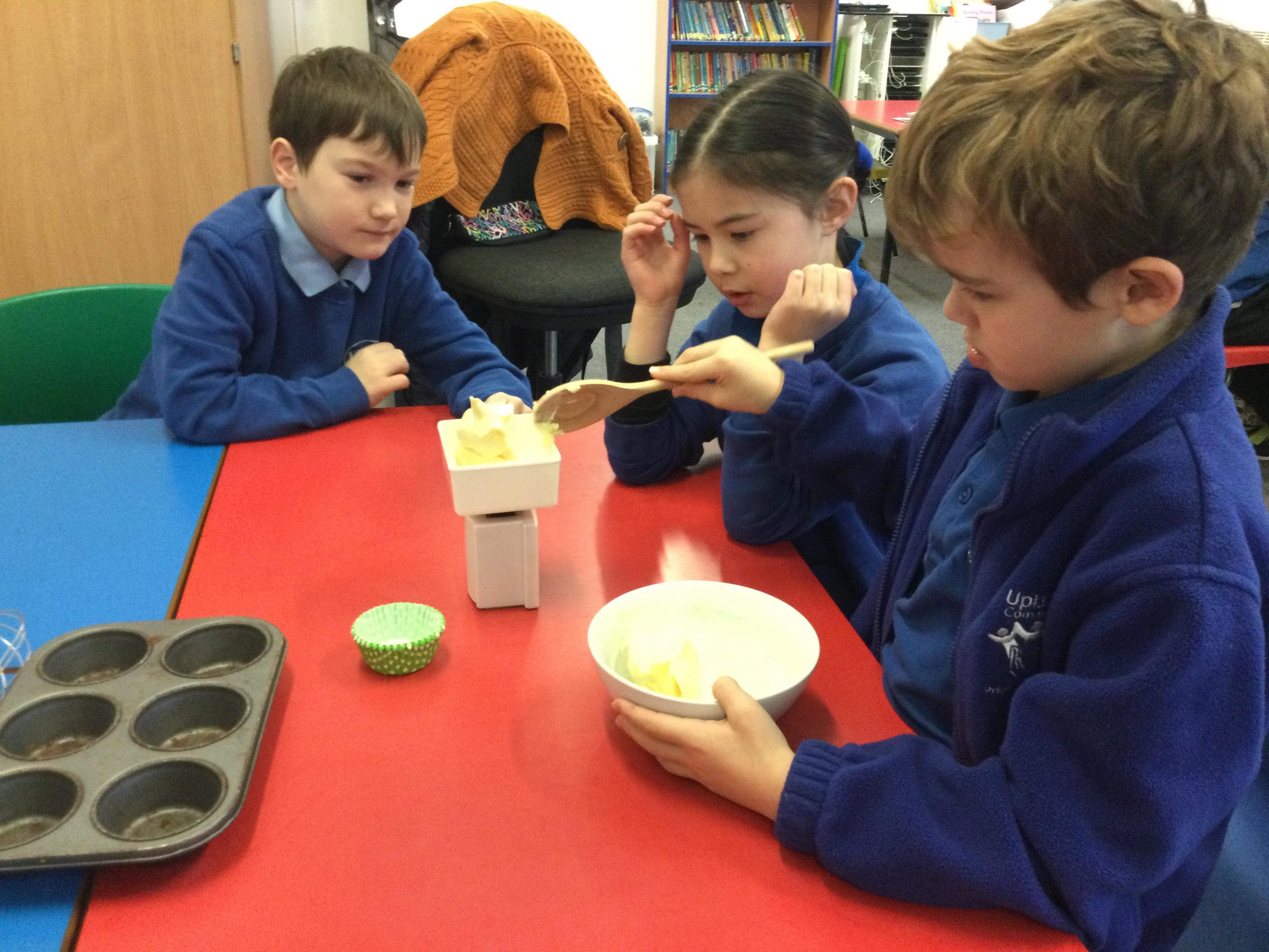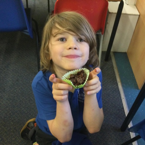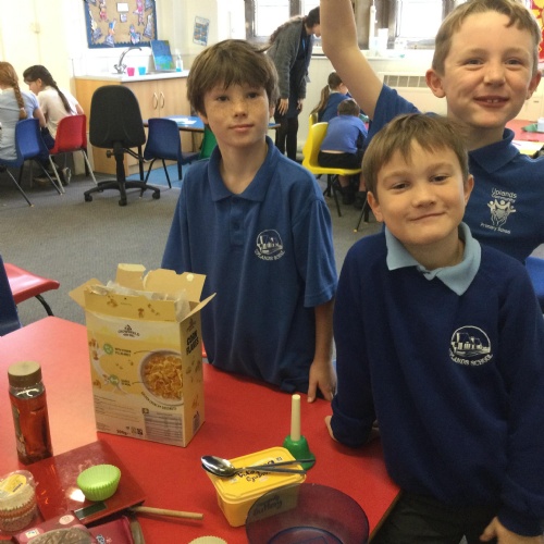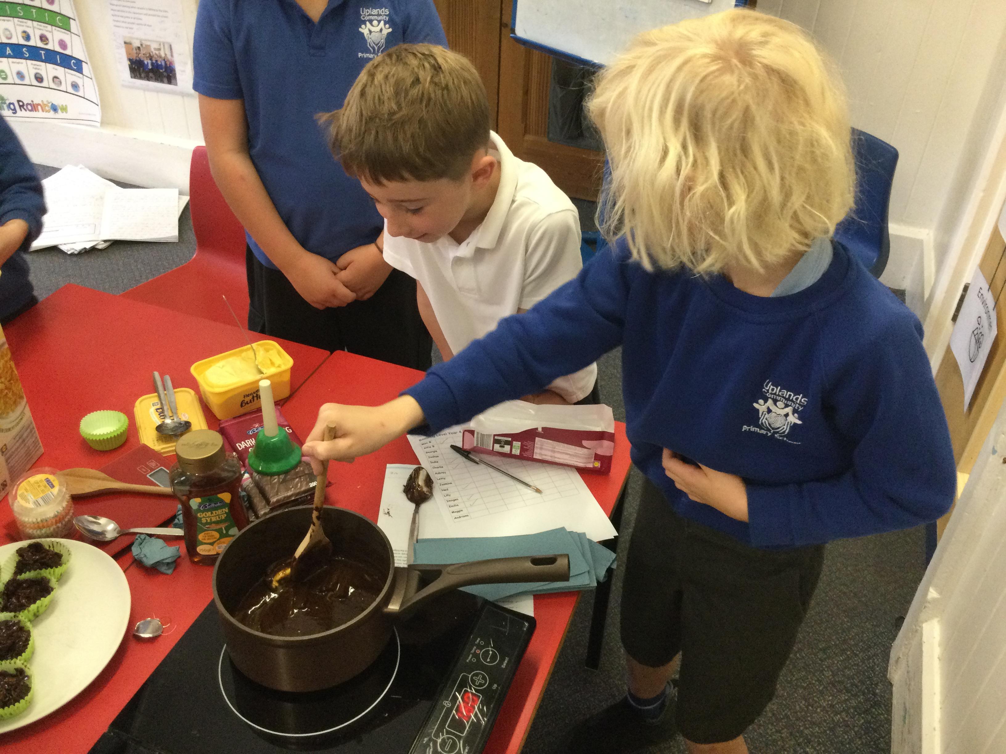 This week, in English, we've been planning and writing our factual tour about how to make chocolate cornflake cakes. We have been able to include lots of our science work about changing states of matter. We have been focusing on using subordinating conjunctions in our writing and using the correct determiners a or an before a noun.