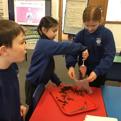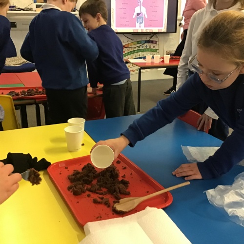We have had a brilliant start to the term. We had a whole day introduction to our new topic of Roots, Shoots and Poops. We have looked at the different categories of food and the nutrients we get from them. We then looked at the digestive system and did a practical demonstration of the journey of a piece of food.
