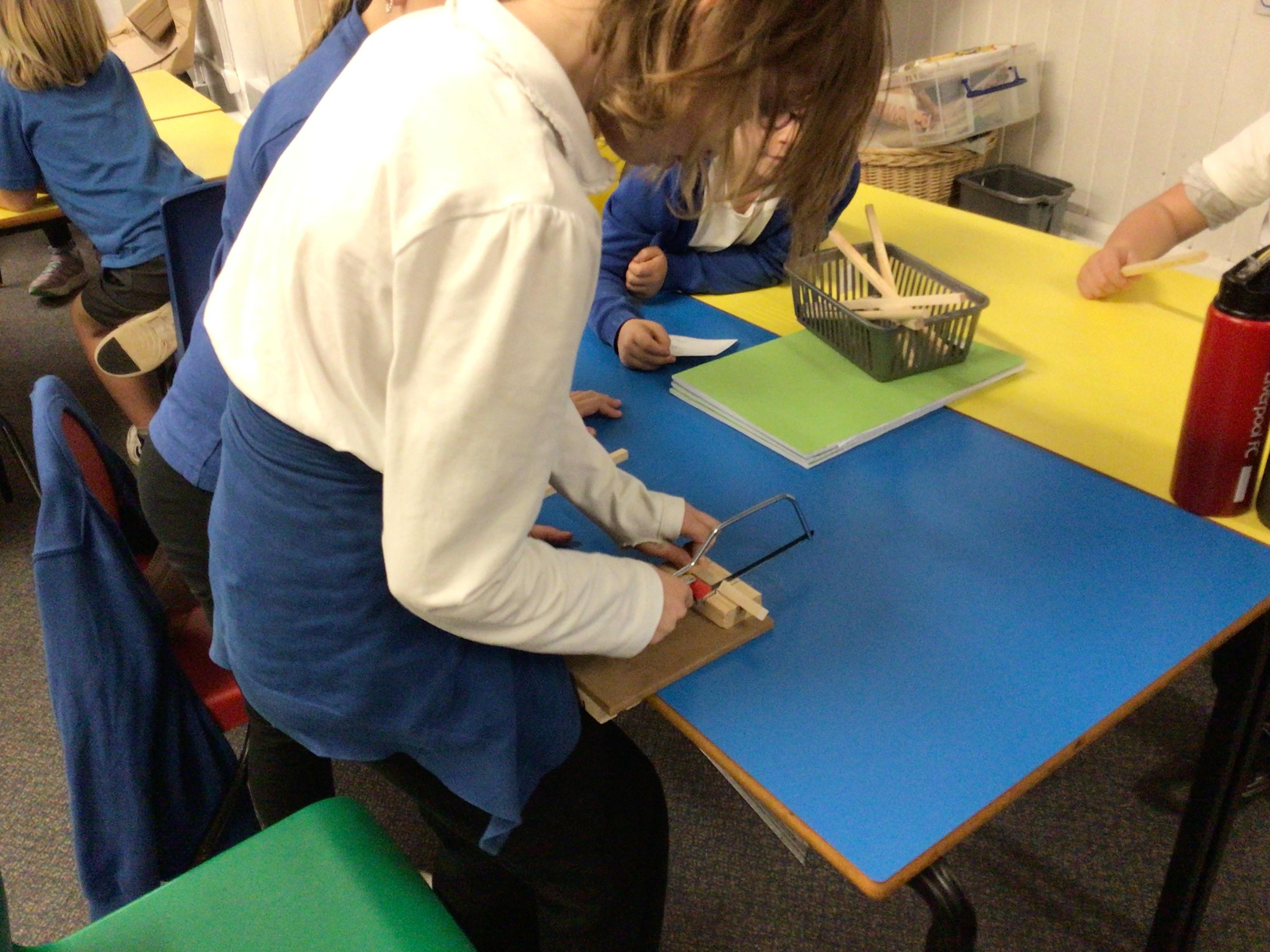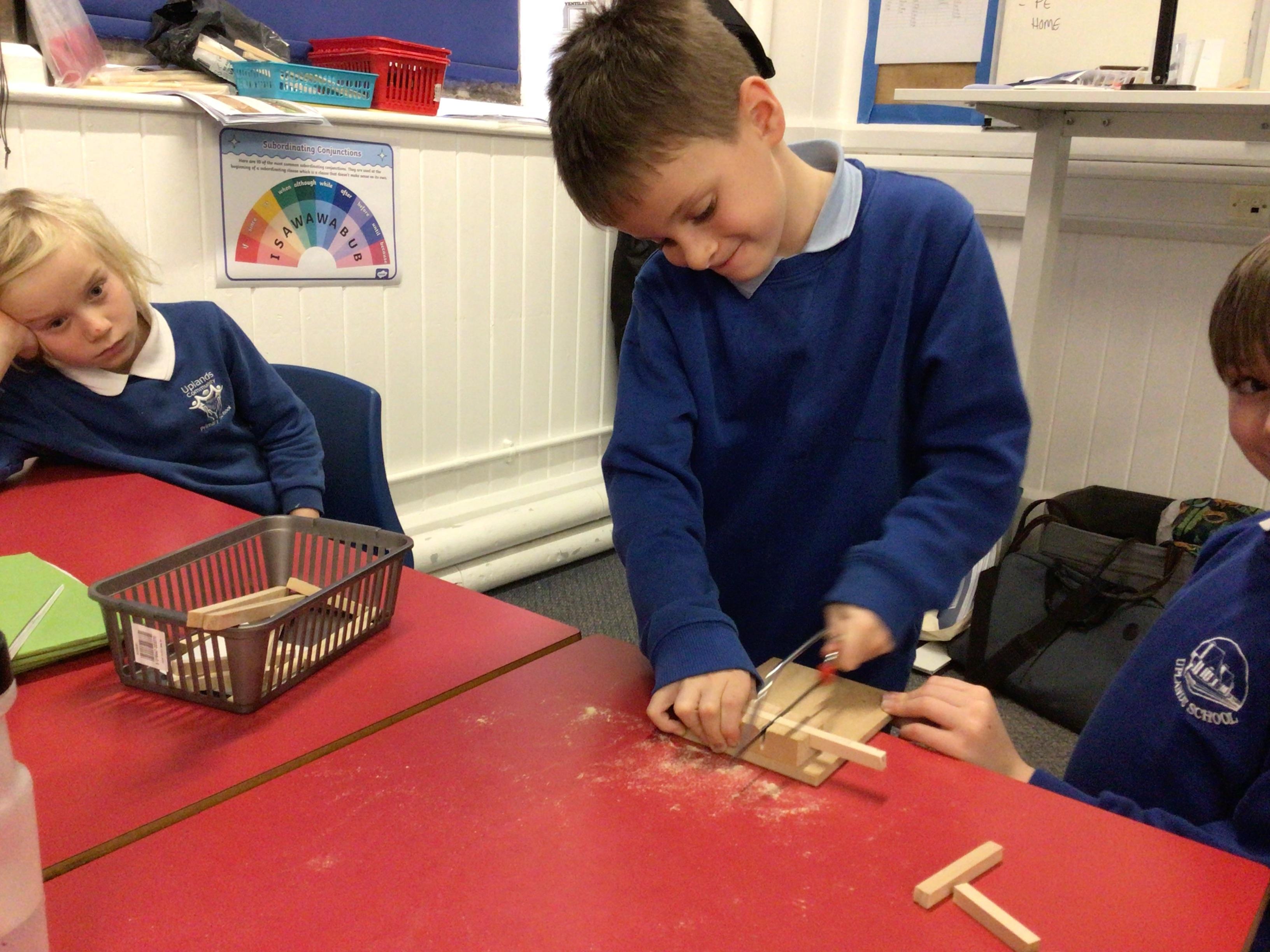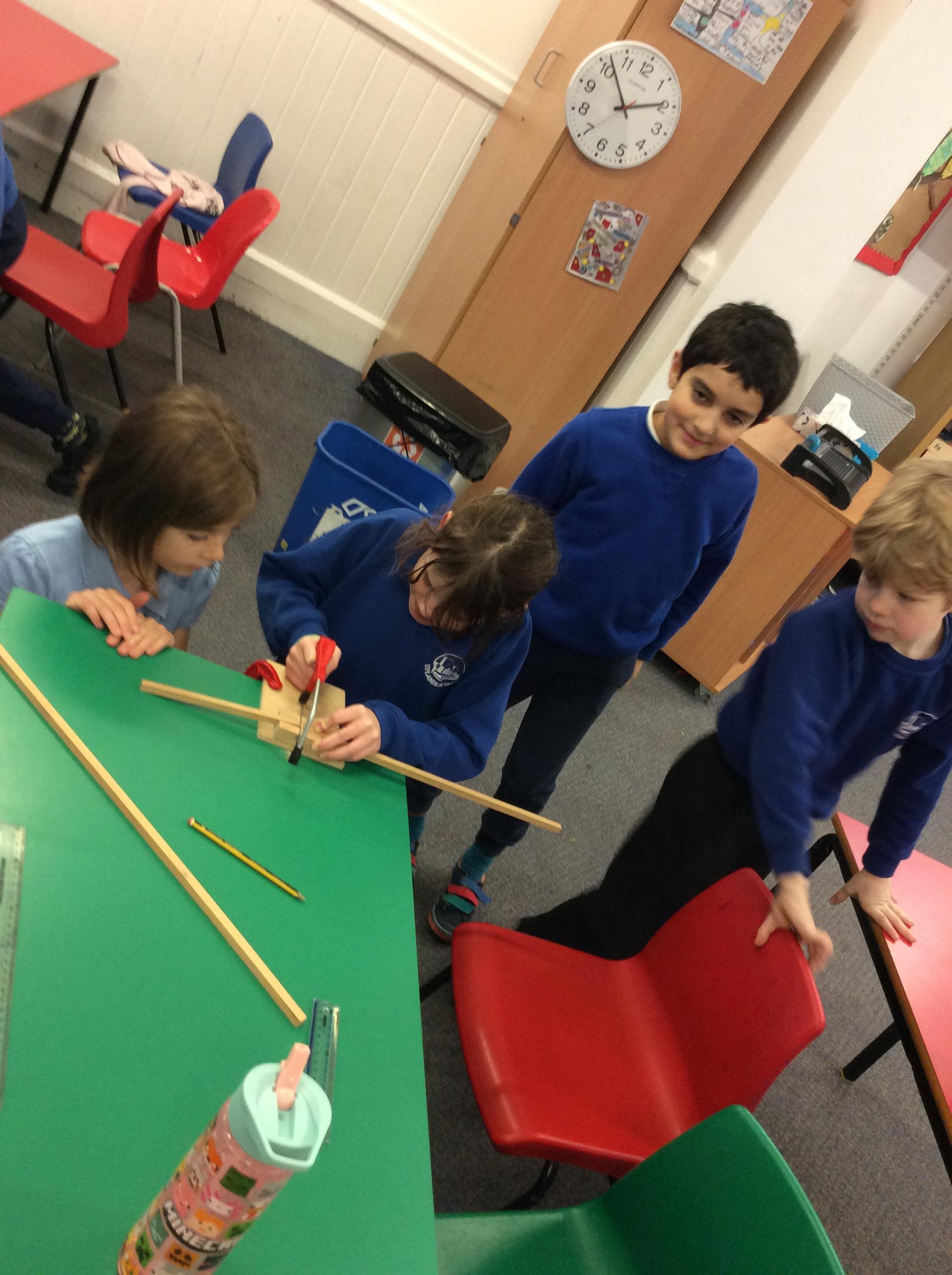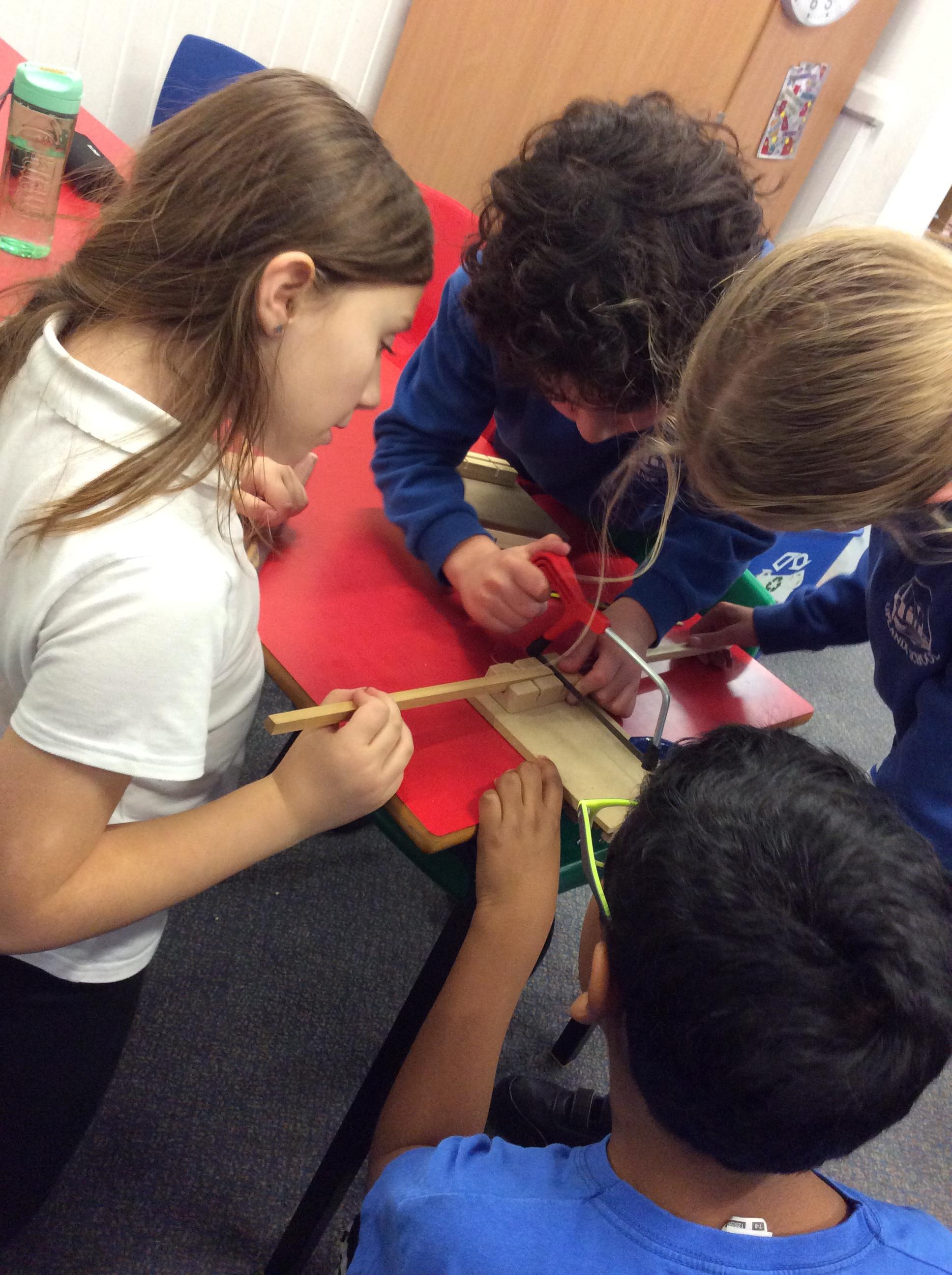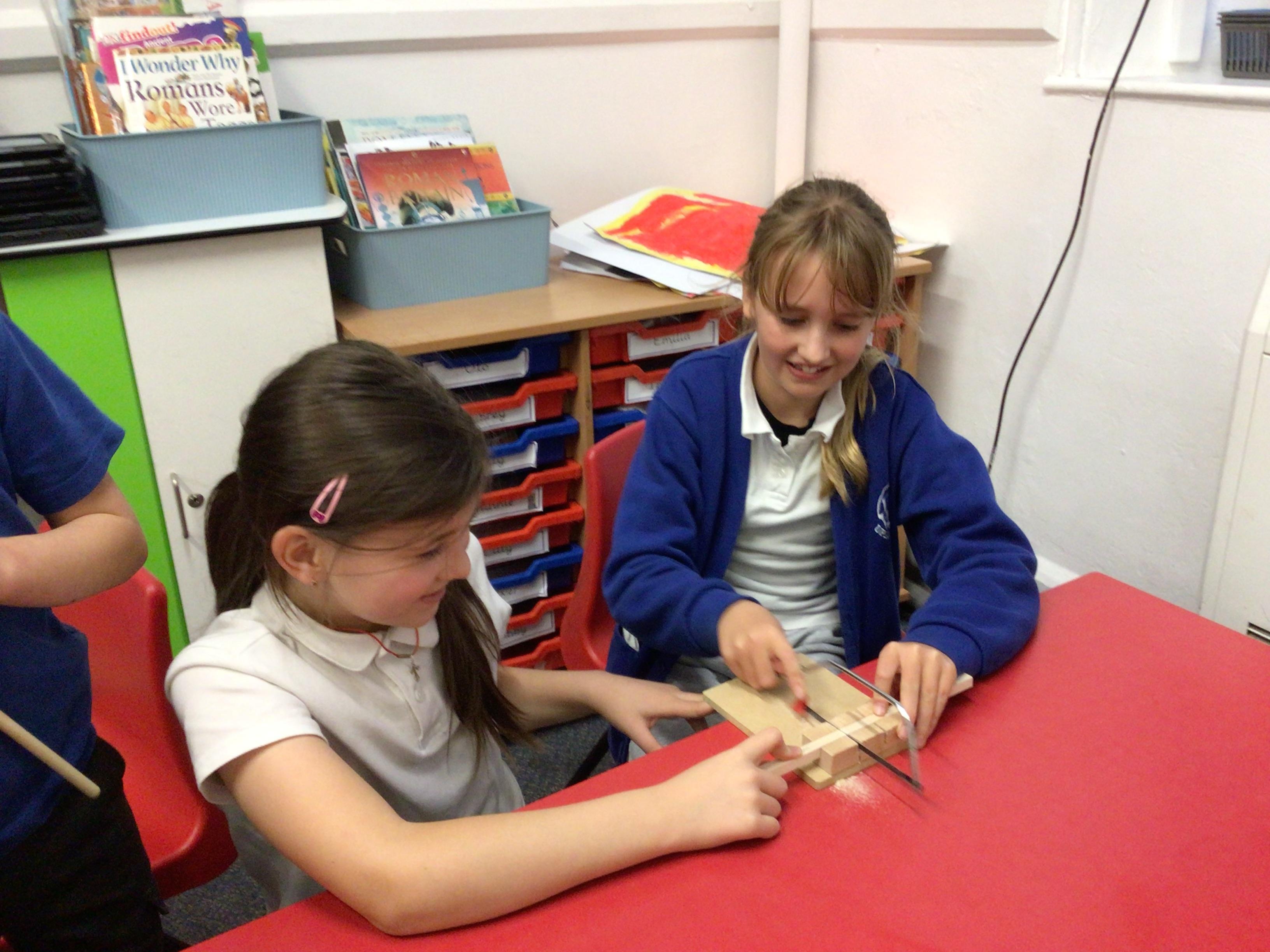 We have had another fabulous week! We have been busy working on our DT project of building a Roman catapult. This week we did some careful measuring and some even more careful sawing!