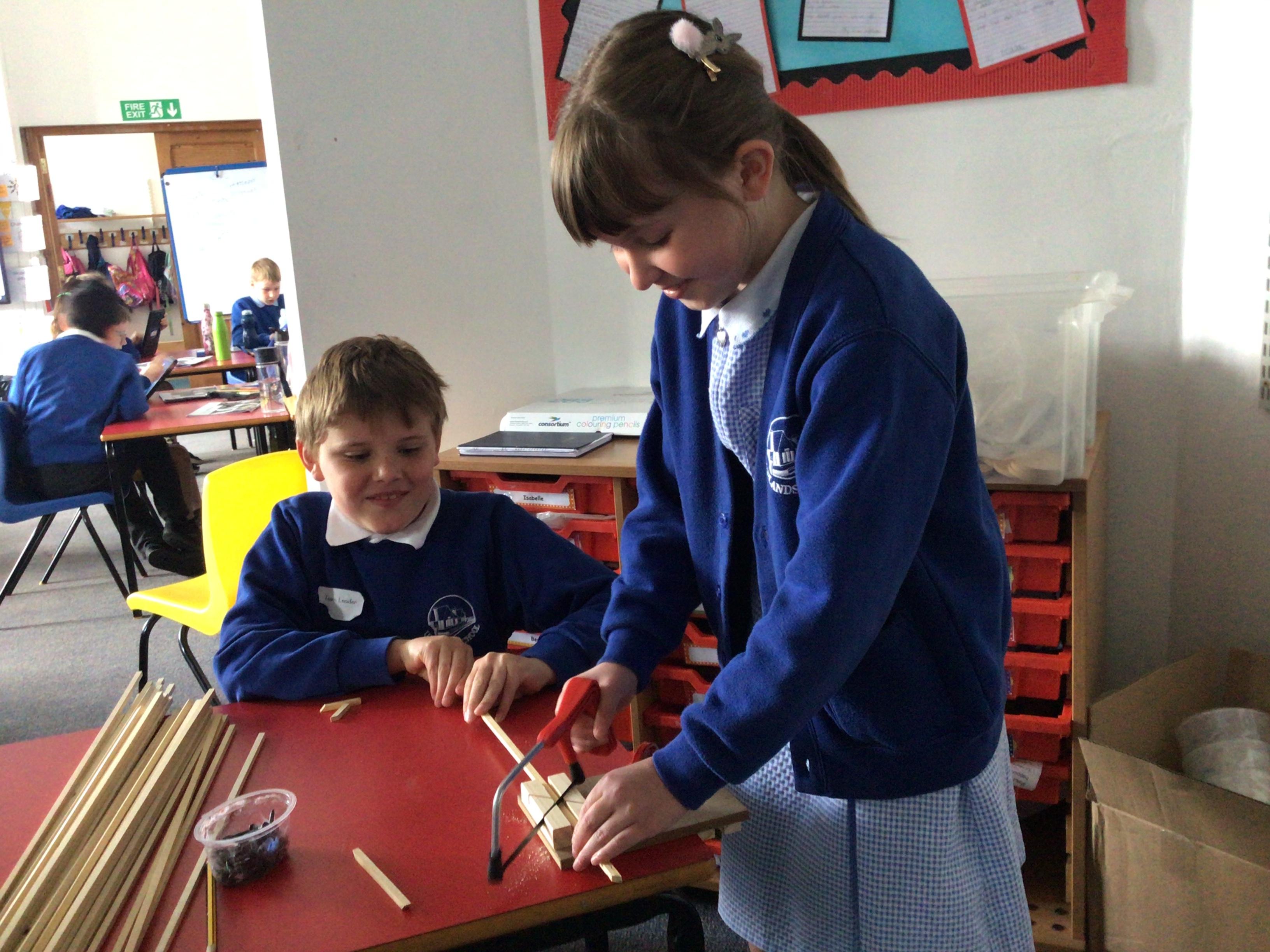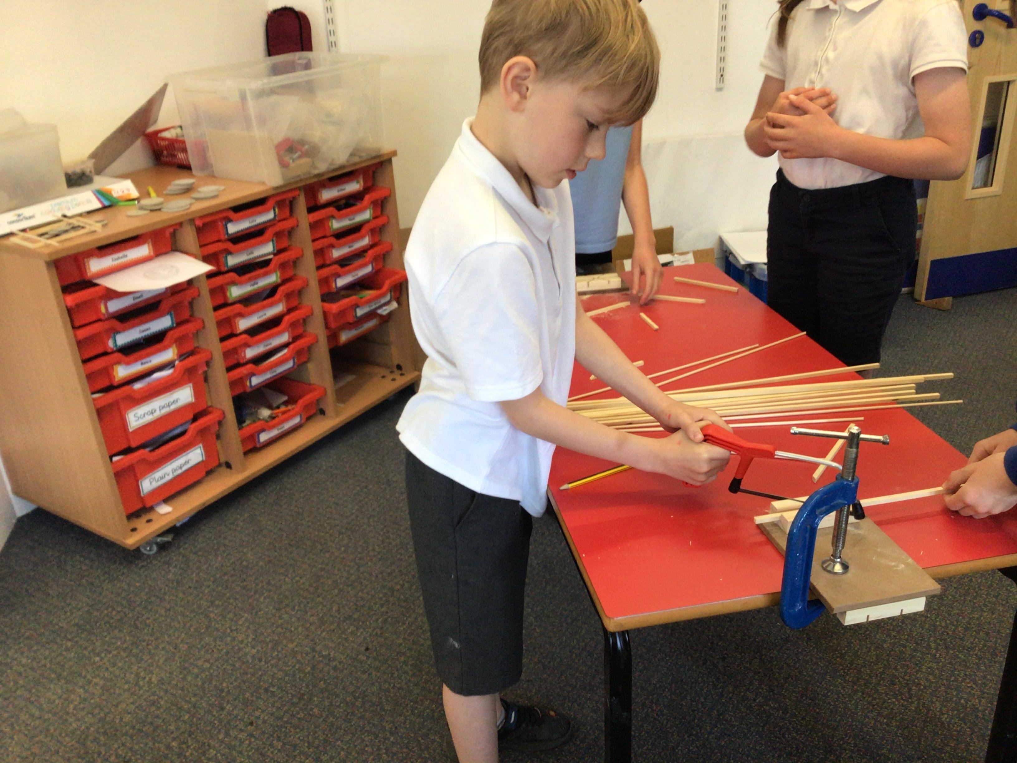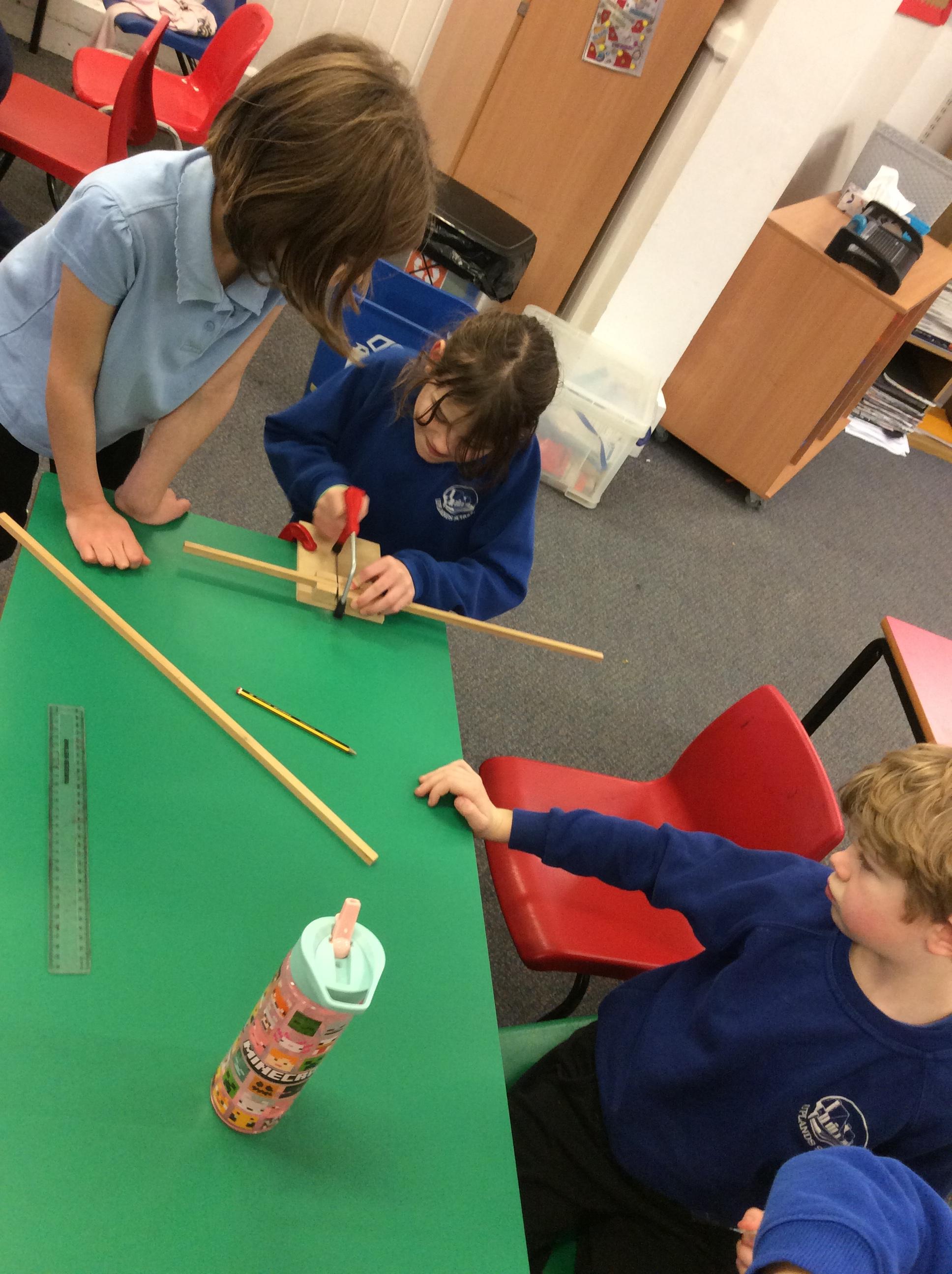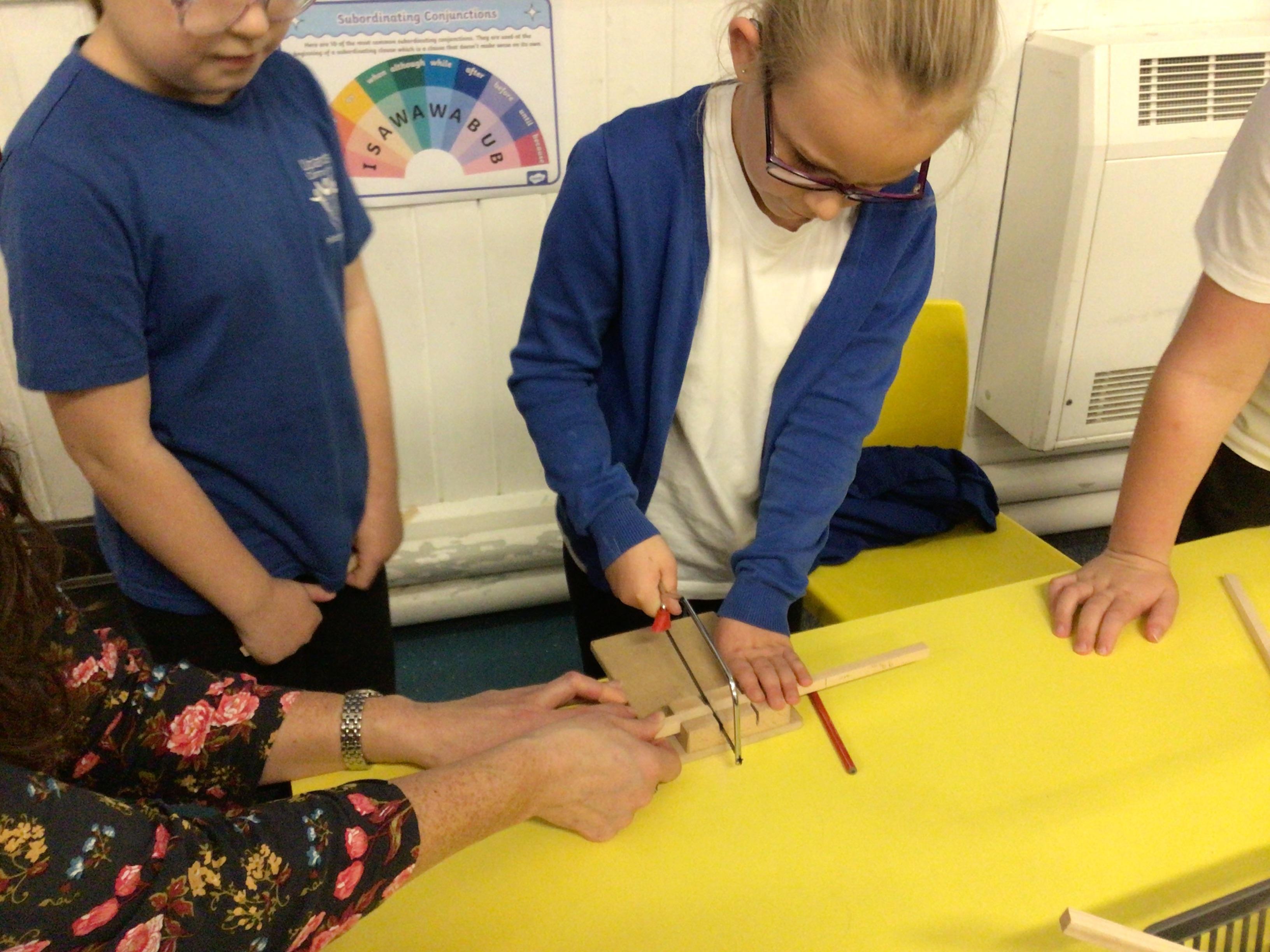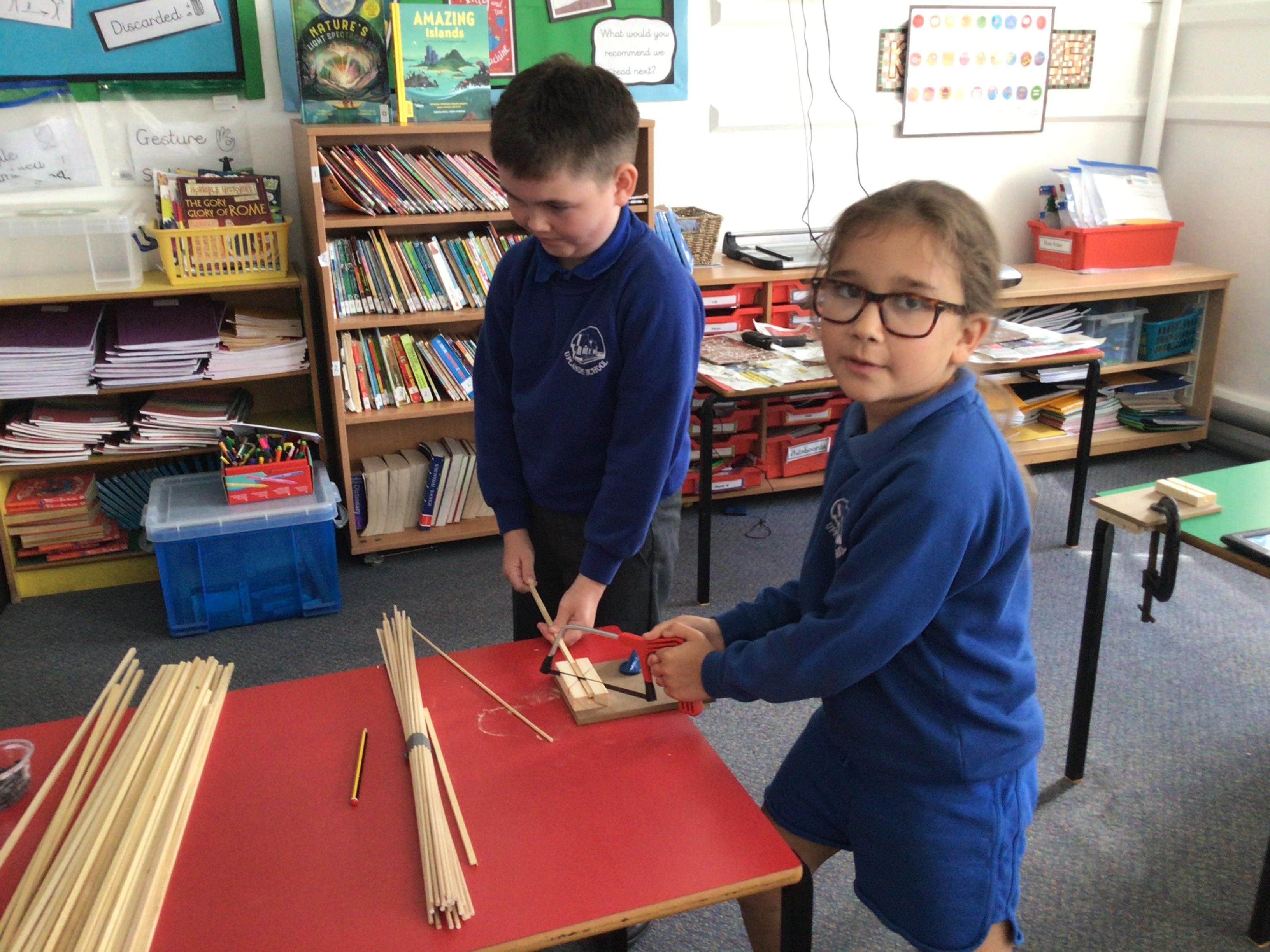 We have had another fabulous week! We have been busy working on our DT project of building a Roman catapult. This week we did some careful measuring and some even more careful sawing!