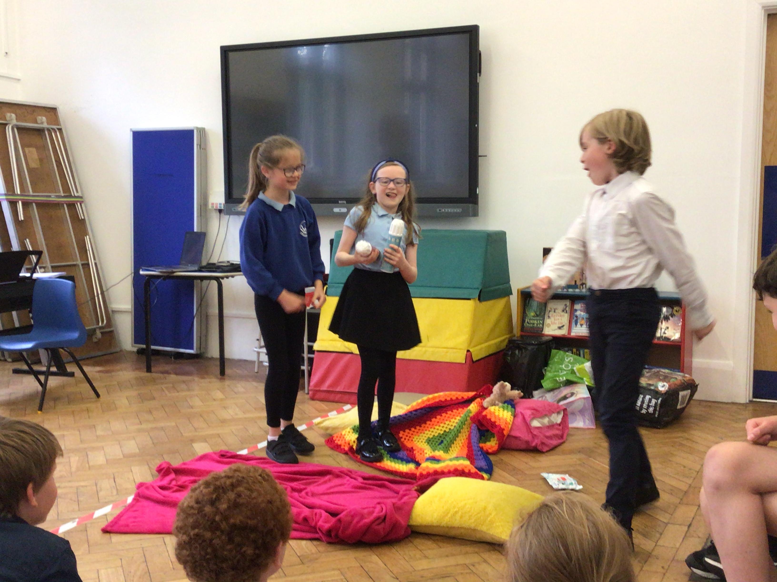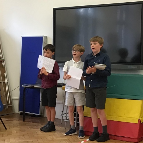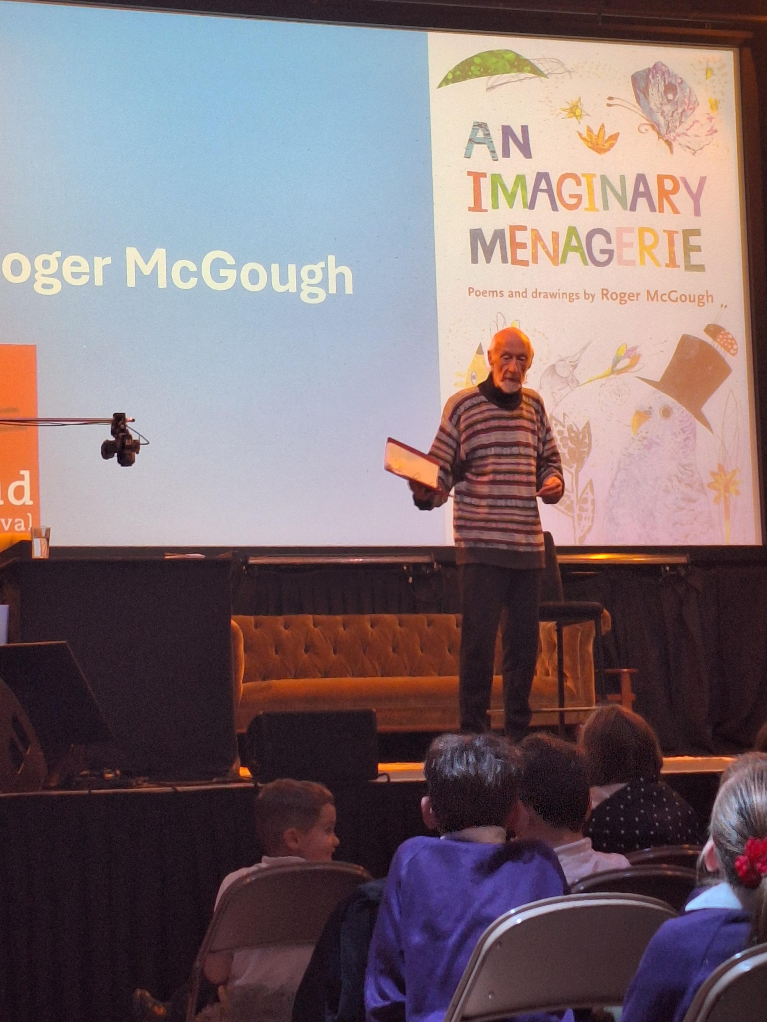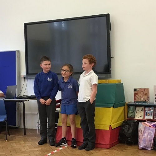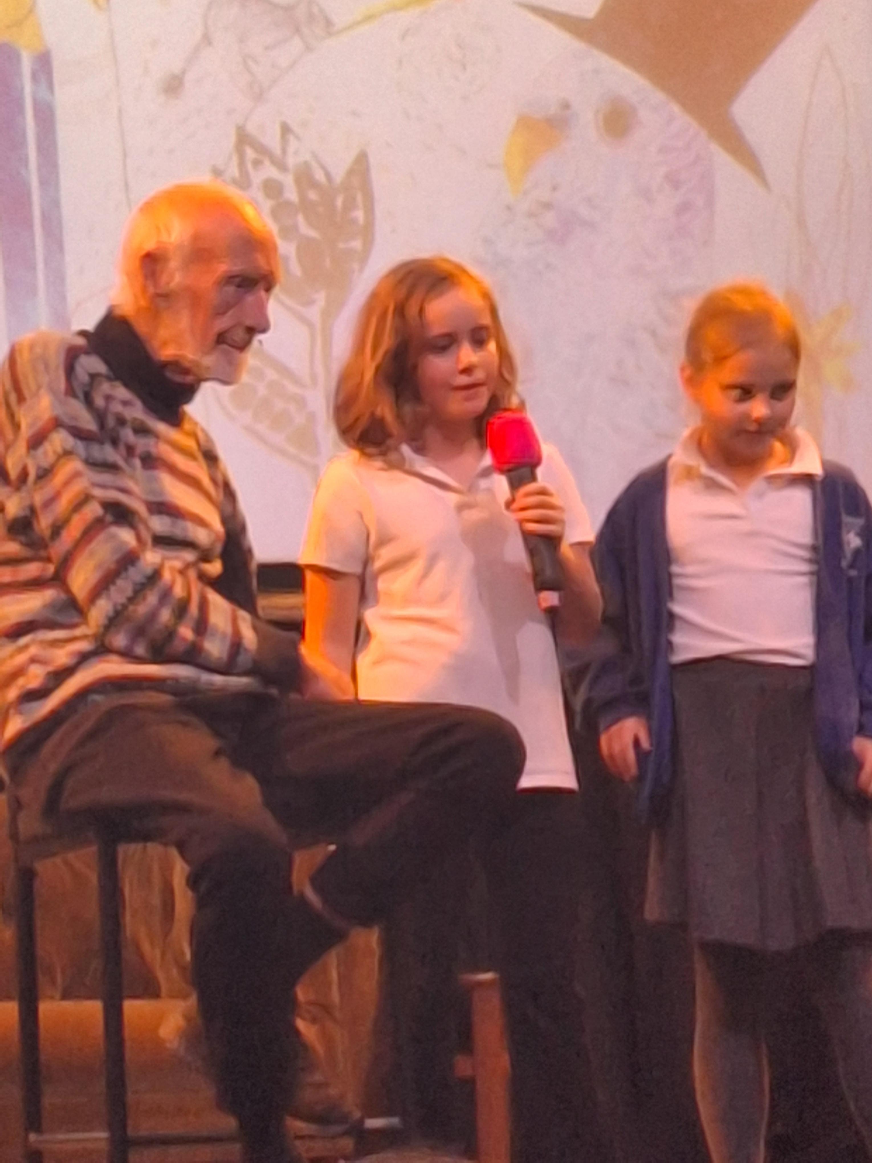 On Thursday, we had a brilliant time at the Book Festival with Roger McGough. The first highlight was when he read The Sound Collector and the Kestrels joined in word for word (proud teacher moment!). The second highlight was Minnie being confident enough to go up on stage with him and recite a poem she had learnt off by heart! Very impressive.