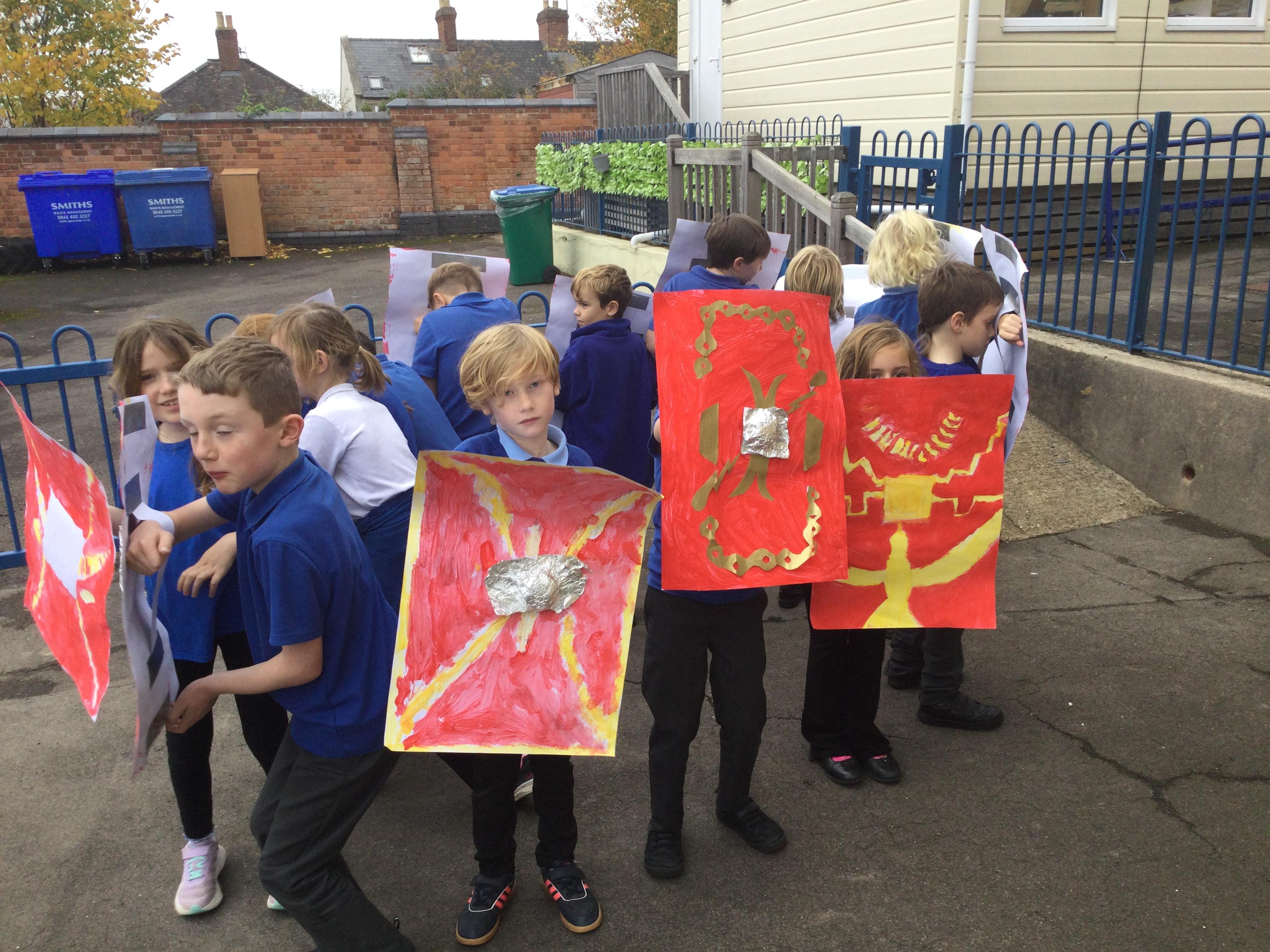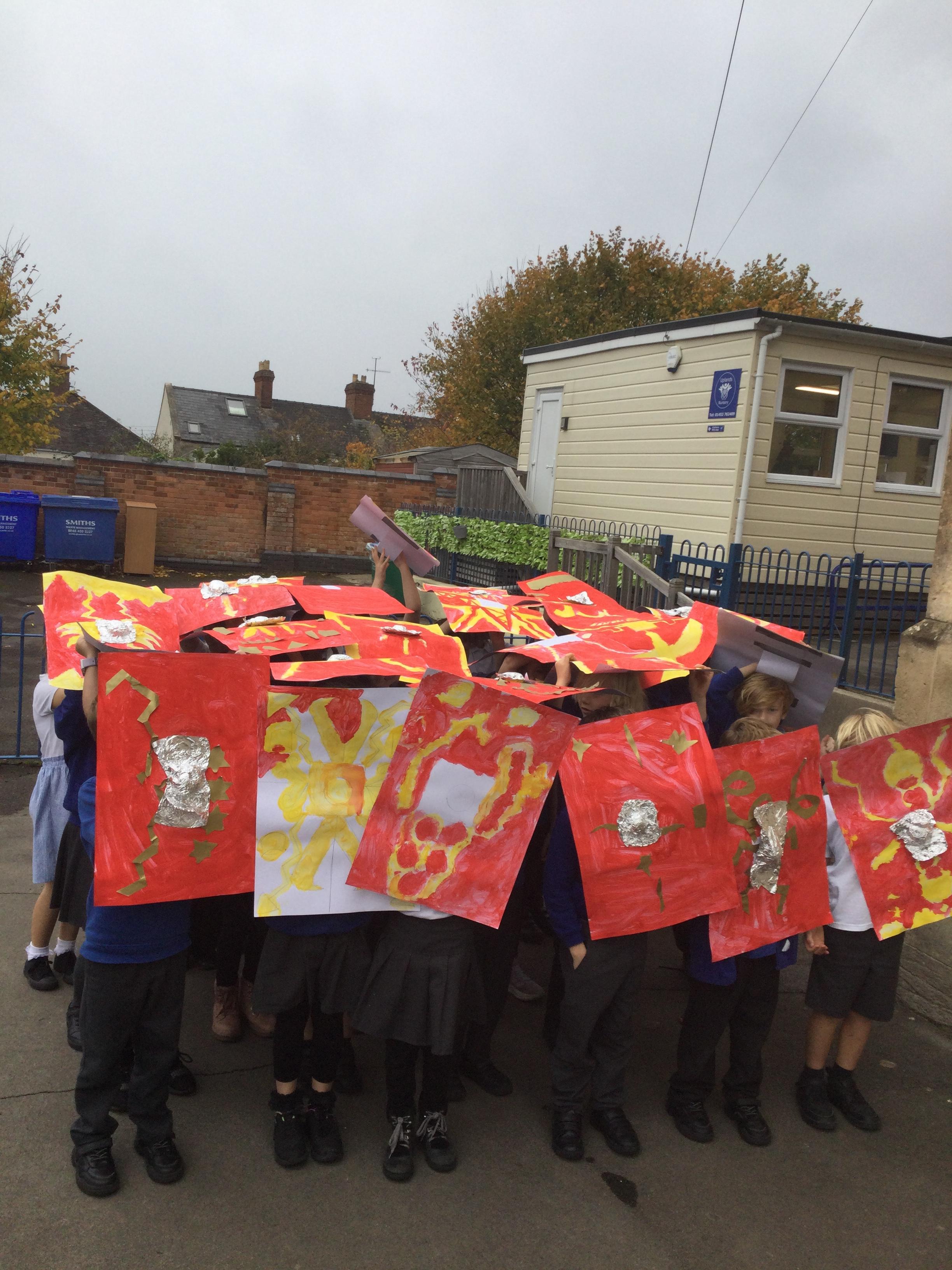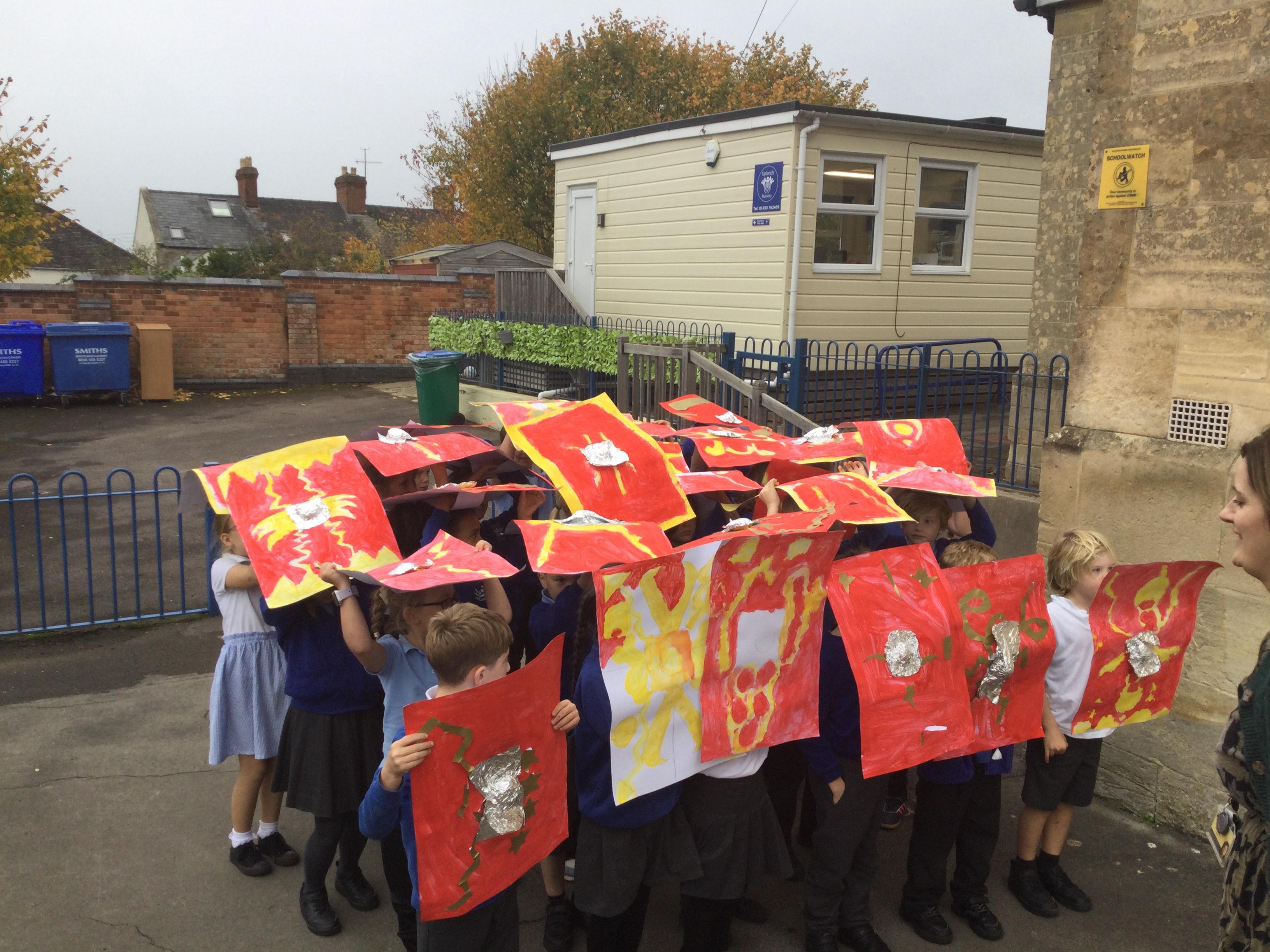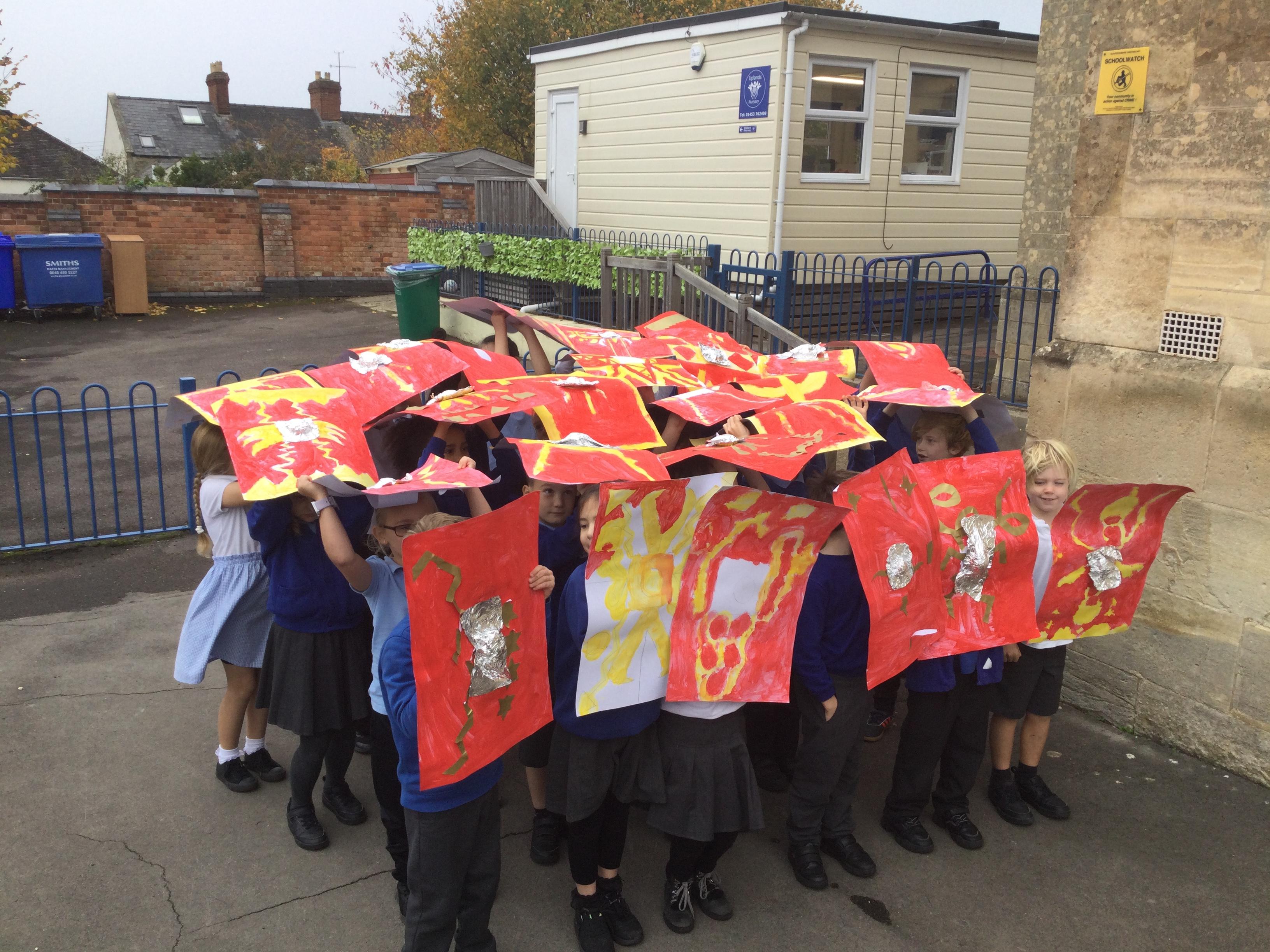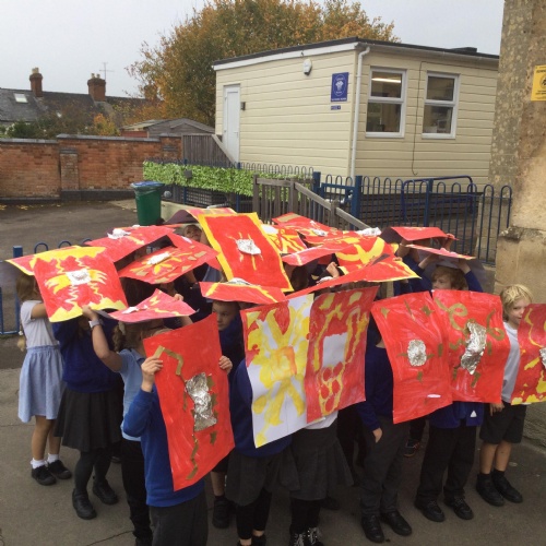 We have had a lovely, busy week. In history, we used our Roman shields to have a go at creating the formations the soldiers used to use during battles (which proved a bit tricky in the wind!).