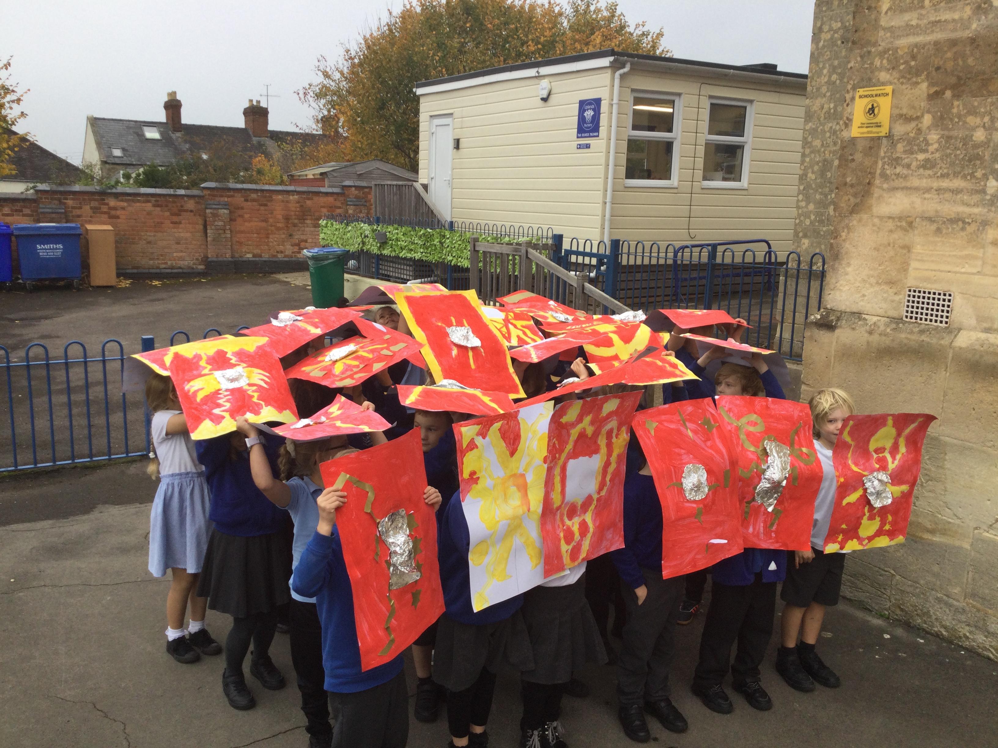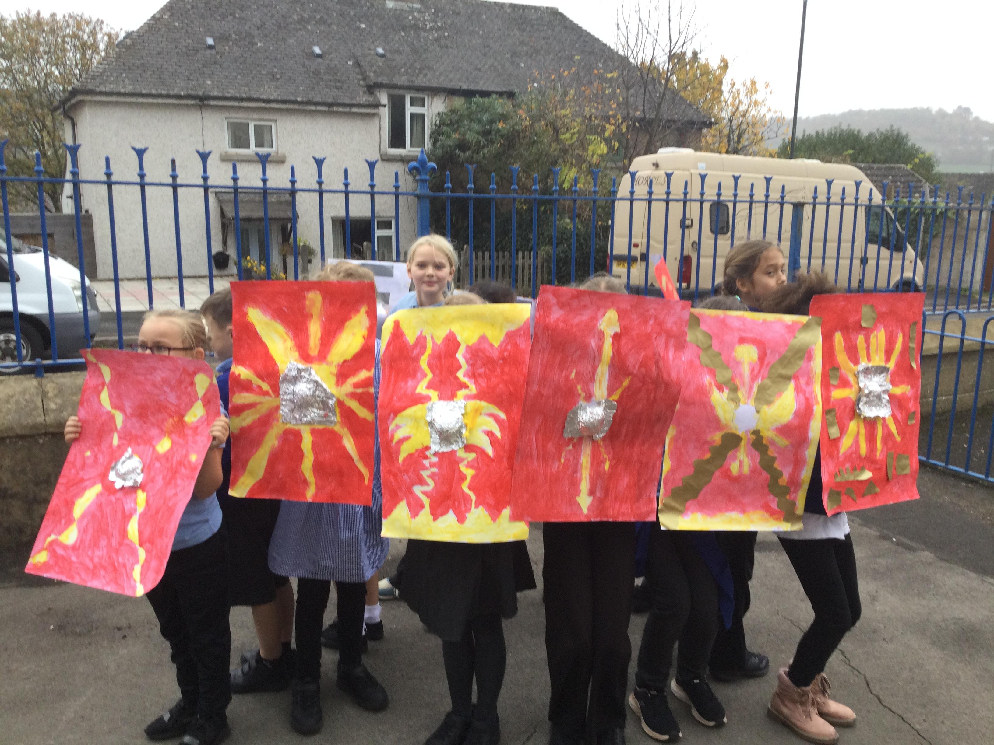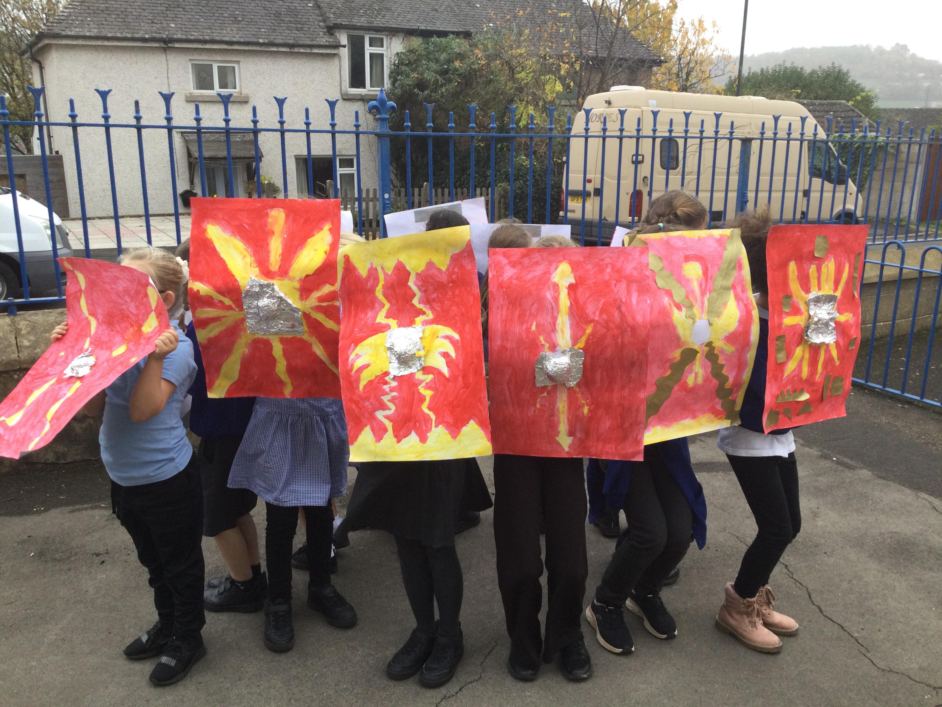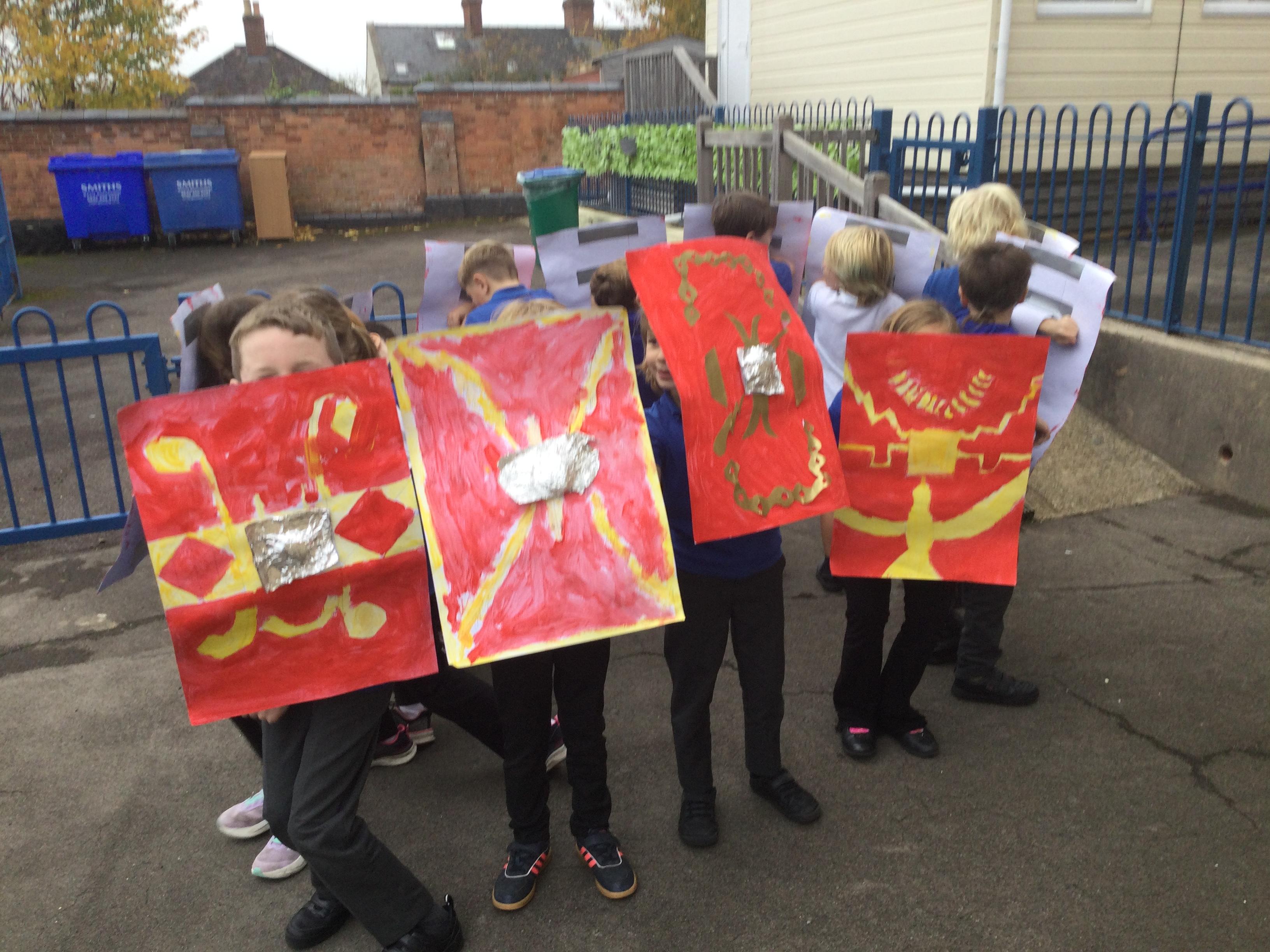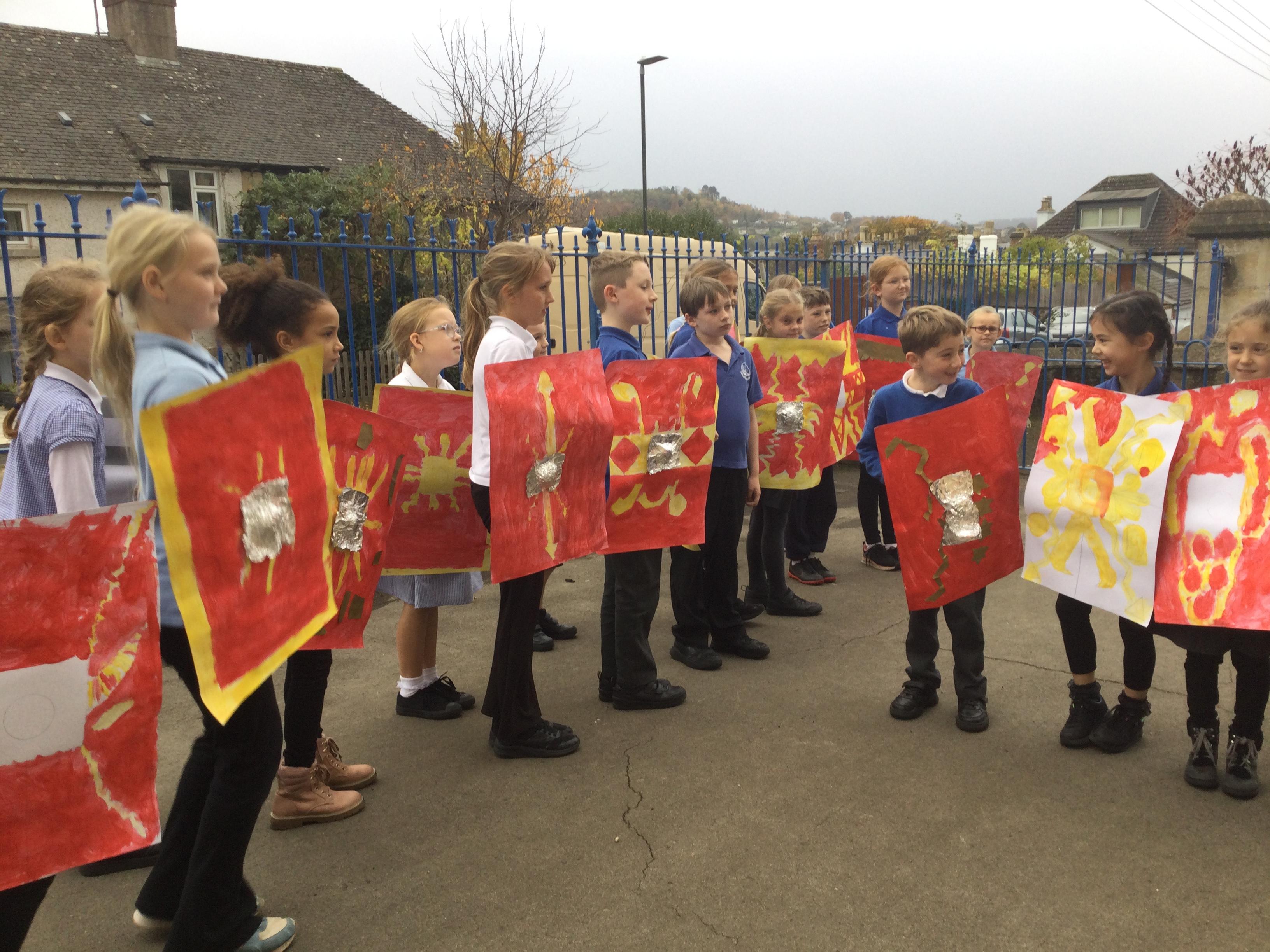 We have had a lovely, busy week. In history, we used our Roman shields to have a go at creating the formations the soldiers used to use during battles (which proved a bit tricky in the wind!).