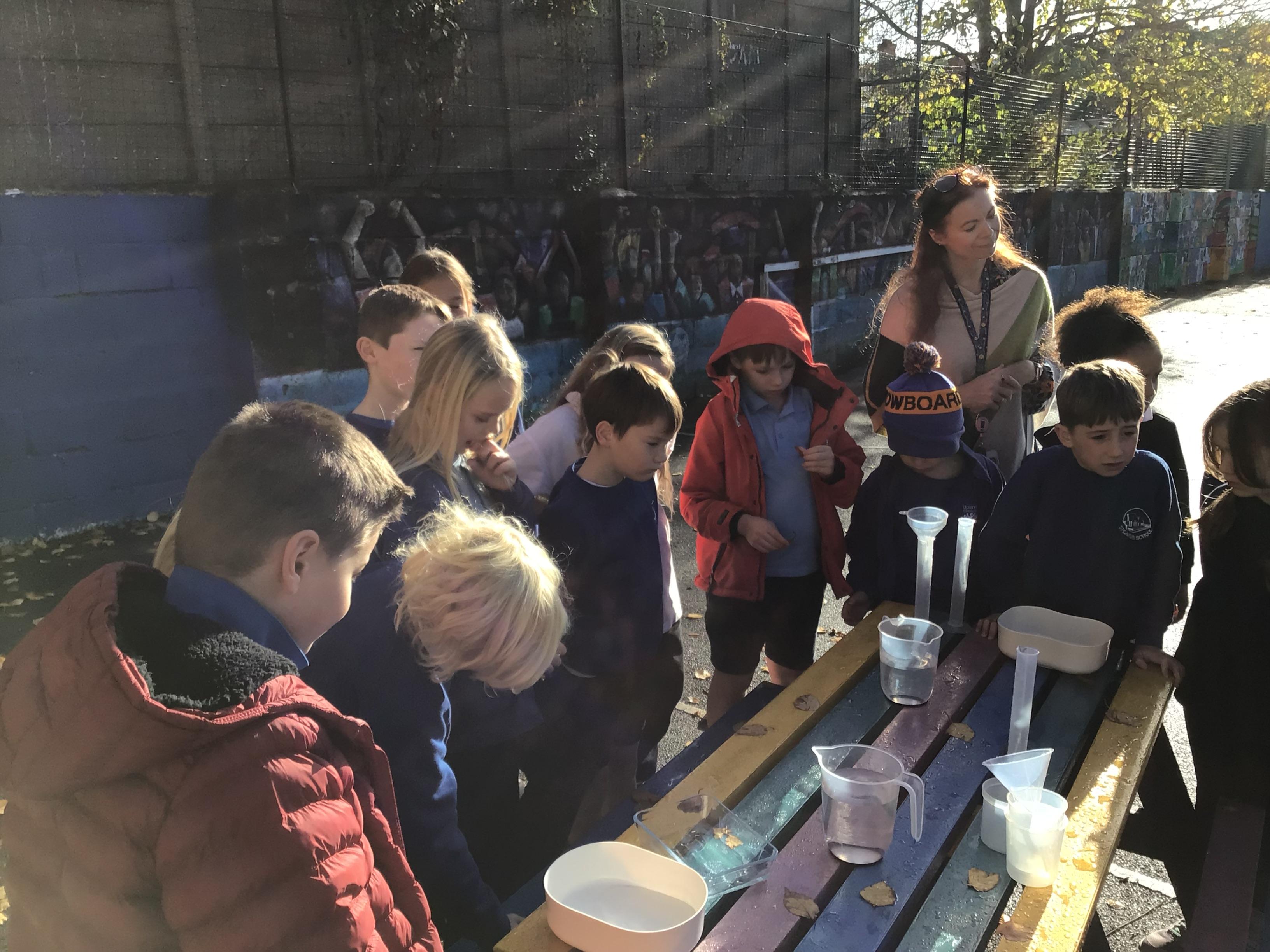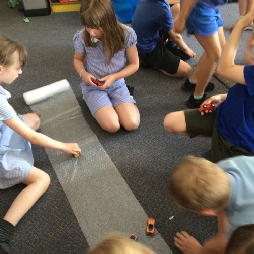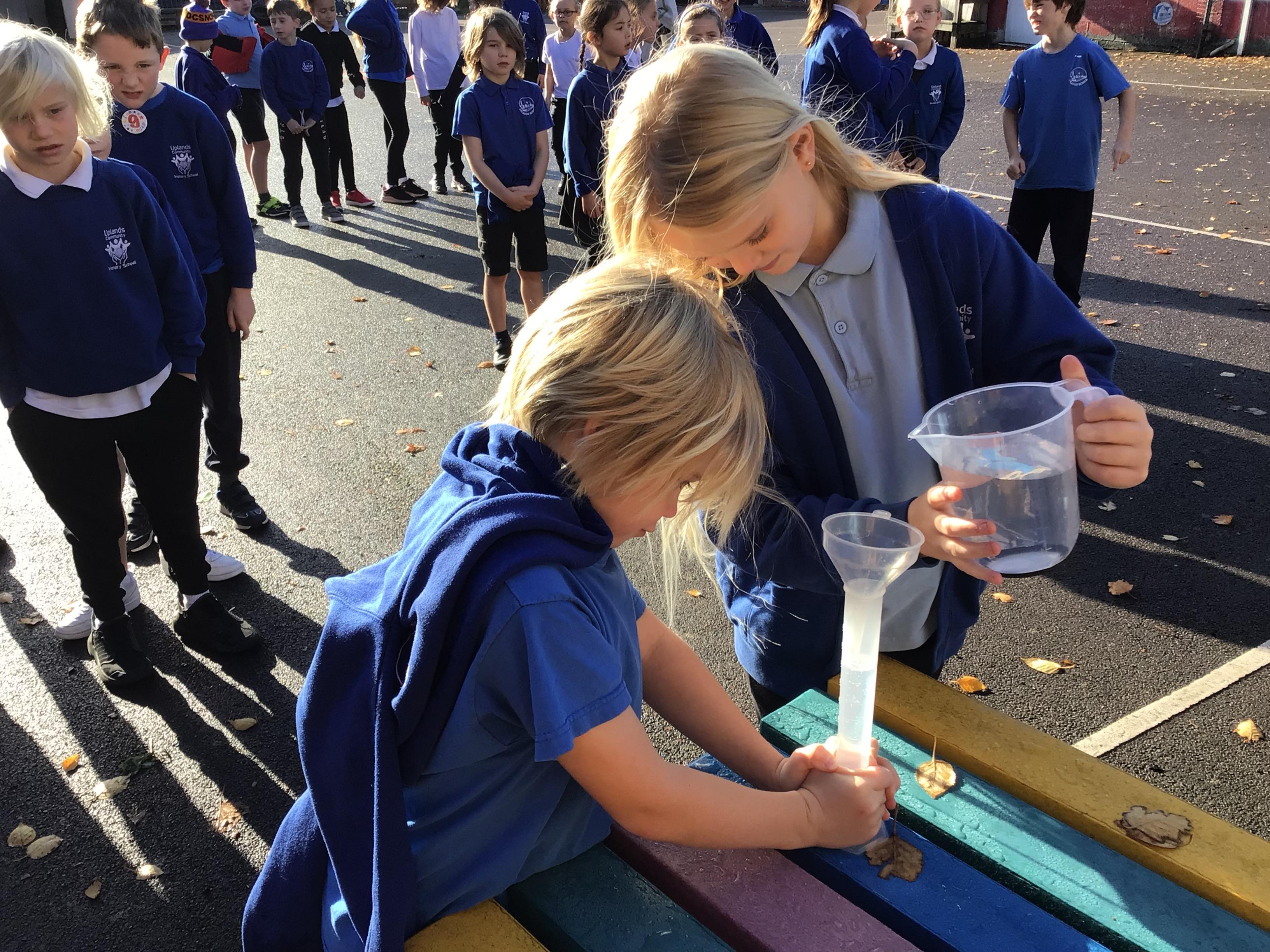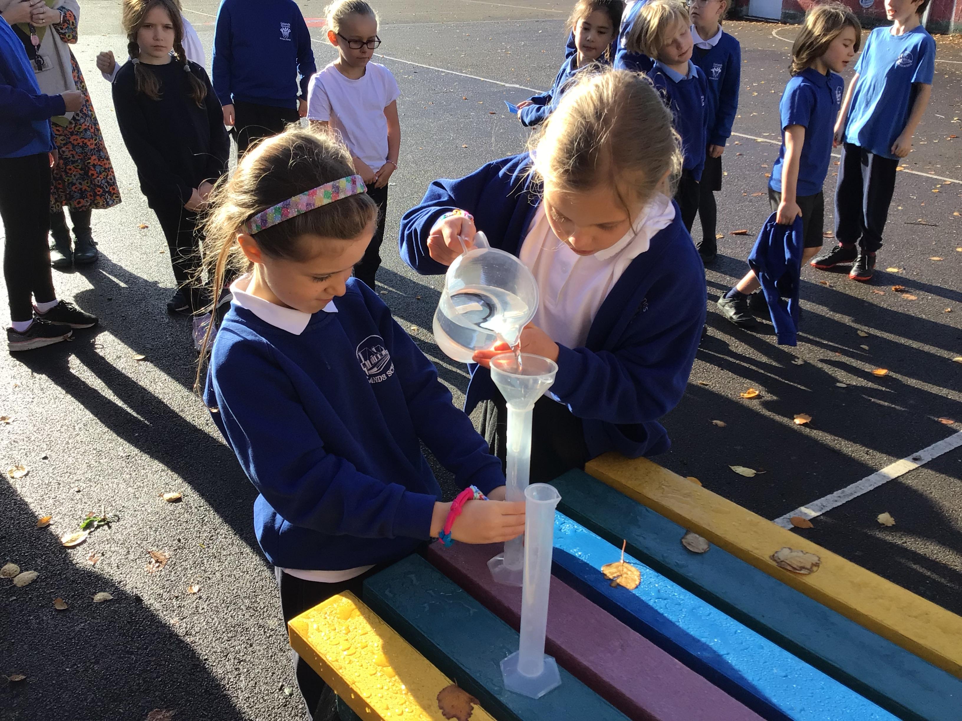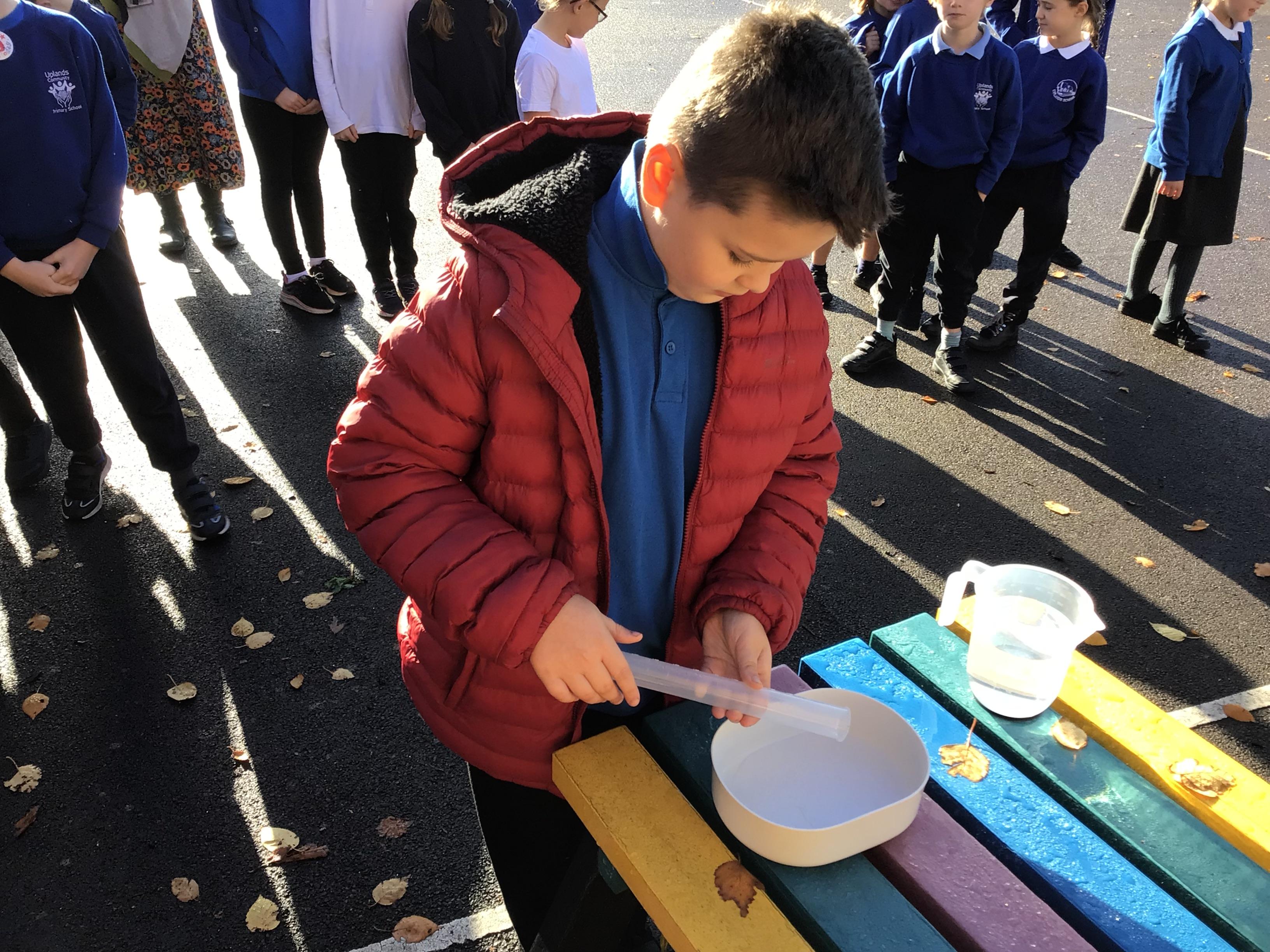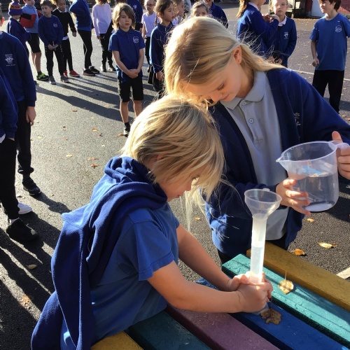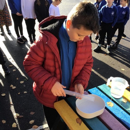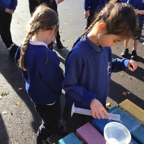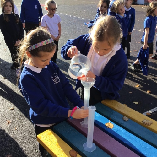 In science, we enjoyed carrying out an investigation about what conditions will speed up the evaporation process of water. We were very careful with our measuring and were interested to discover that windy conditions will make water evaporate quicker.