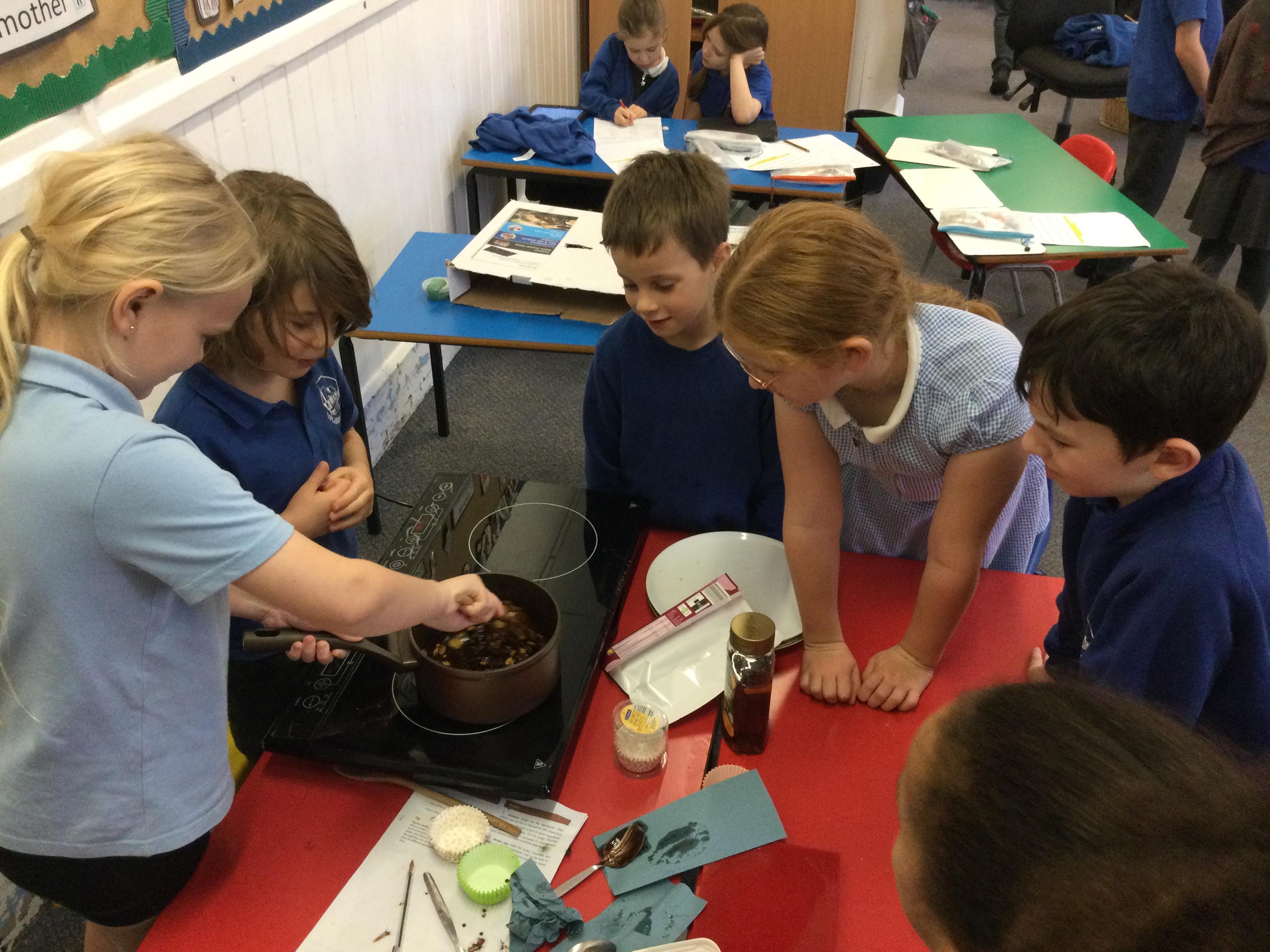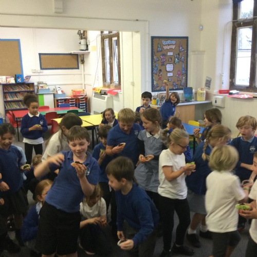 In science, we have been consolidating our learning about changing states of matter by making chocolate cornflake cakes (turning solids into liquid) and making salt crystals. In history, we have made some brilliant Roman shields and in RE we had our own Rosh Hashanah celebration: we enjoyed apple slices dipped in honey, pomegranates and our version of Challah bread.