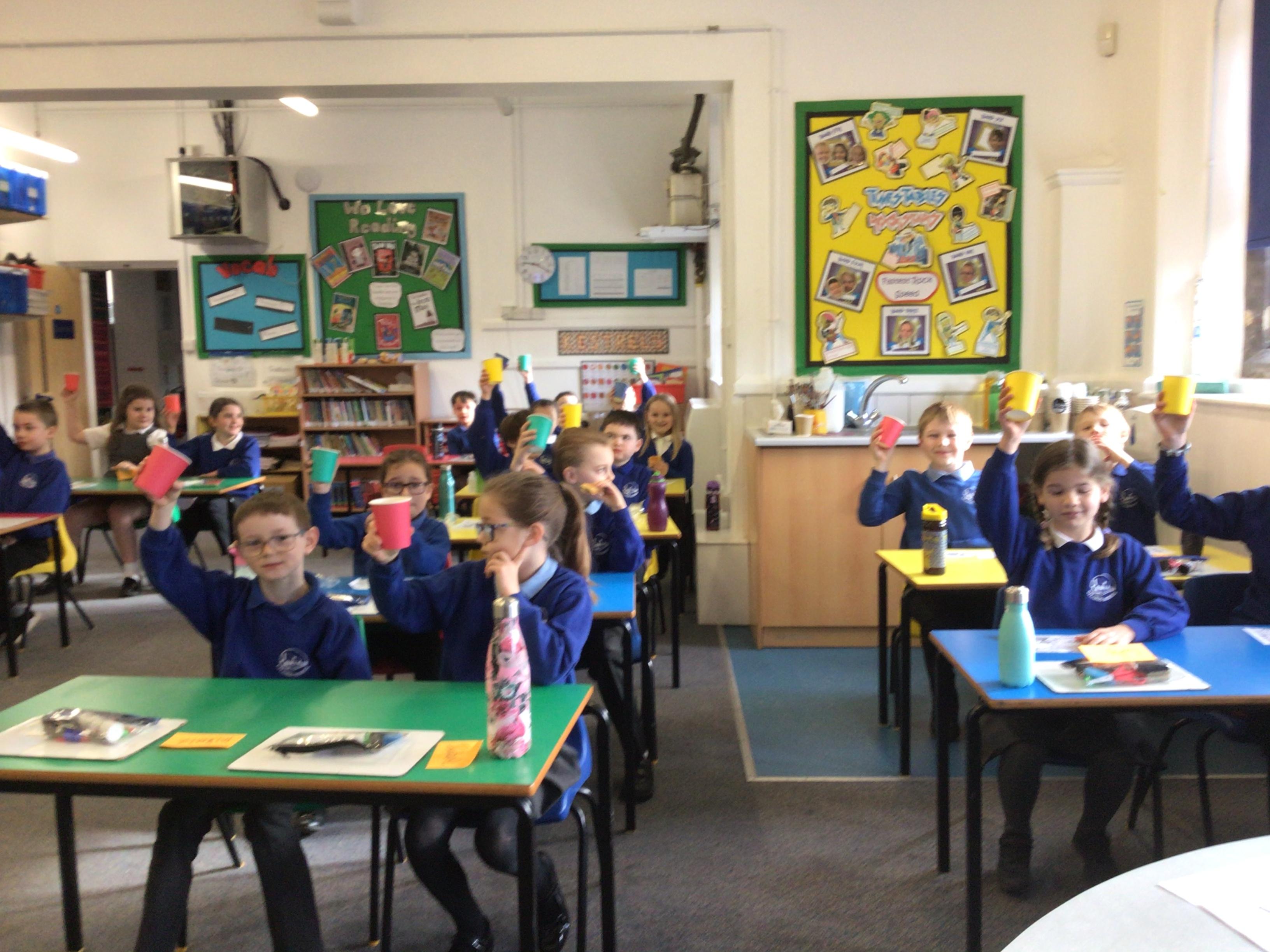 We have planned and carried out an investigation in science using eggs to replicate the enamel on our teeth. We have put one egg in water, milk, coffee, orange juice and coke. We are looking forward to seeing the changes to the shells next week.