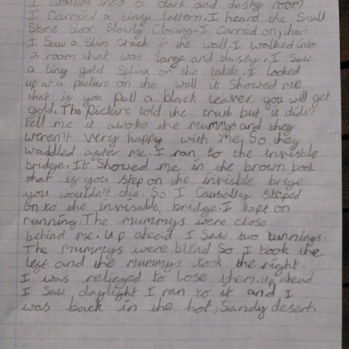 This week in English, we have written the ending to our class story The Journey. We have worked on using expanded noun phrases and fronted adverbs to write an exciting end to the story.