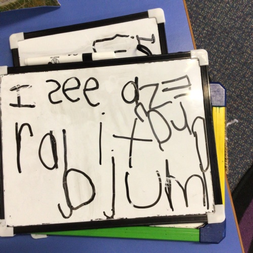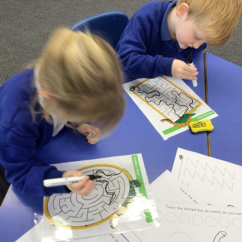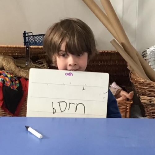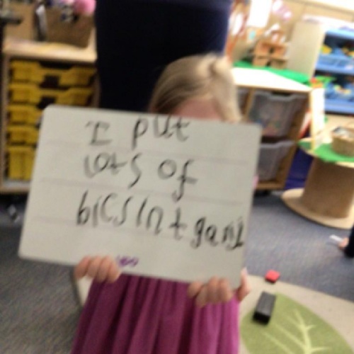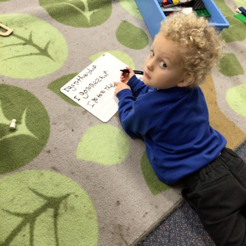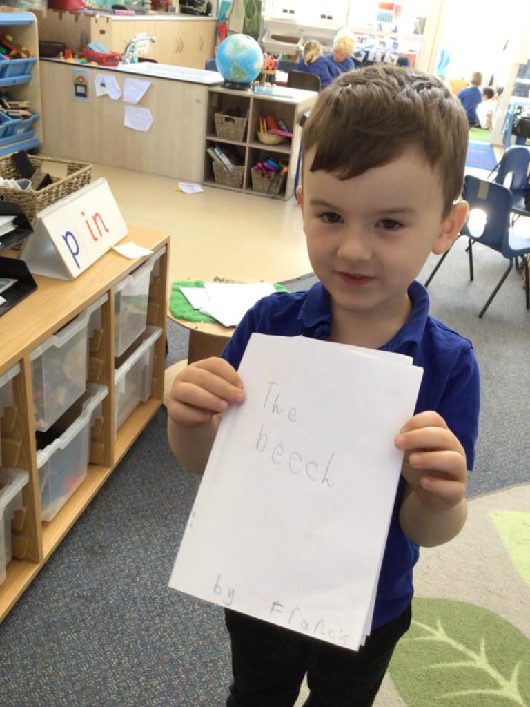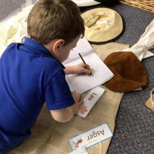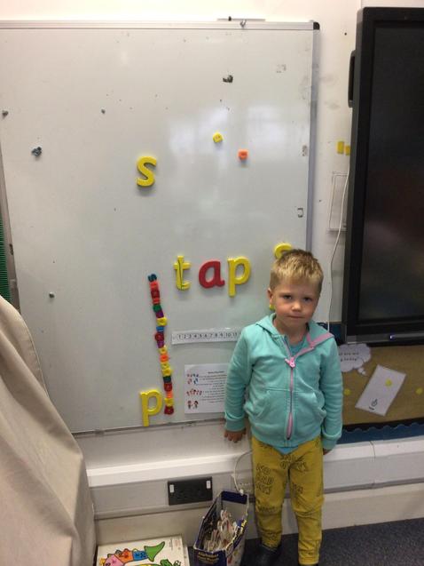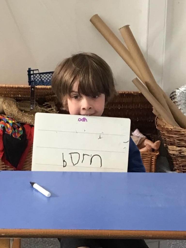 In literacy we have been reading Monkey Puzzle. We have started using the letter sounds that we have been learning to write words and wrote 'mum and dad' this week.