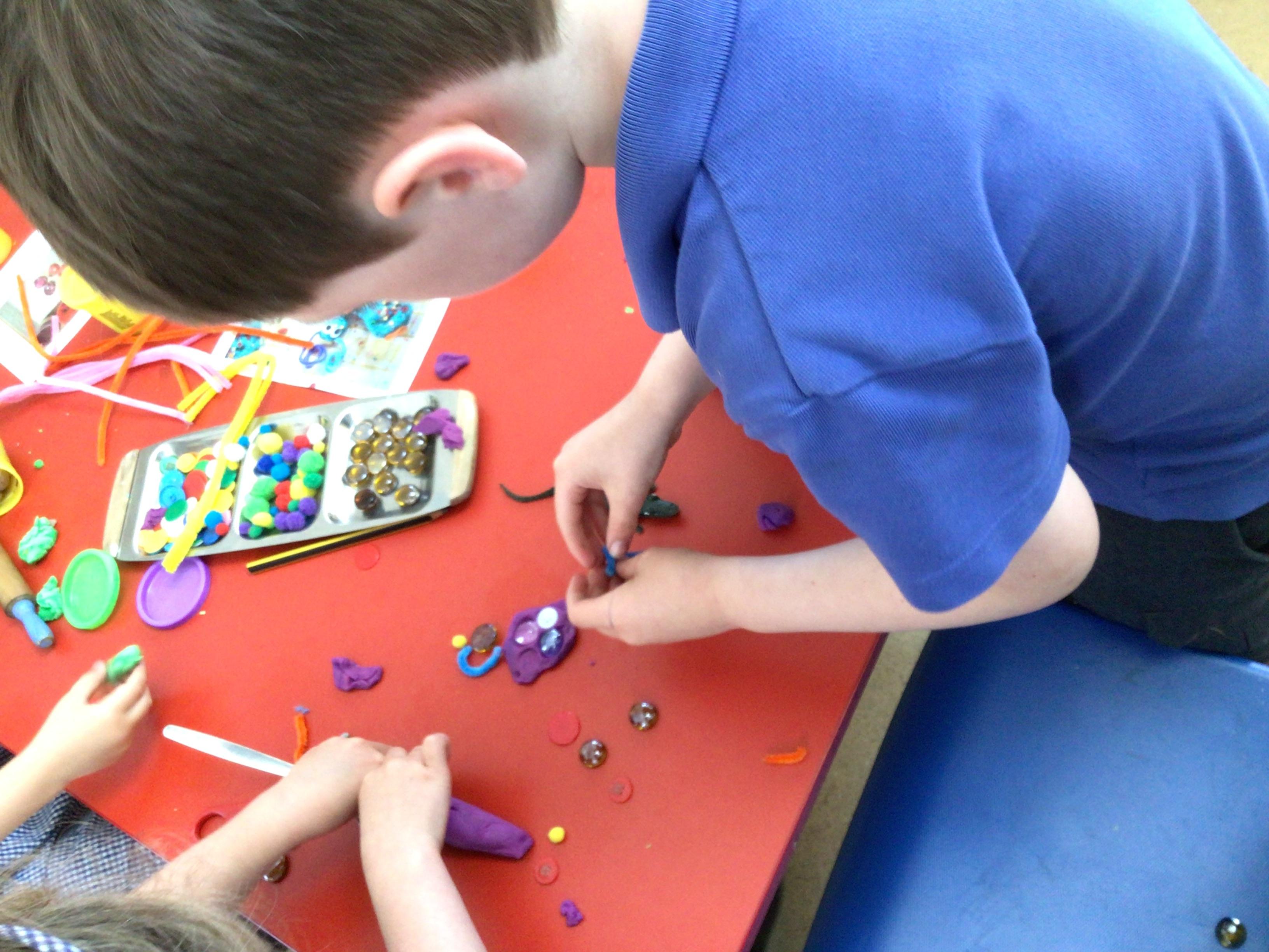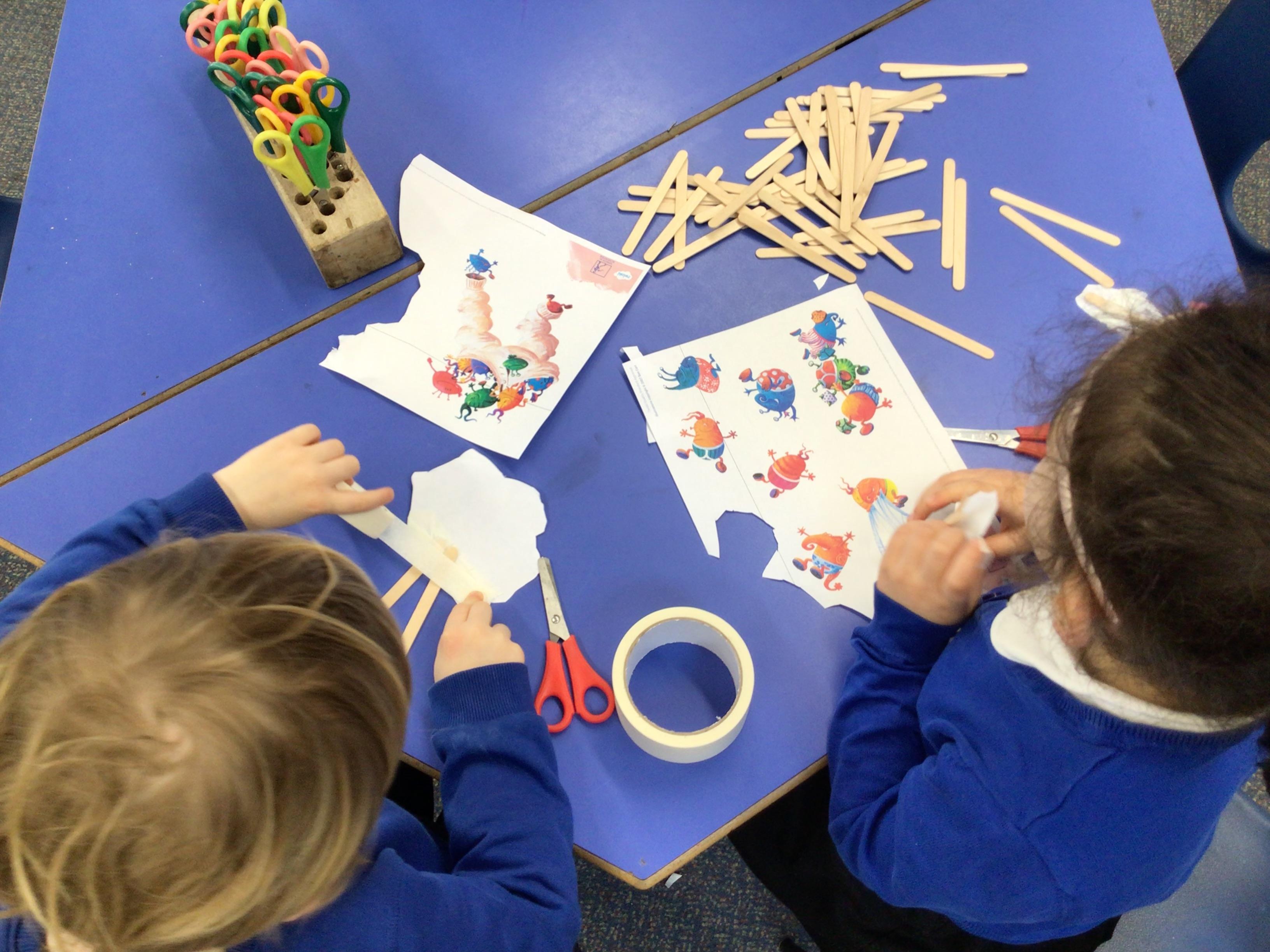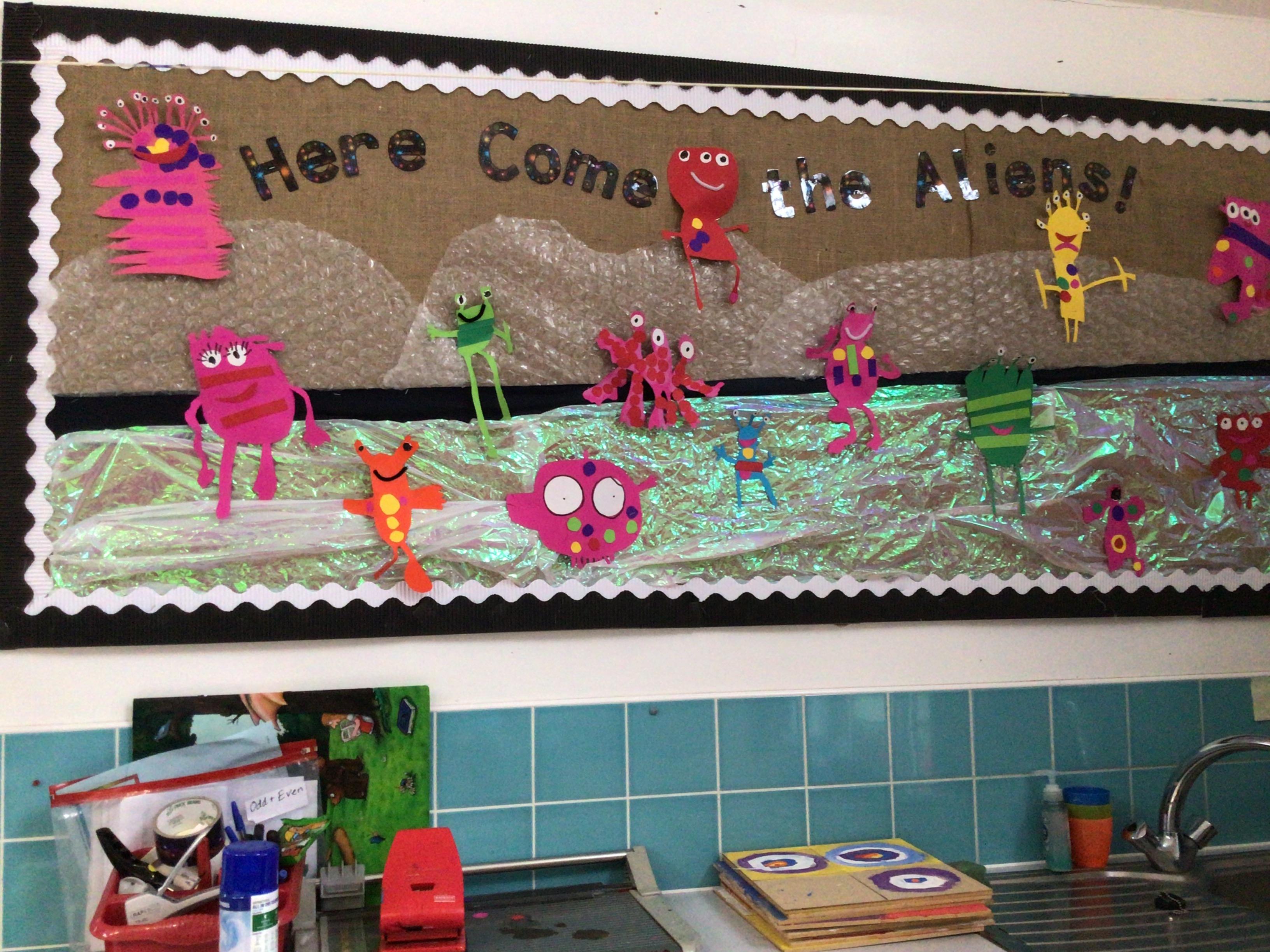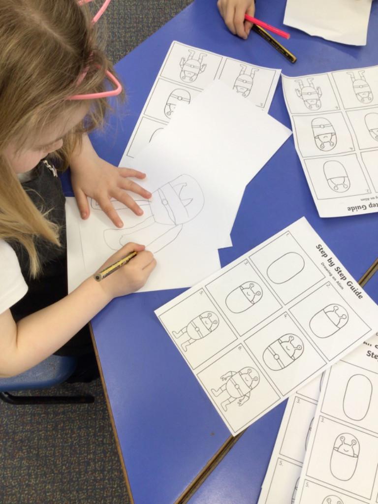 In art we have been creating crazy collage aliens. We think they look amazing!