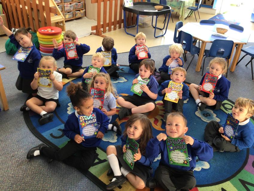 We have continued to explore our indoor and outdoor learning environments and created our own set of 'class rules' together as a team. We are becoming more familiar with our routines and settling in beautifully! In fact we have been settling in so well that Miss Allen gave us ALL our FIRST STAR AWARD and our parents came to watch!