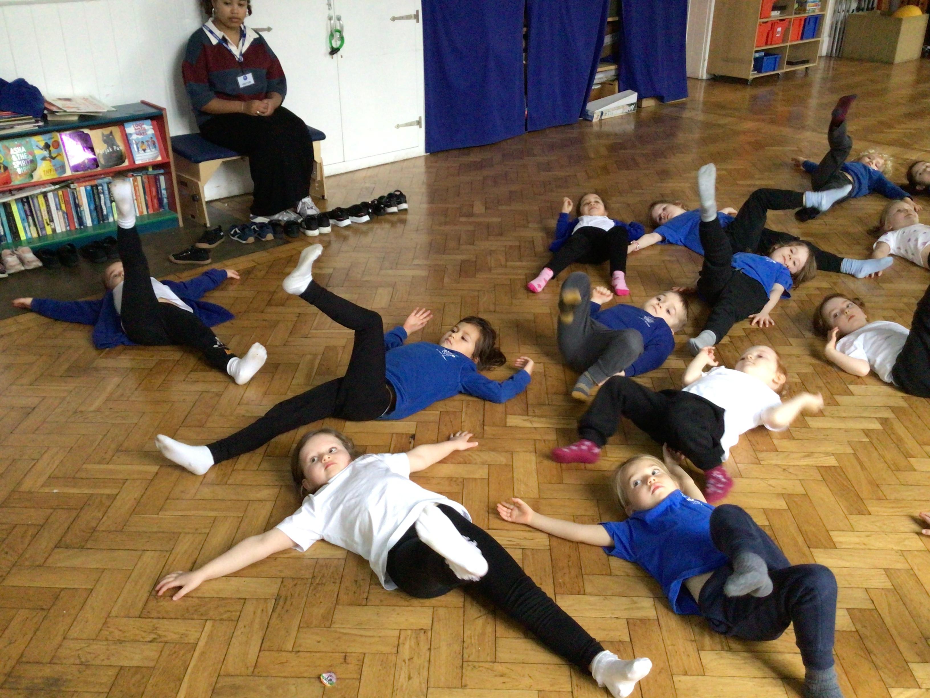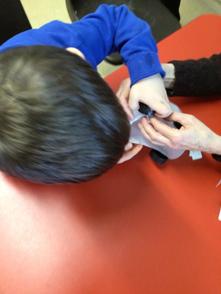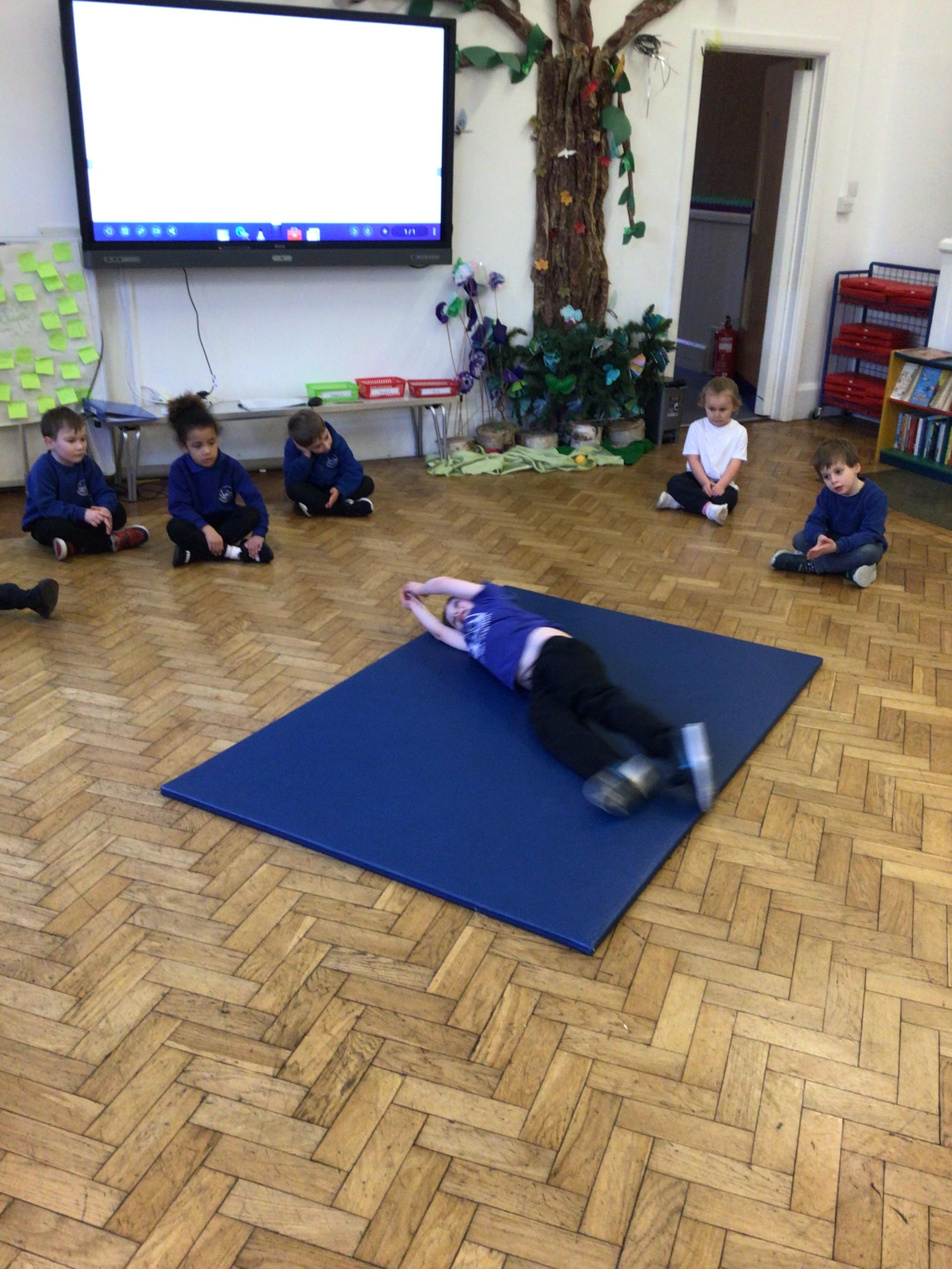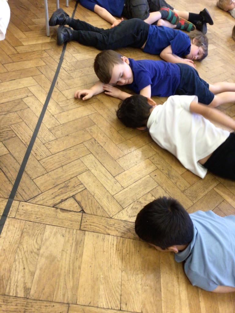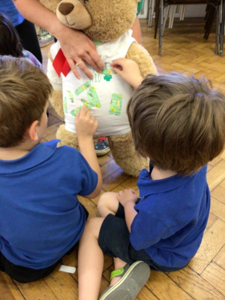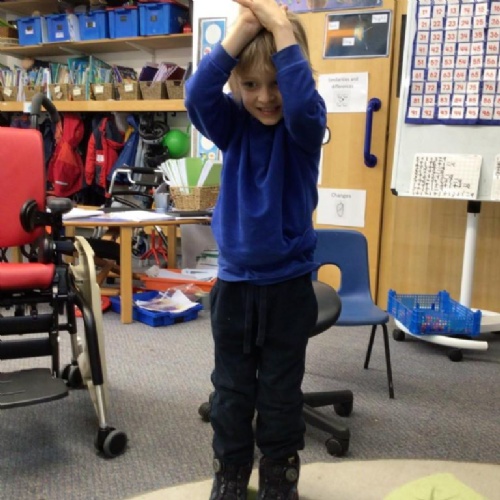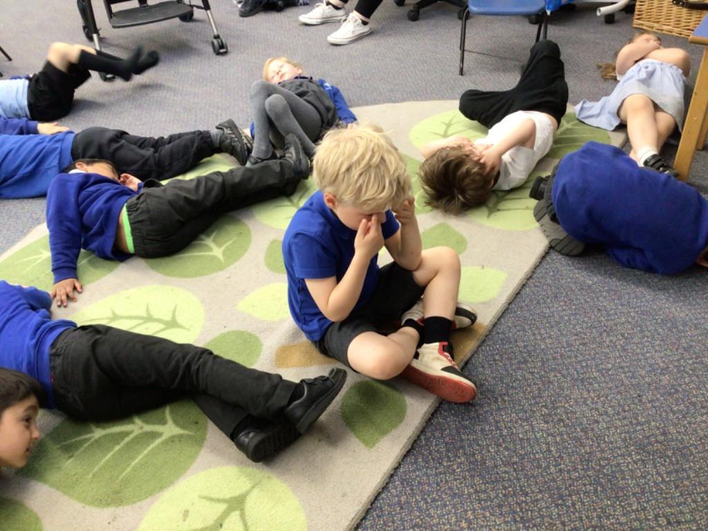 We drew around Ellis on large paper and began to label his body as a group. The children directed me to where they wanted me to write to make our ‘labels’. Some children decided to draw more details on afterwards, giving Ellis eyes and a smile! Some children used their phonic knowledge to begin to label with a little support, eg ‘ribs’ and ‘hr’ (hair) and ‘maf’ (mouth).