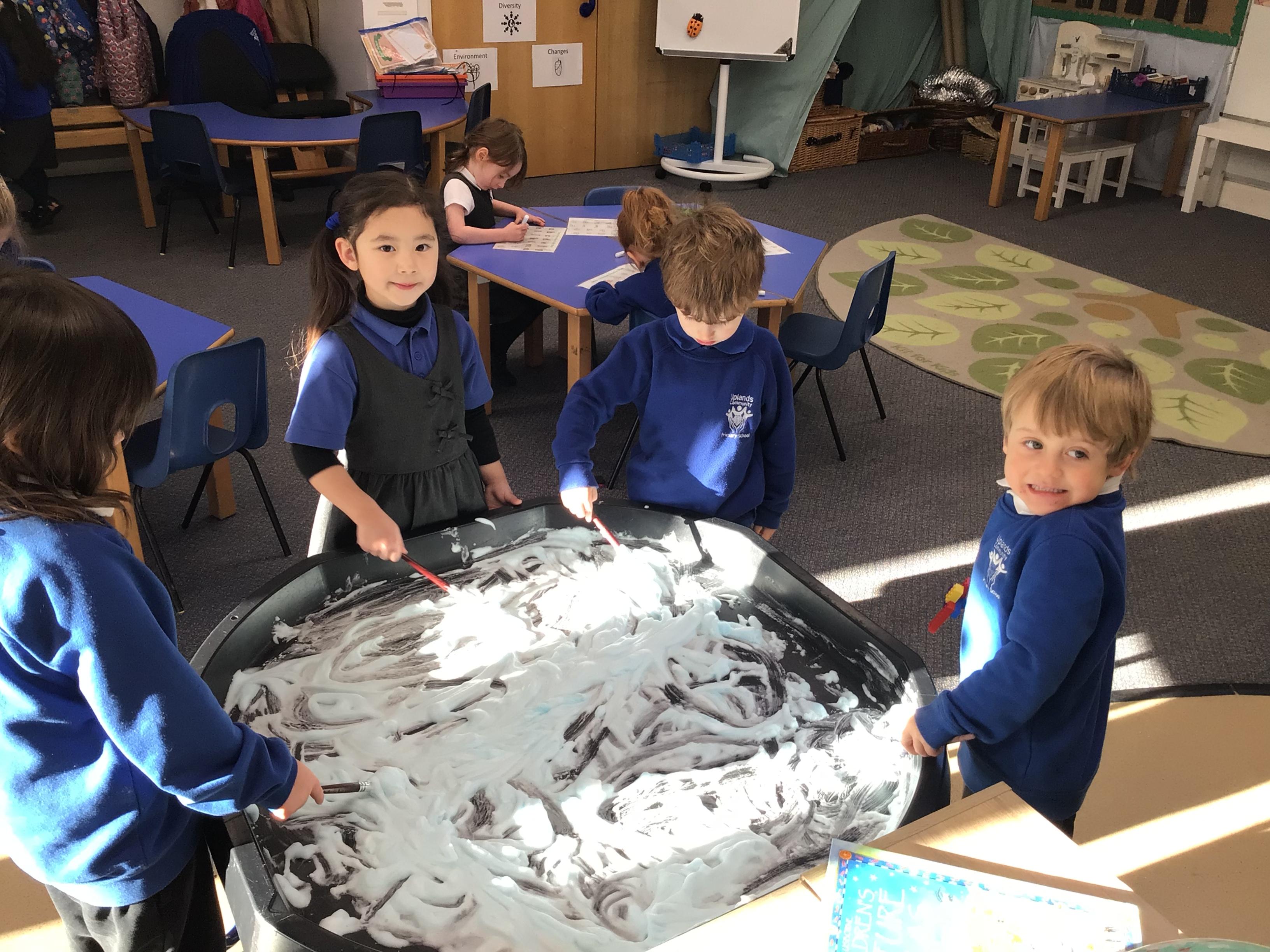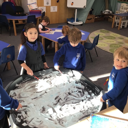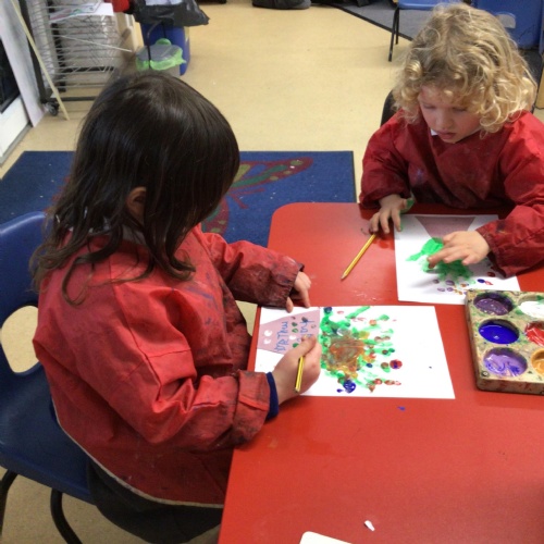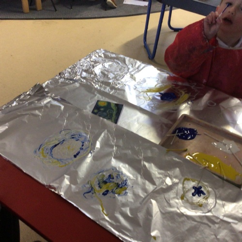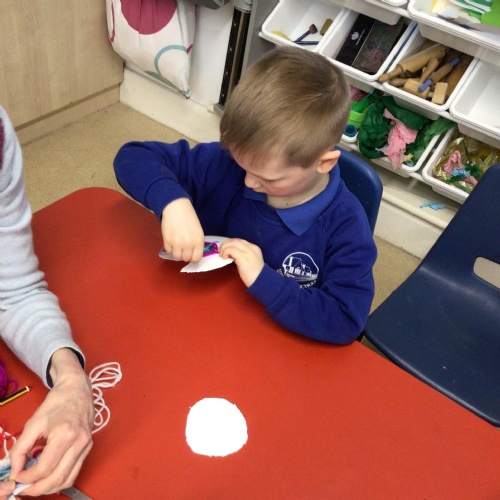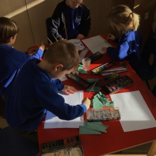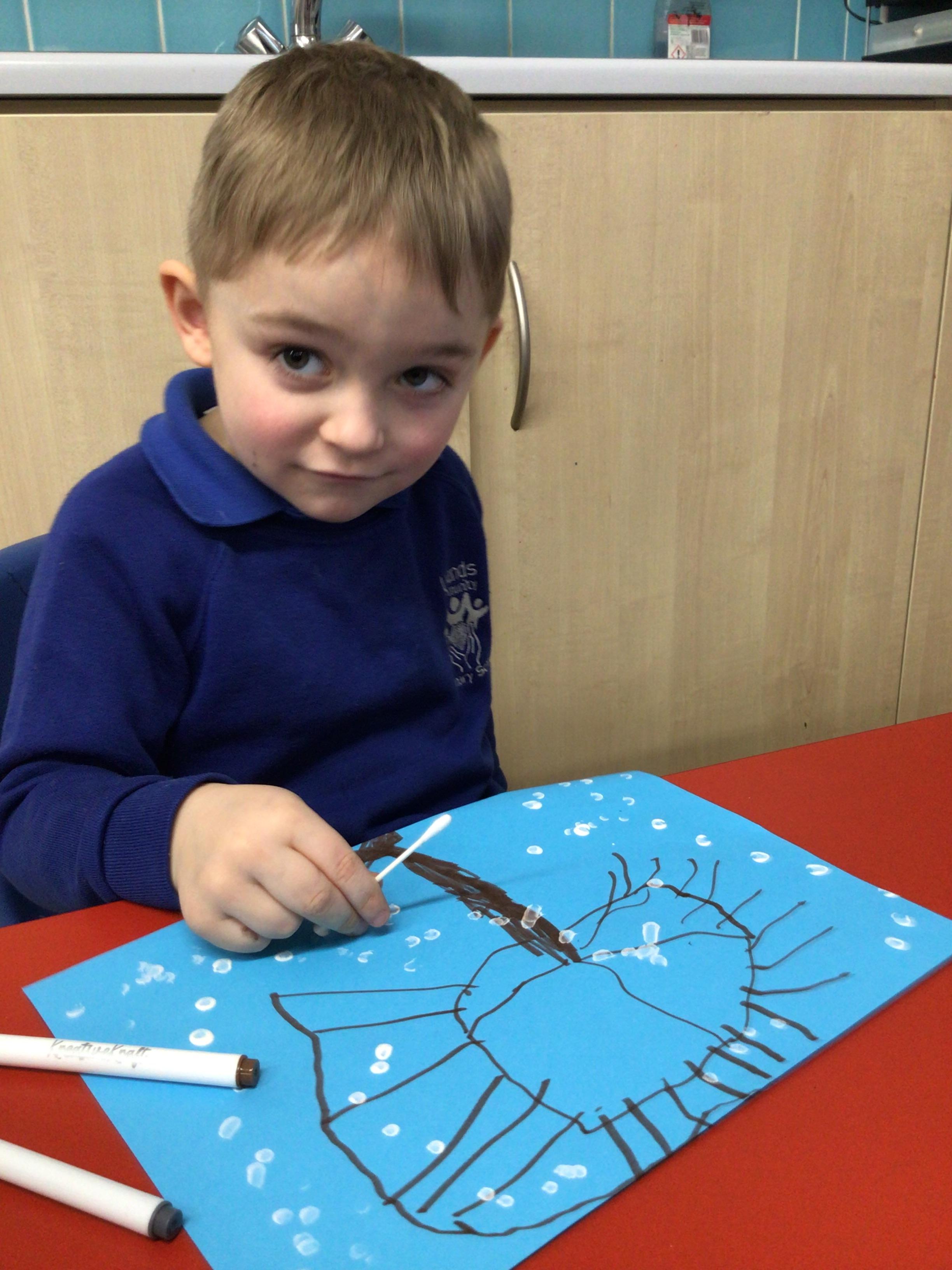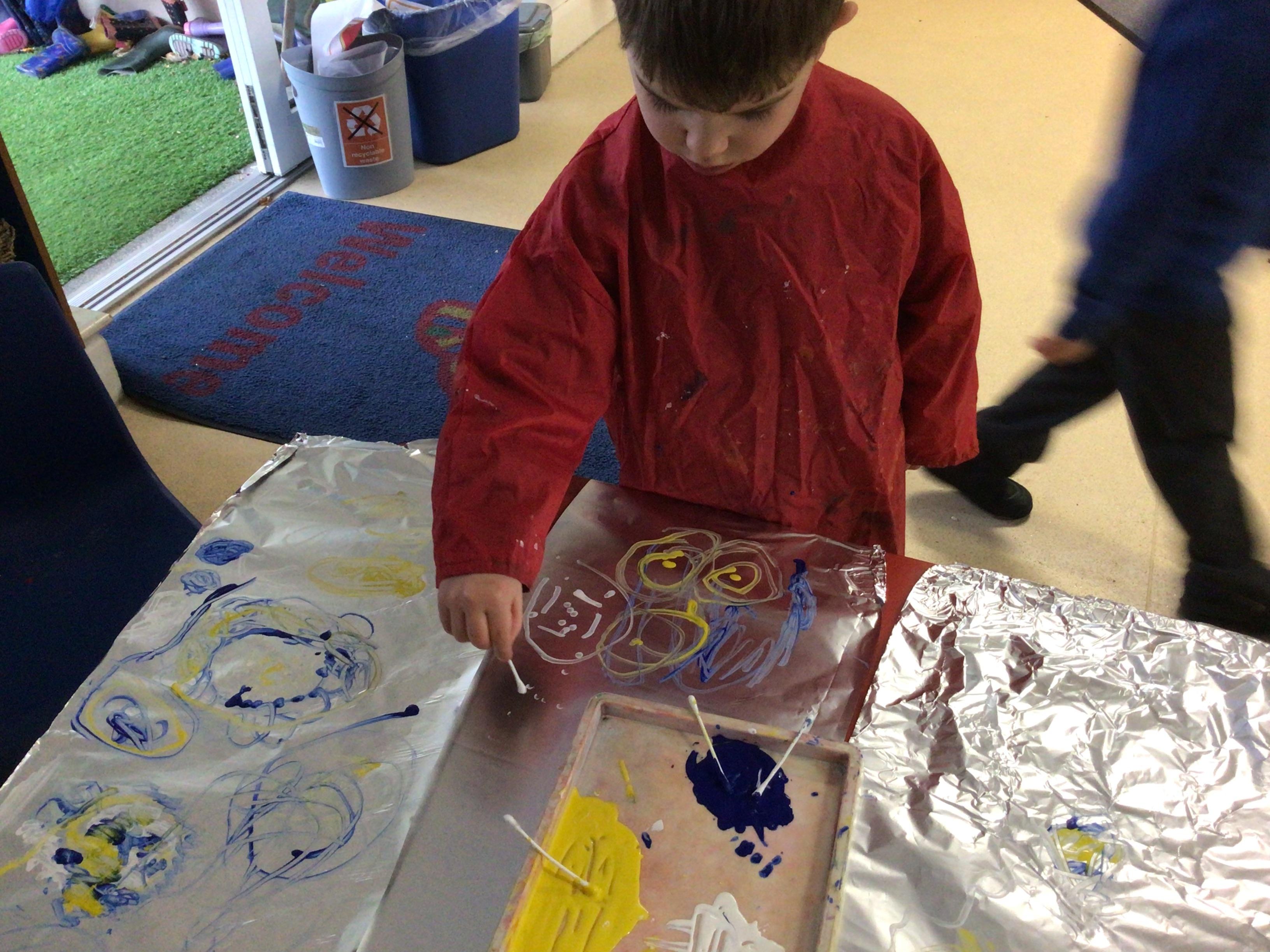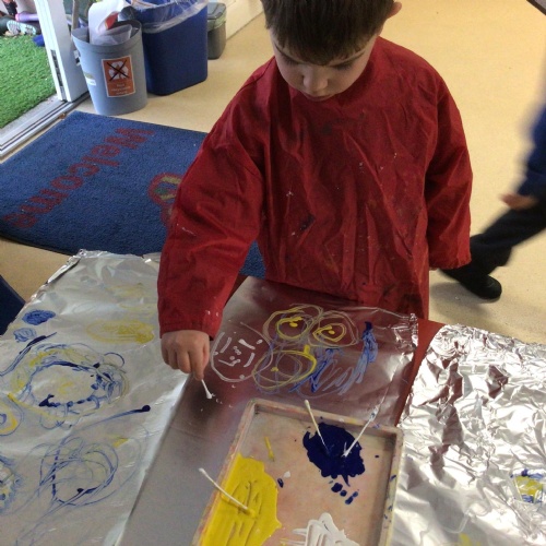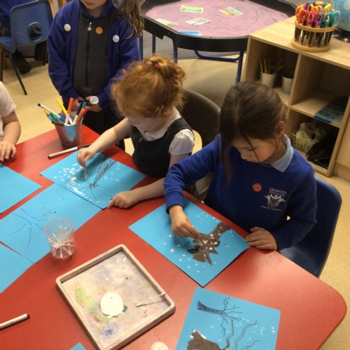 - In Art we have created a winter painting using cotton buds and pens