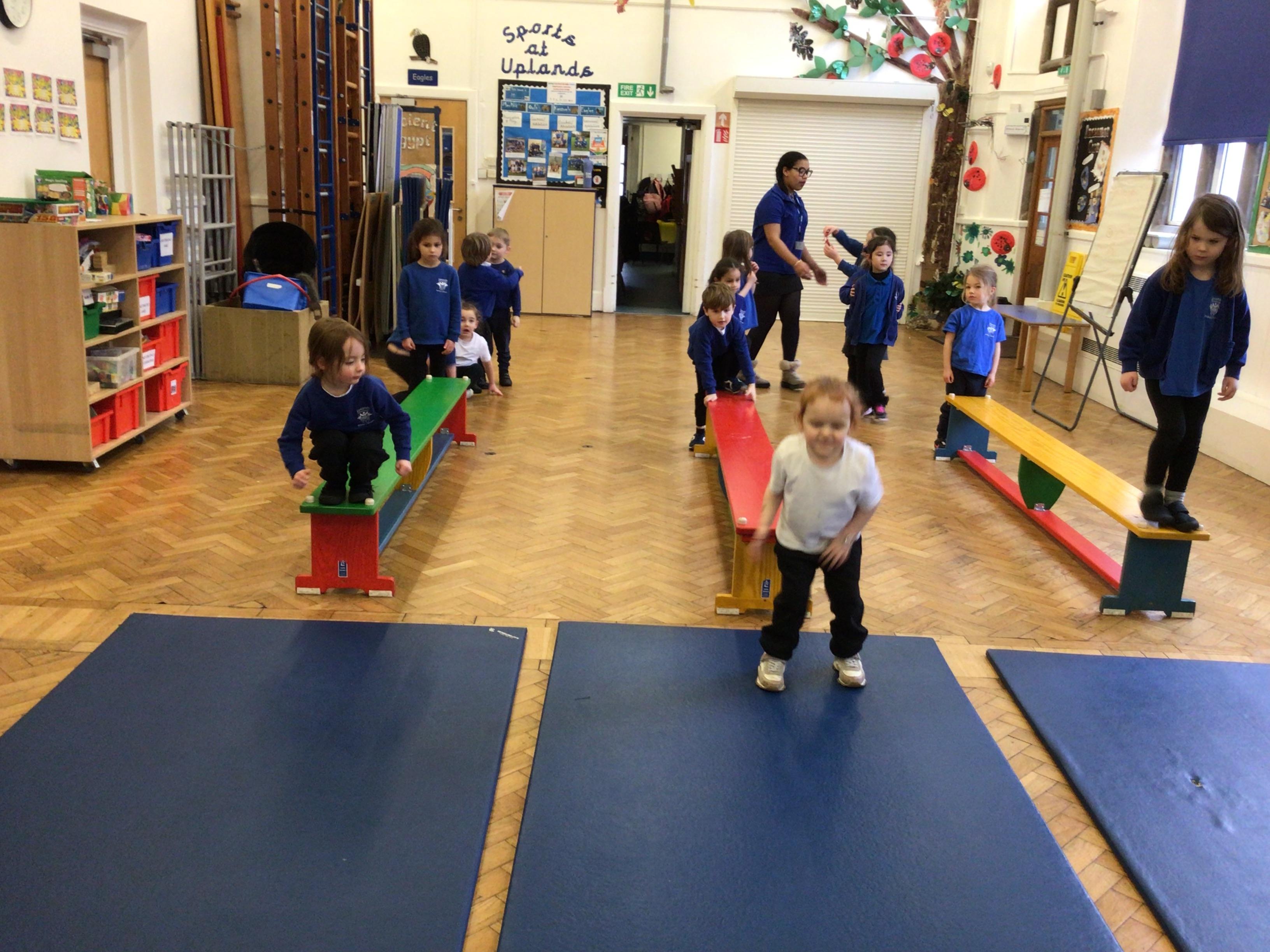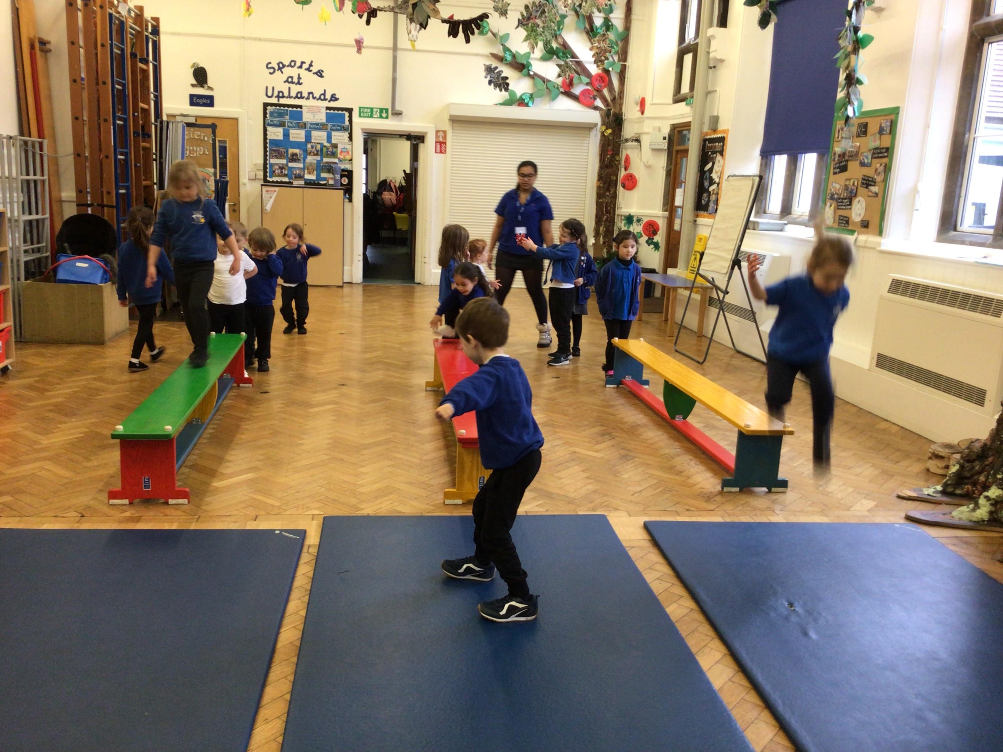 - In our gymnastic lessons we have been learning how to safely do different types of jumps .