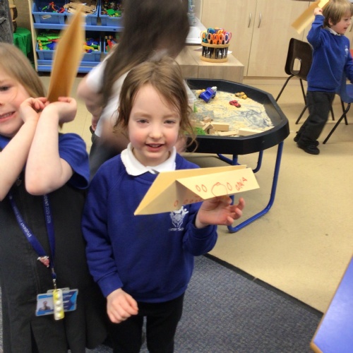 - We are still looking at transport in our topic so this week we did some airport role play and made paper airplanes!