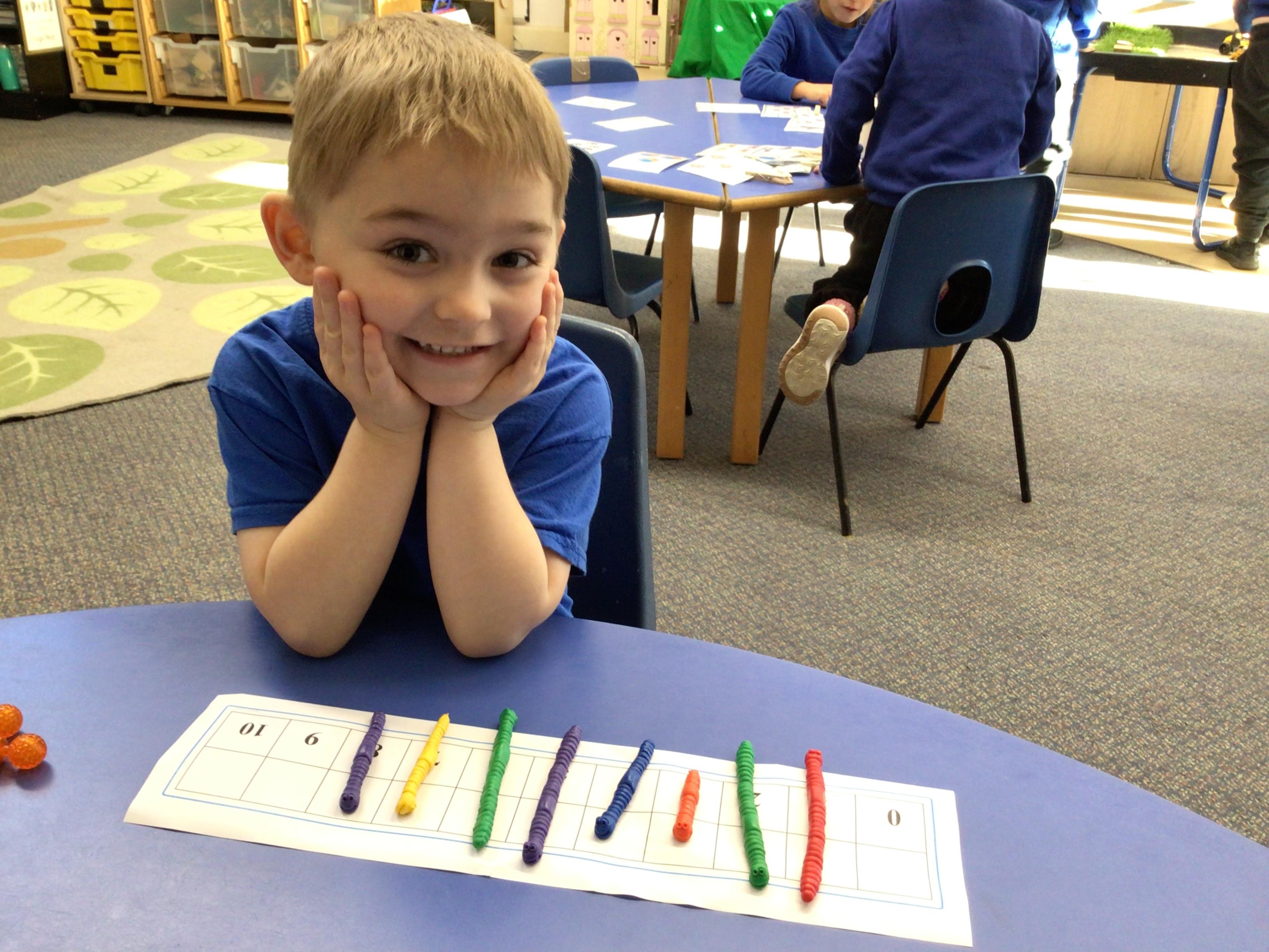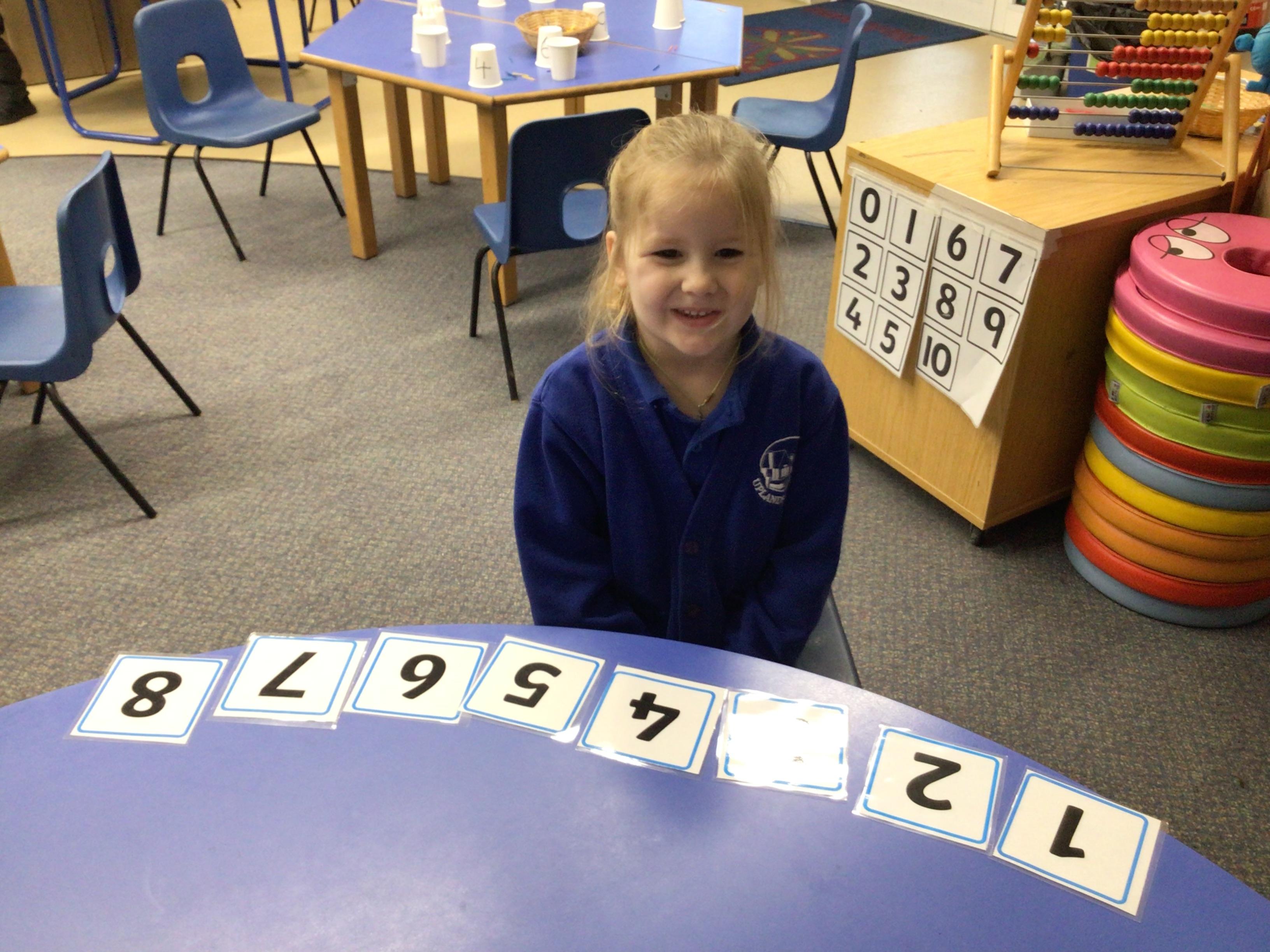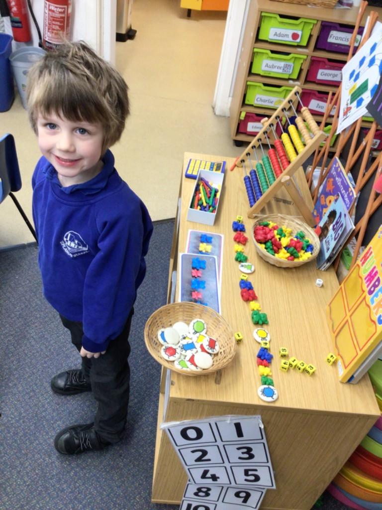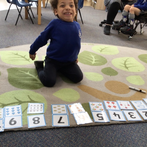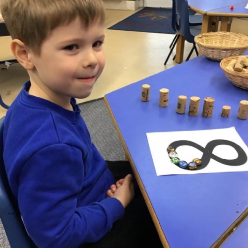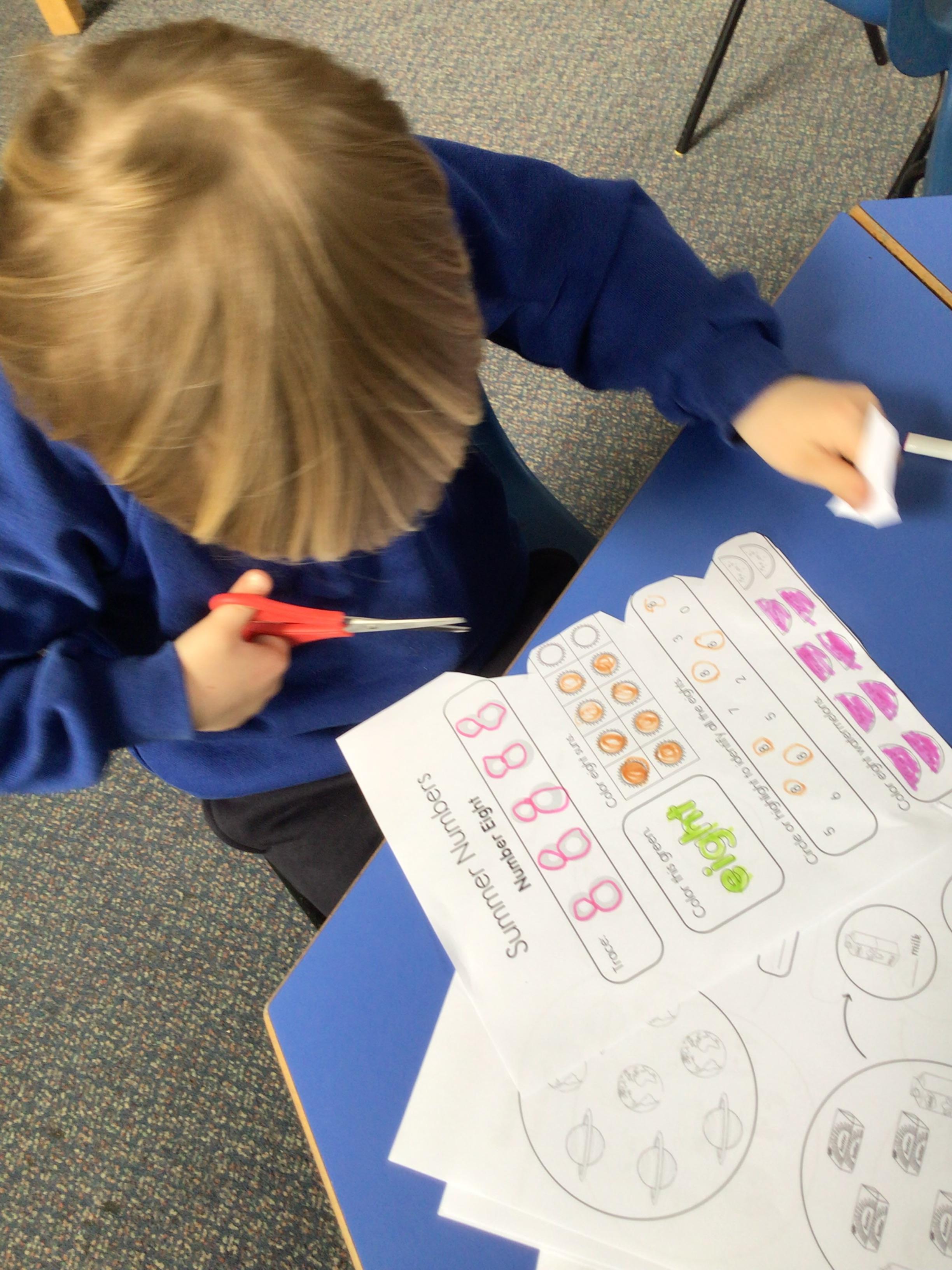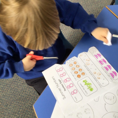 - We have been looking at the number 8 in Maths and counting objects onto a number track.
