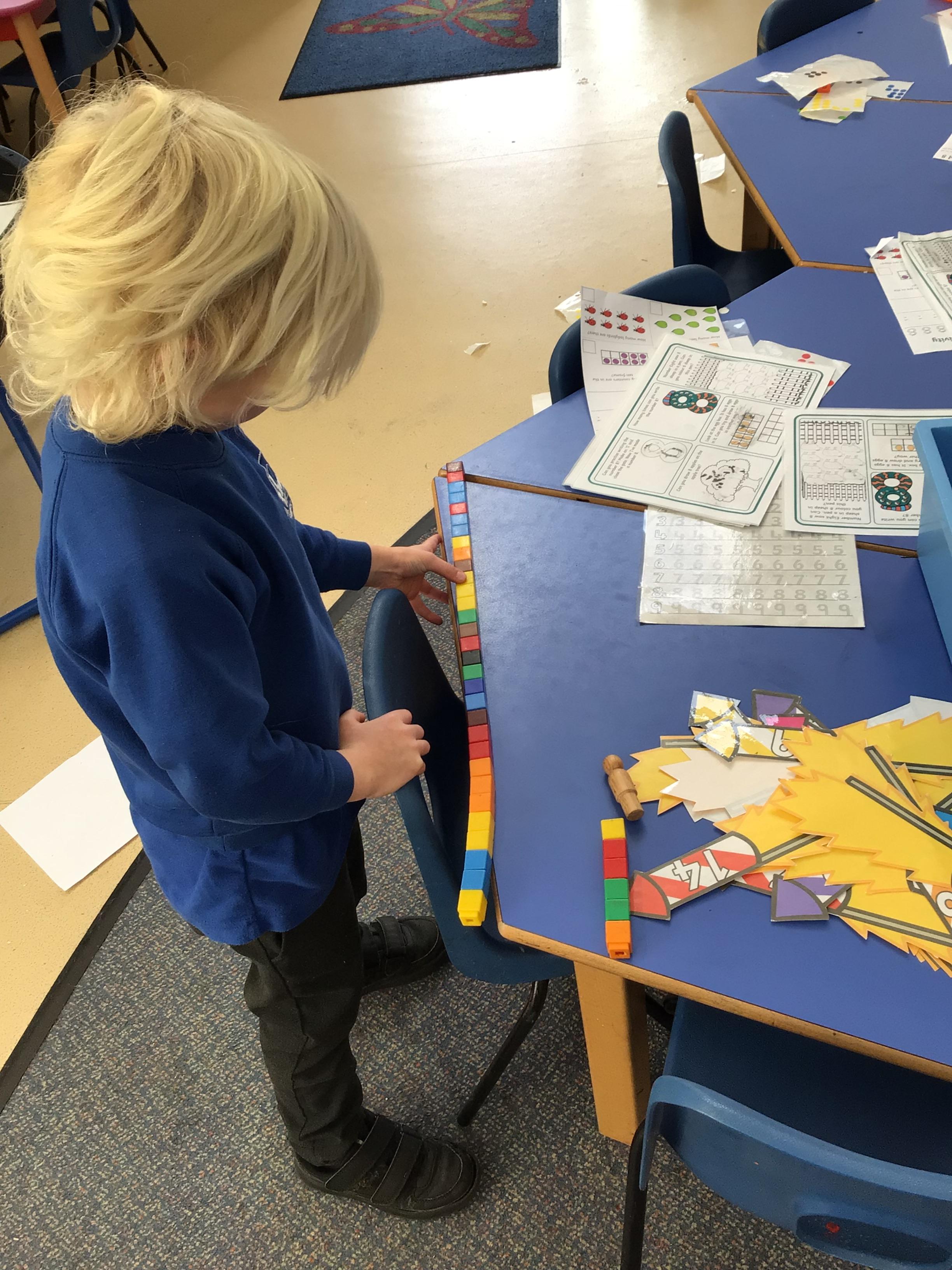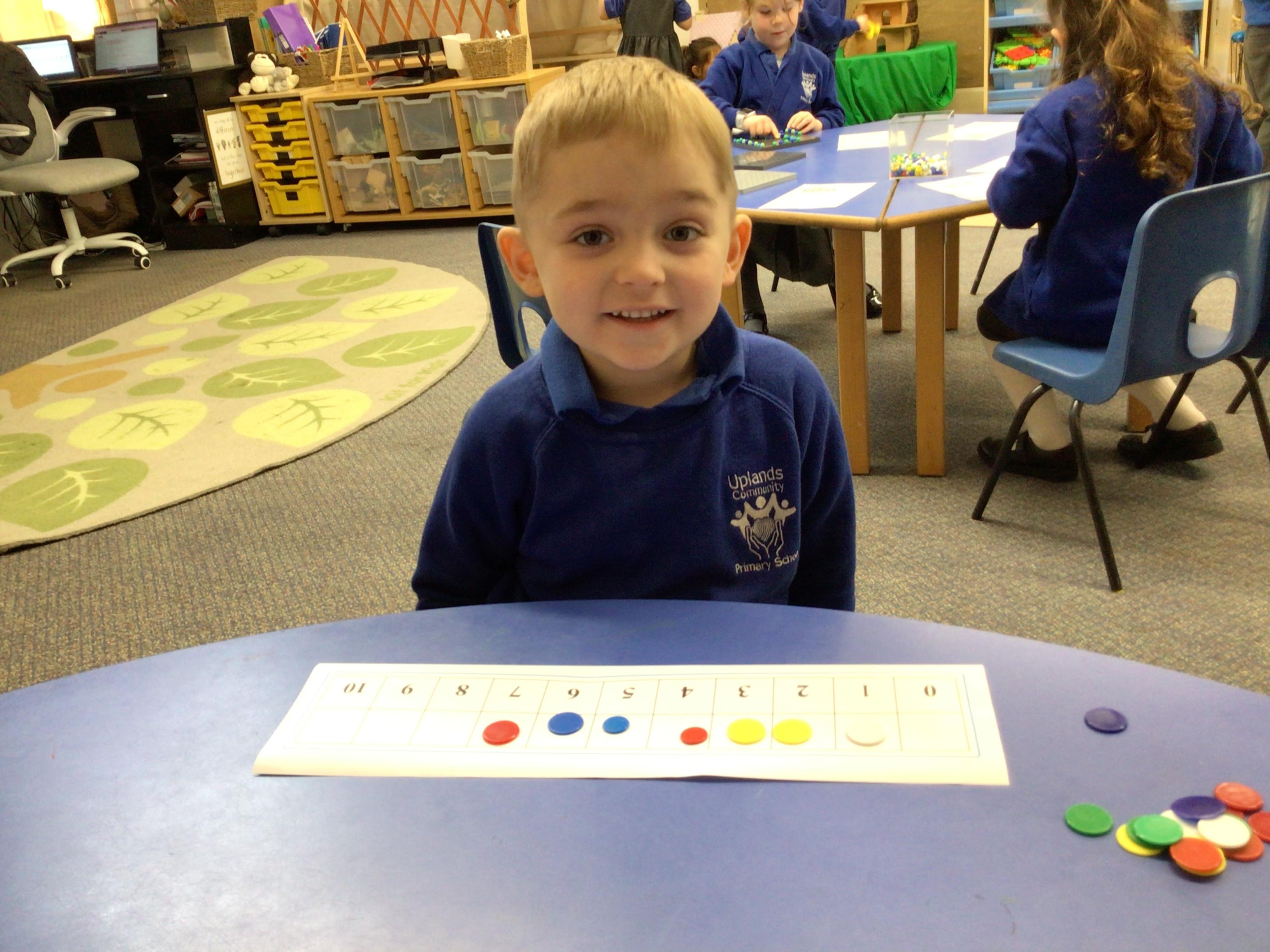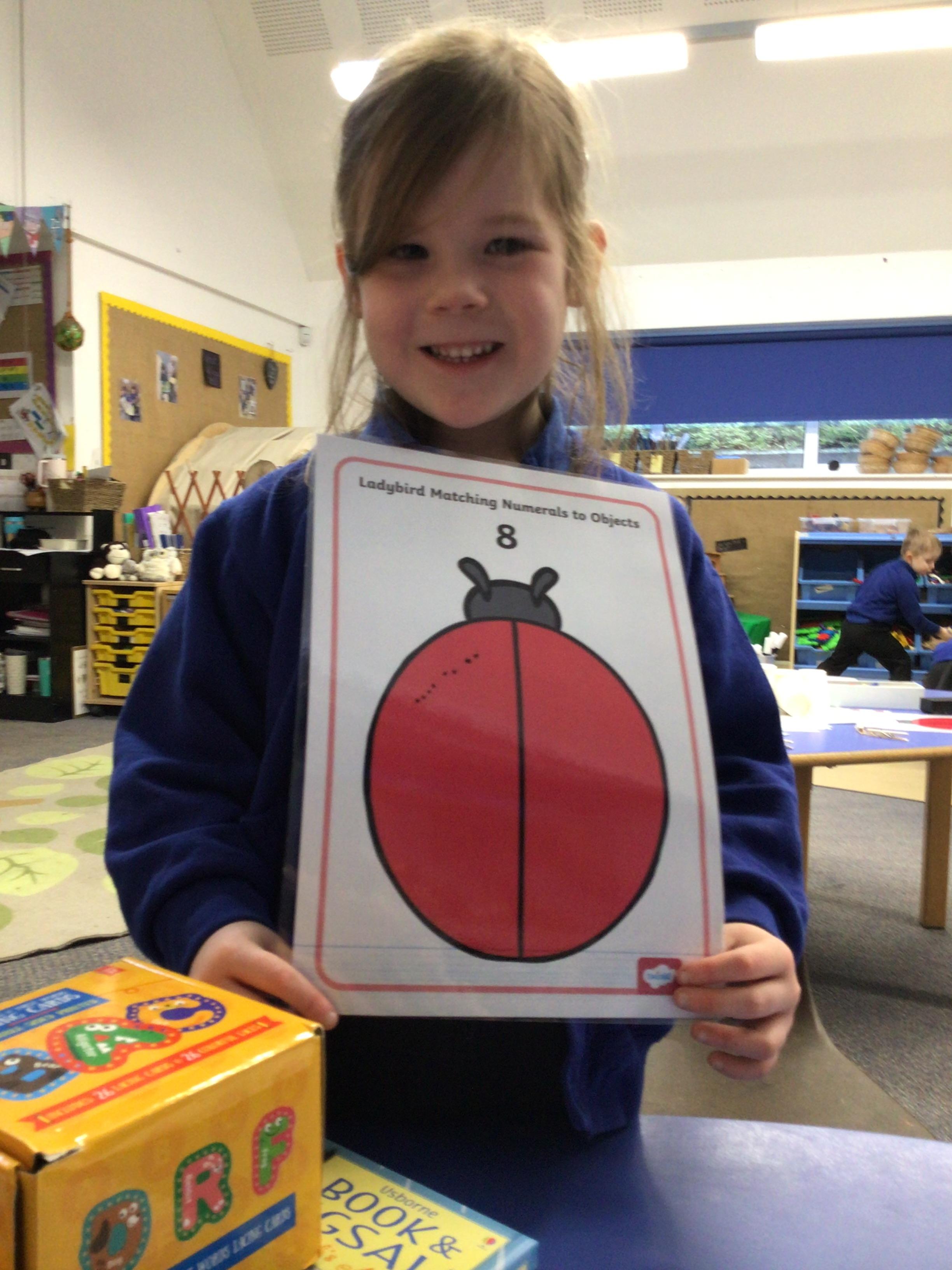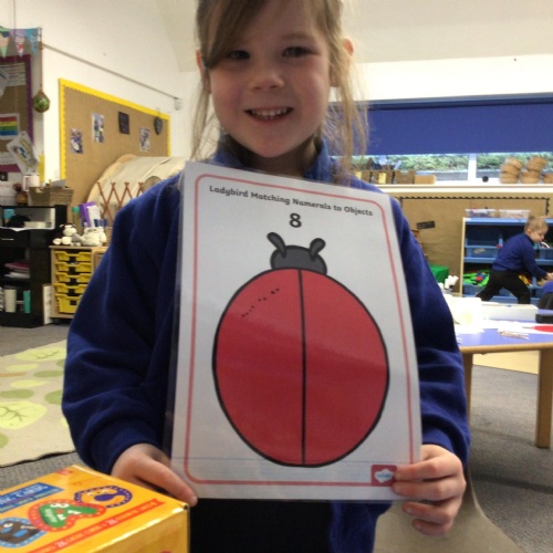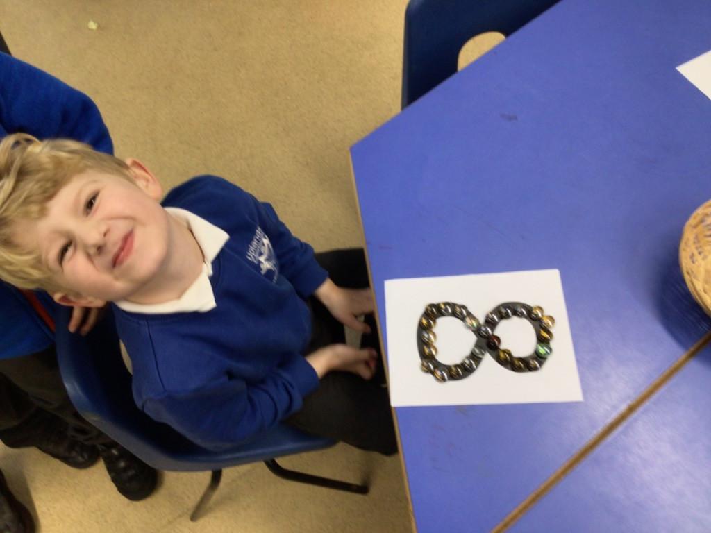 - We have been looking at the number 8 in Maths and counting objects onto a number track.