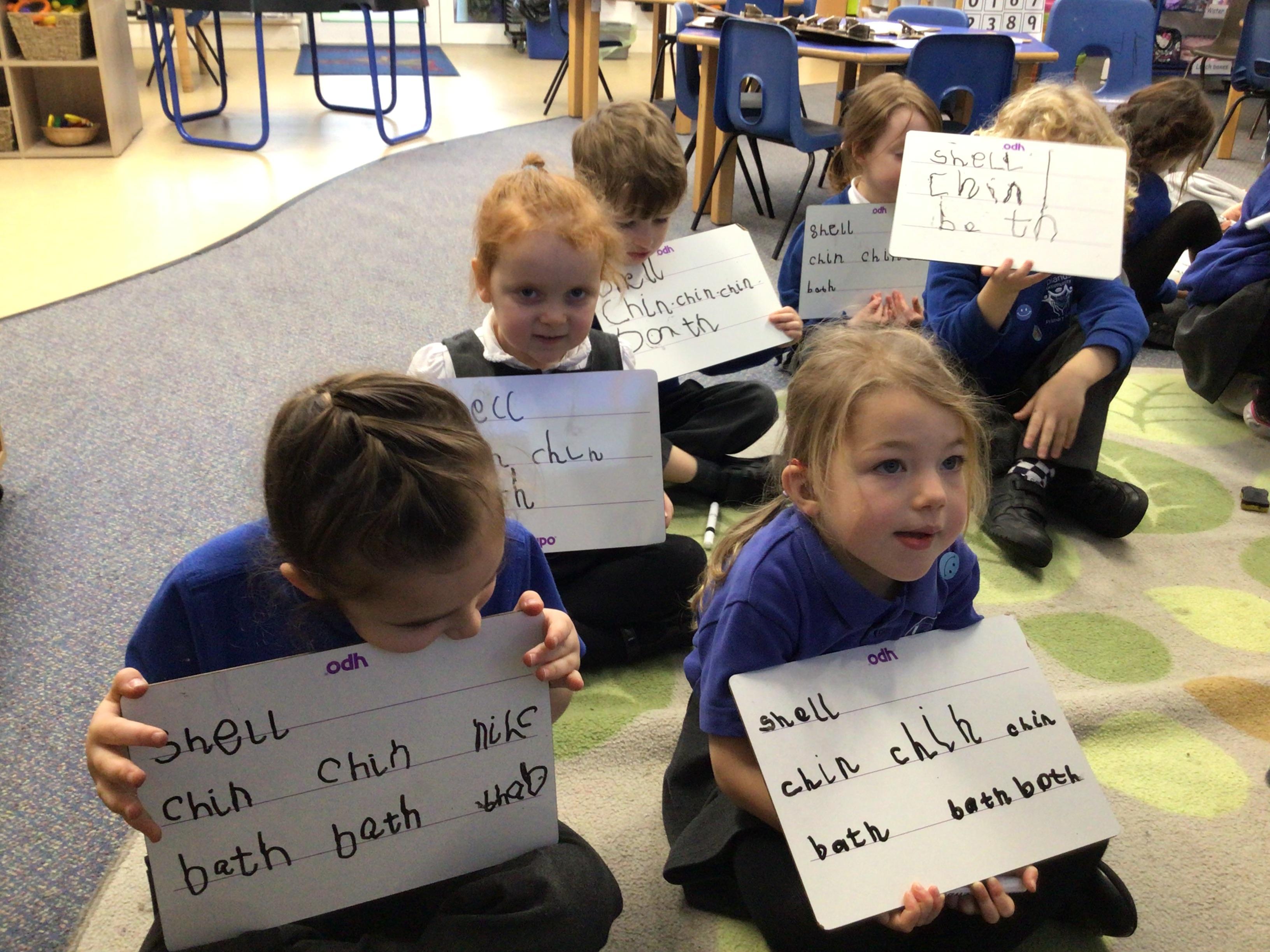- Lots of recapping our sh, ch, th, ai and ee sounds this week in phonics.