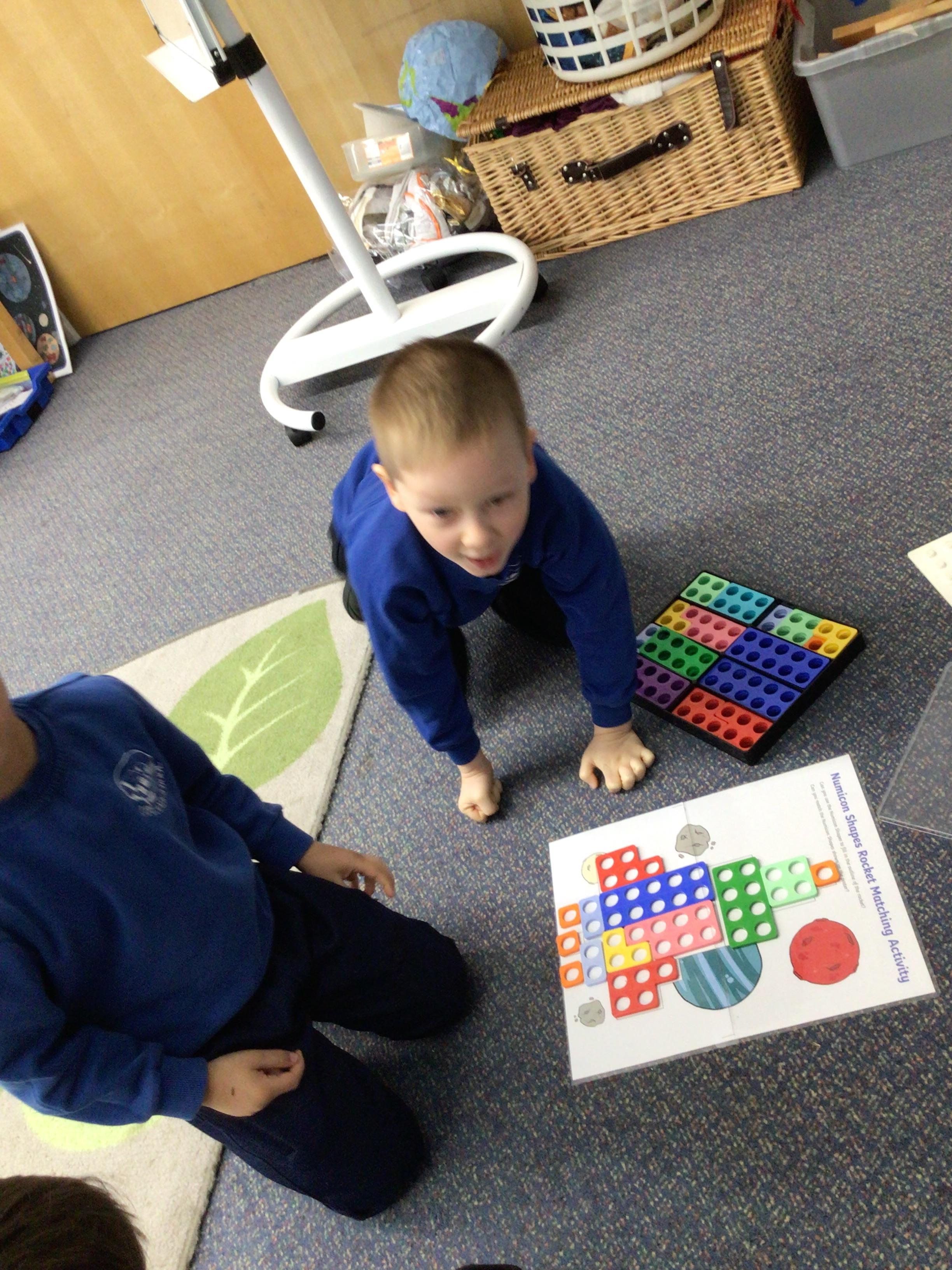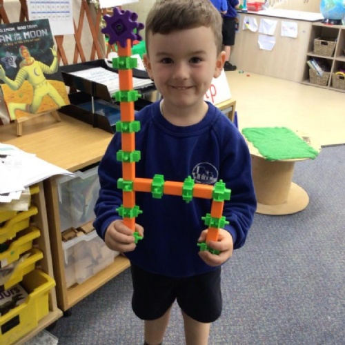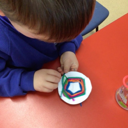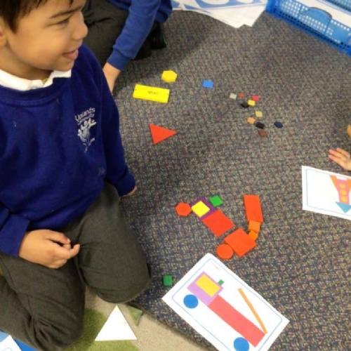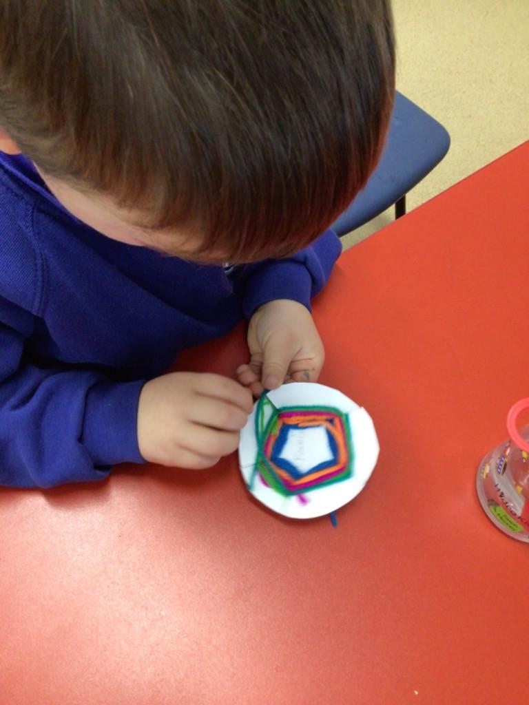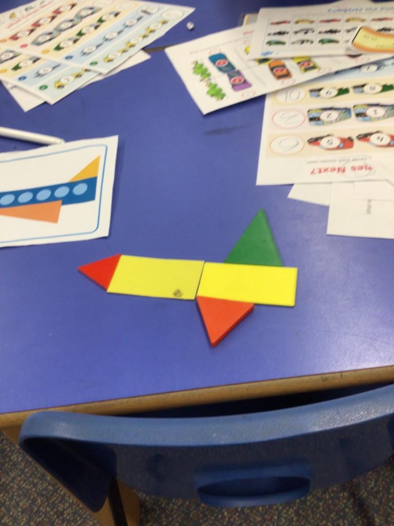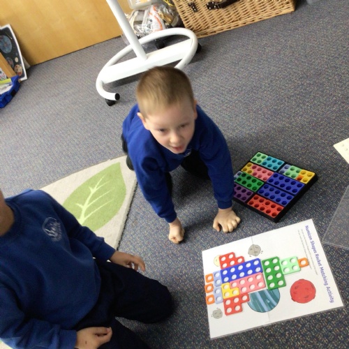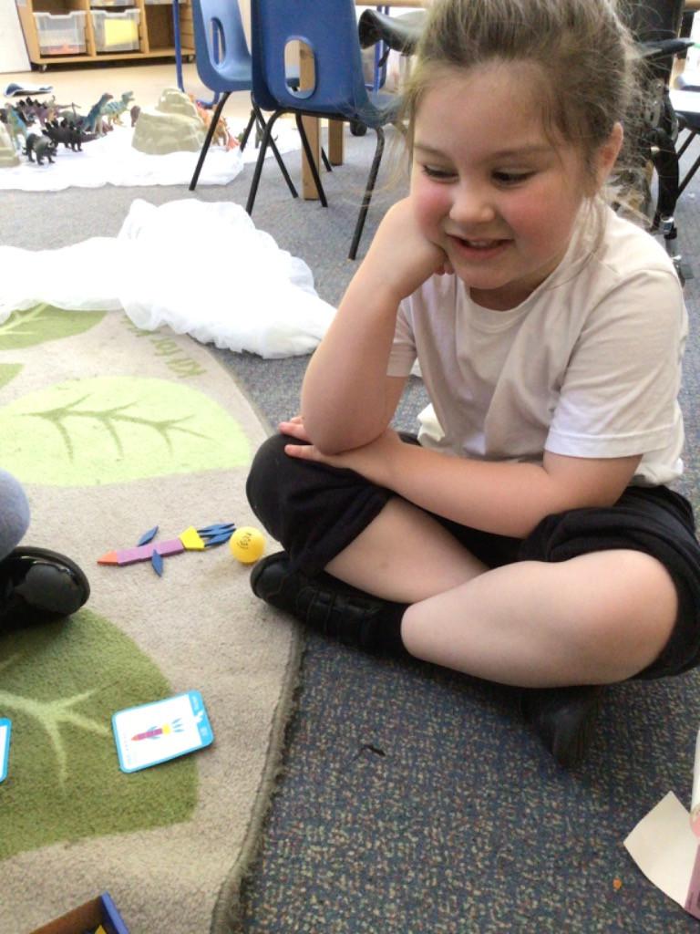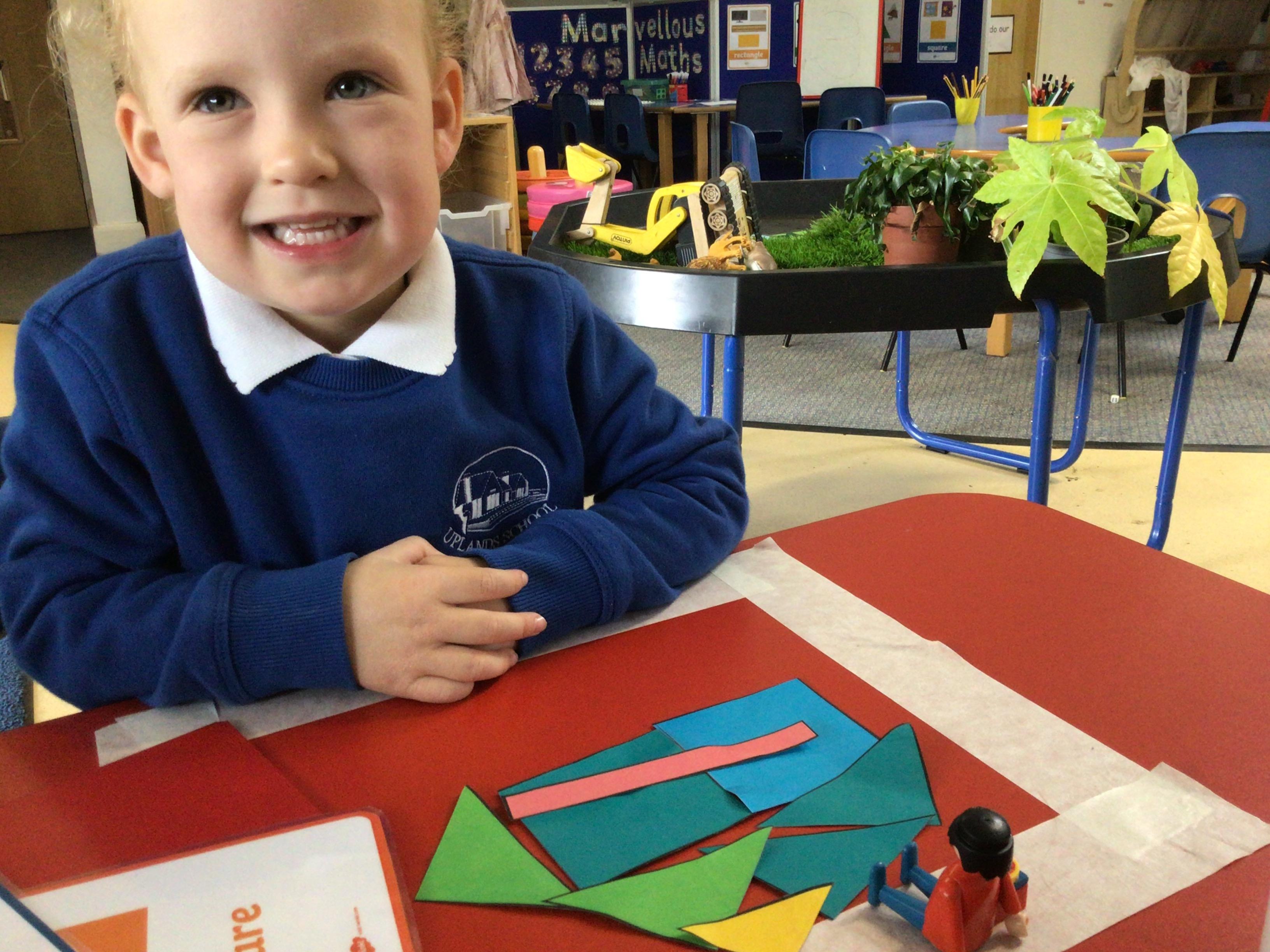 In maths we have been exploring 2D shape. We have been able to talk about different shapes using the words 'straight, curved and sides'. We have also really enjoyed playing with the shapes and exploring their properties.