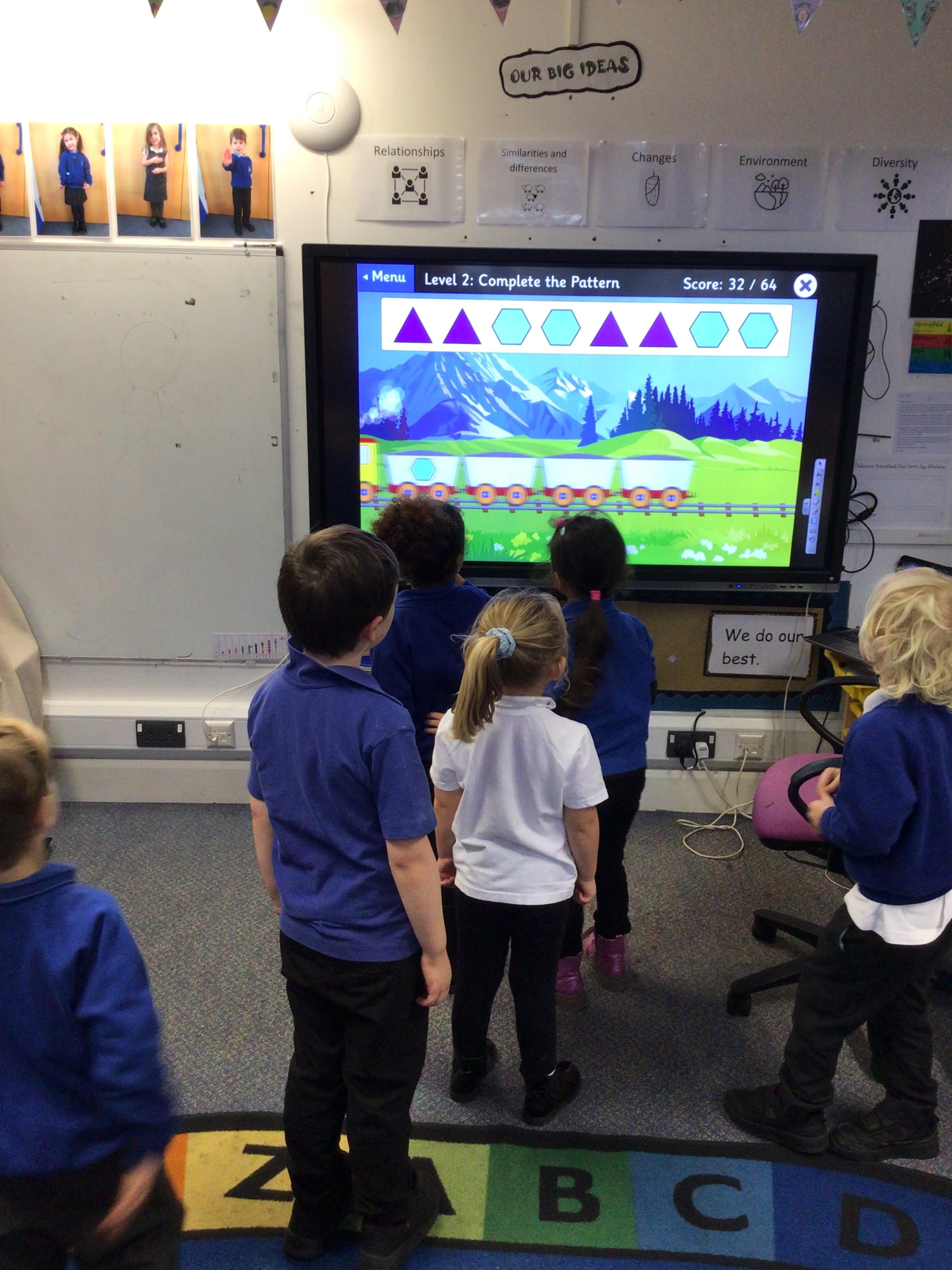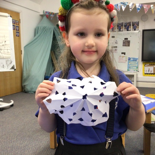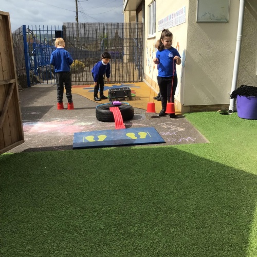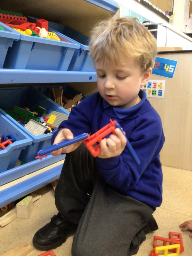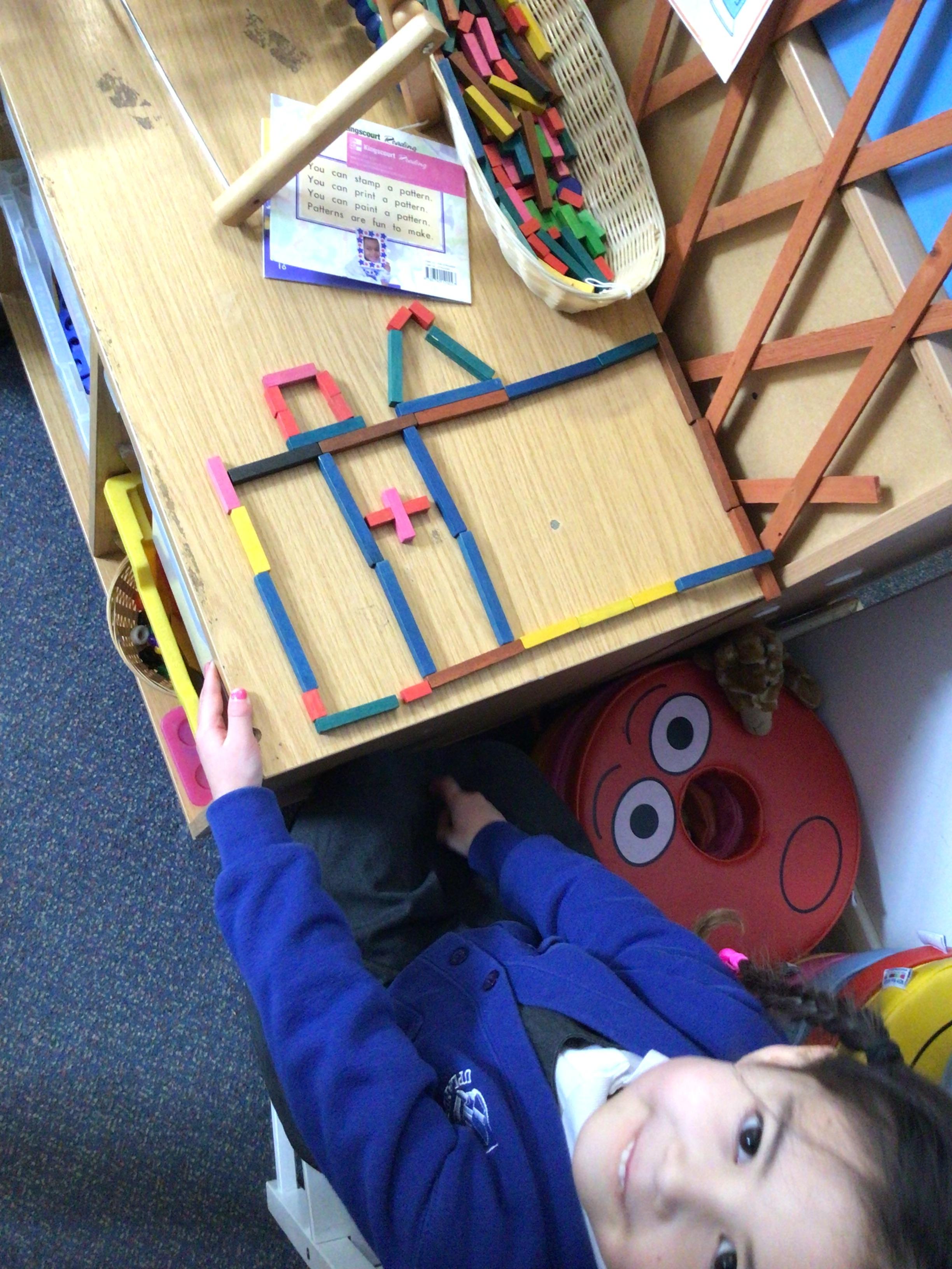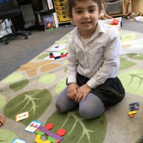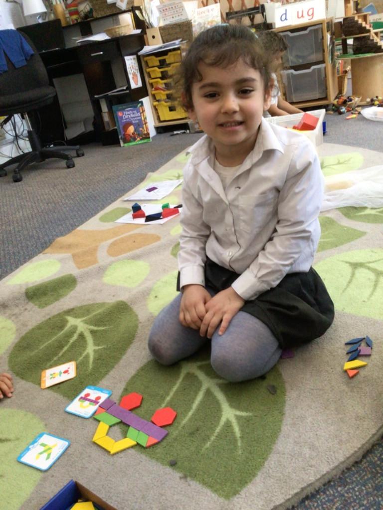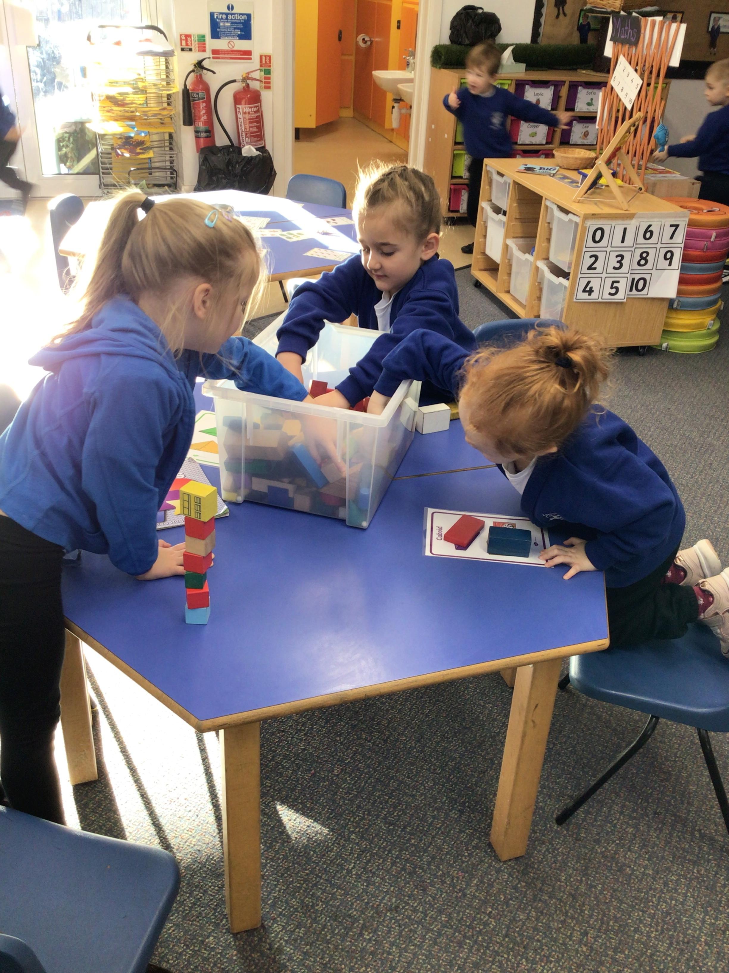In maths we have been exploring 2D shape. We have been able to talk about different shapes using the words 'straight, curved and sides'. We have also really enjoyed playing with the shapes and exploring their properties.