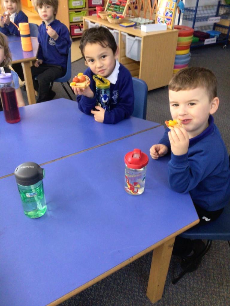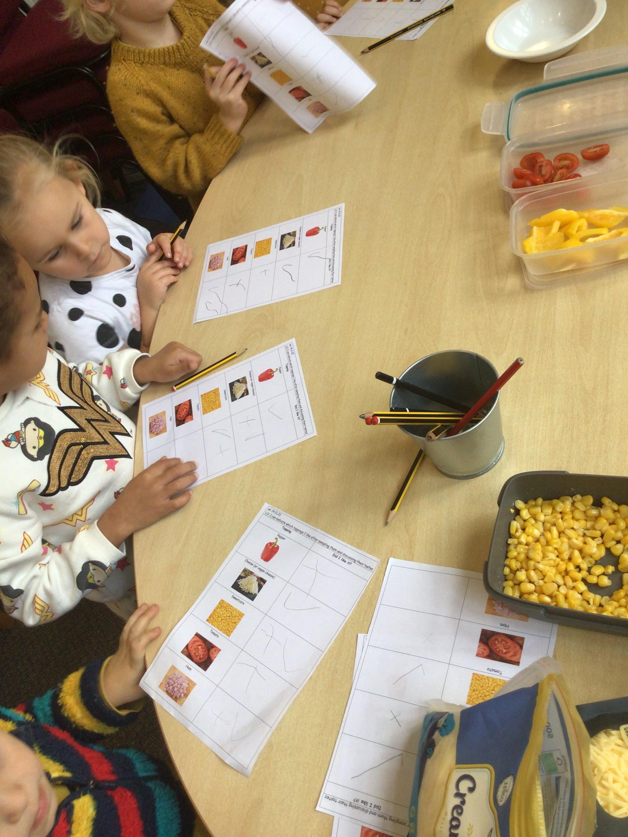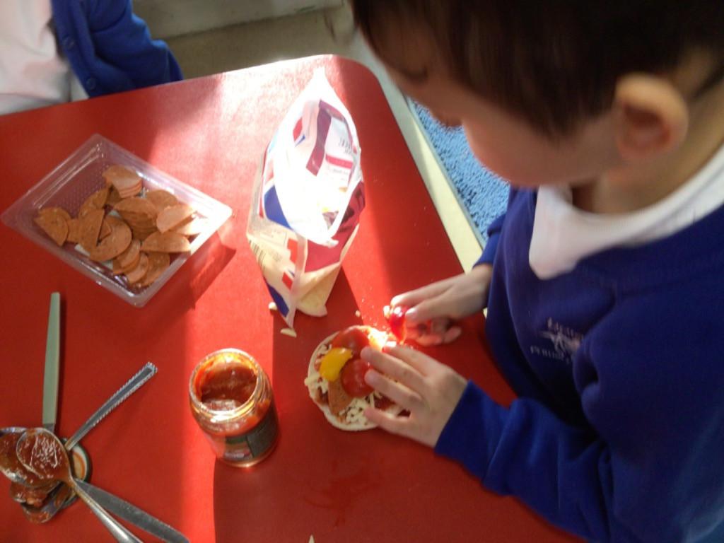 We started off by tasting the different toppings that could be added to a pizza and then designed our own pizzas.