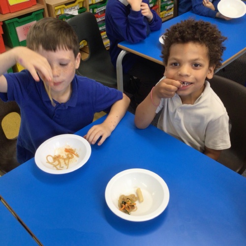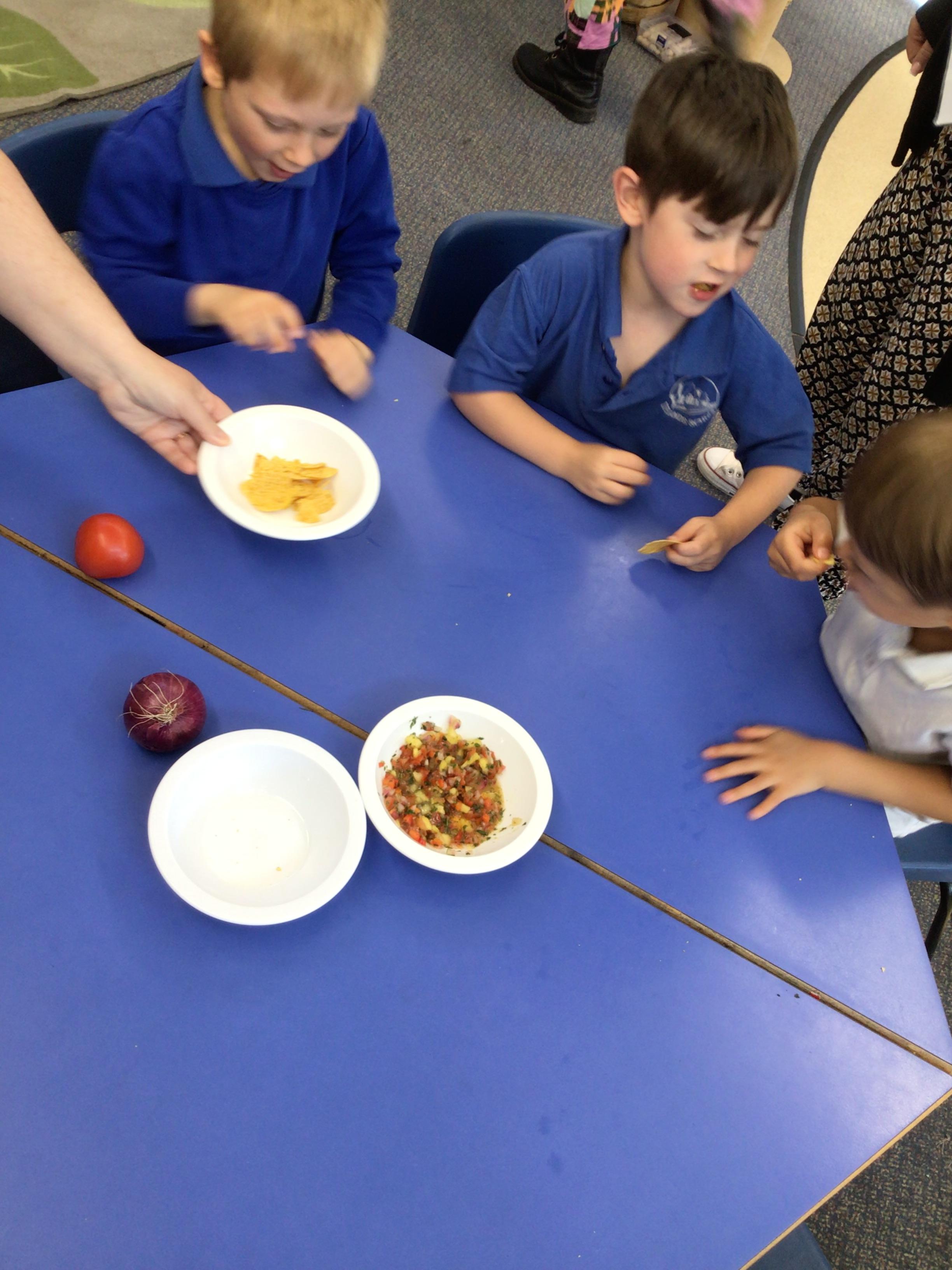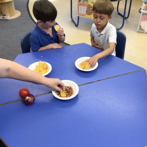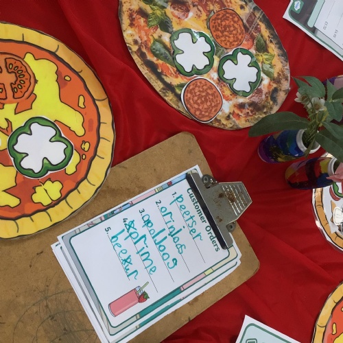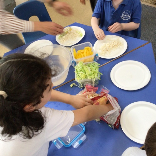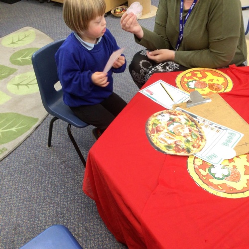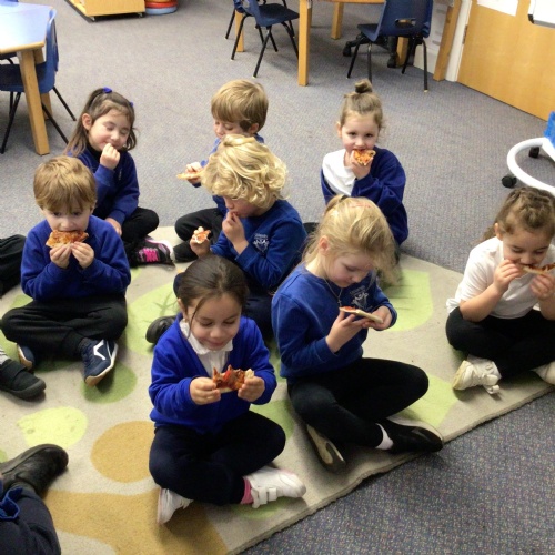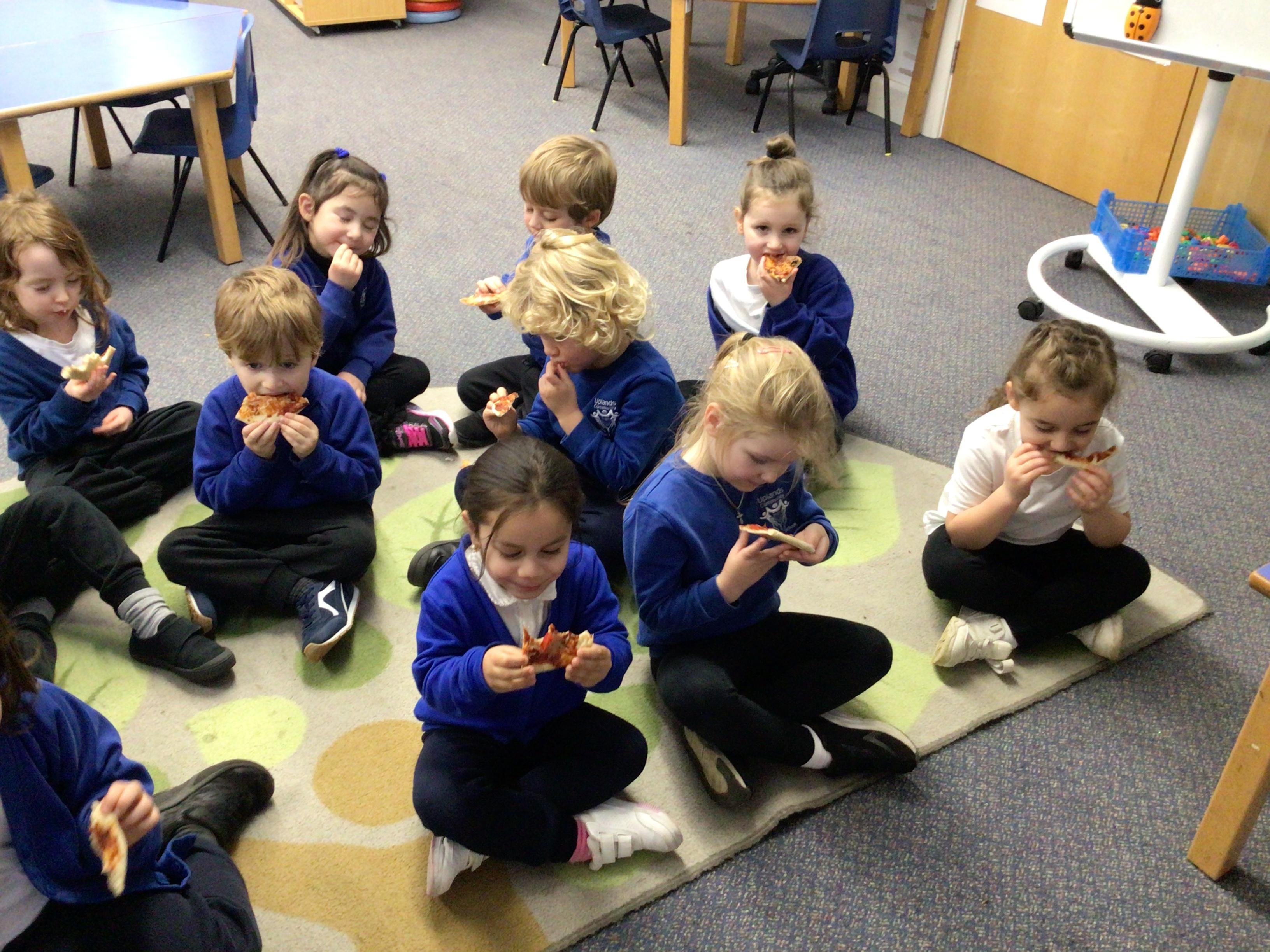We started off by tasting the different toppings that could be added to a pizza and then designed our own pizzas.