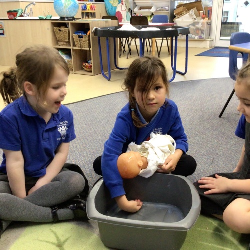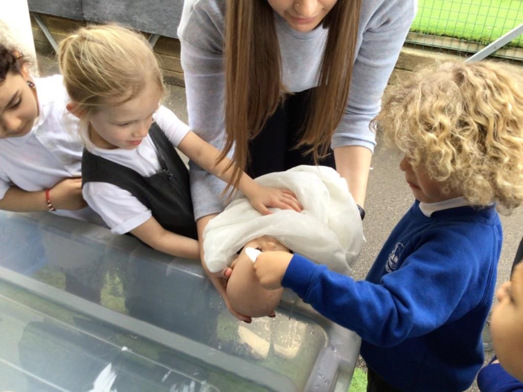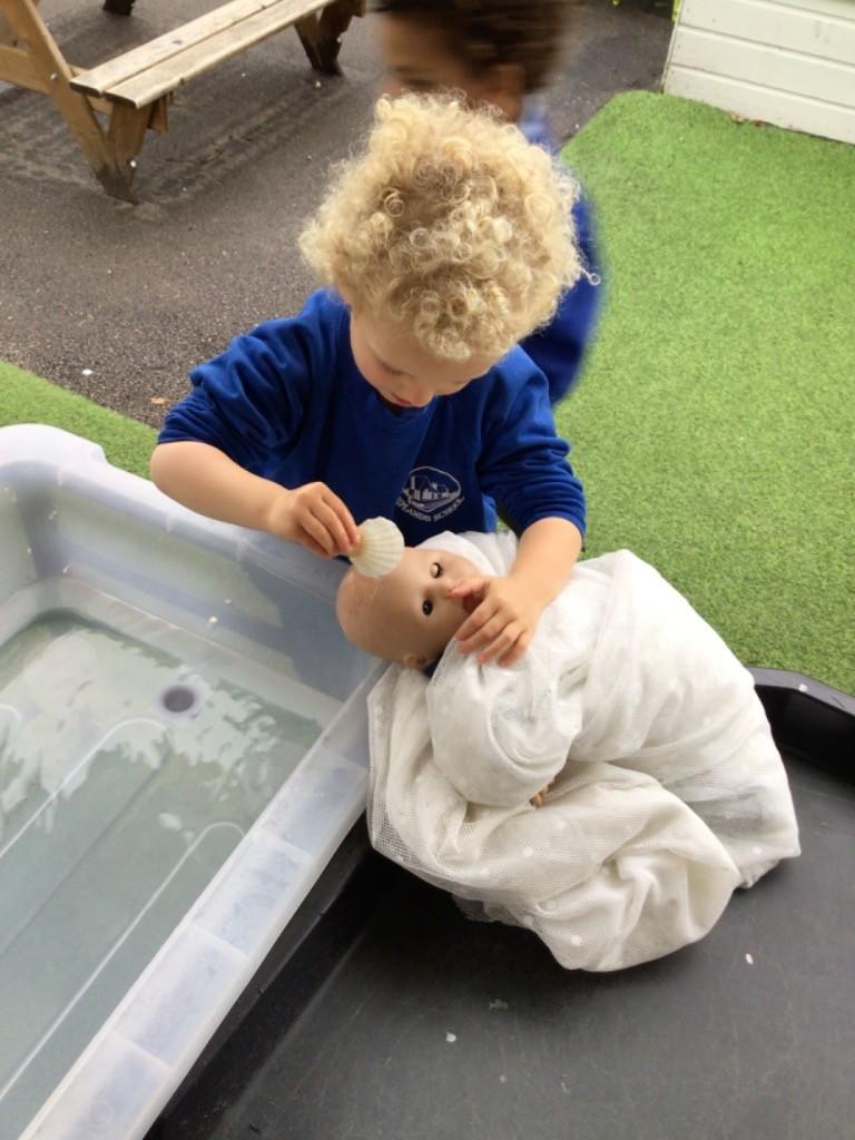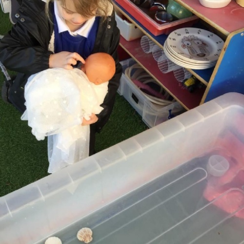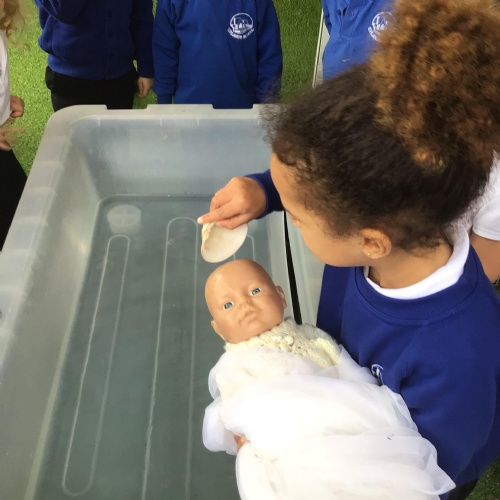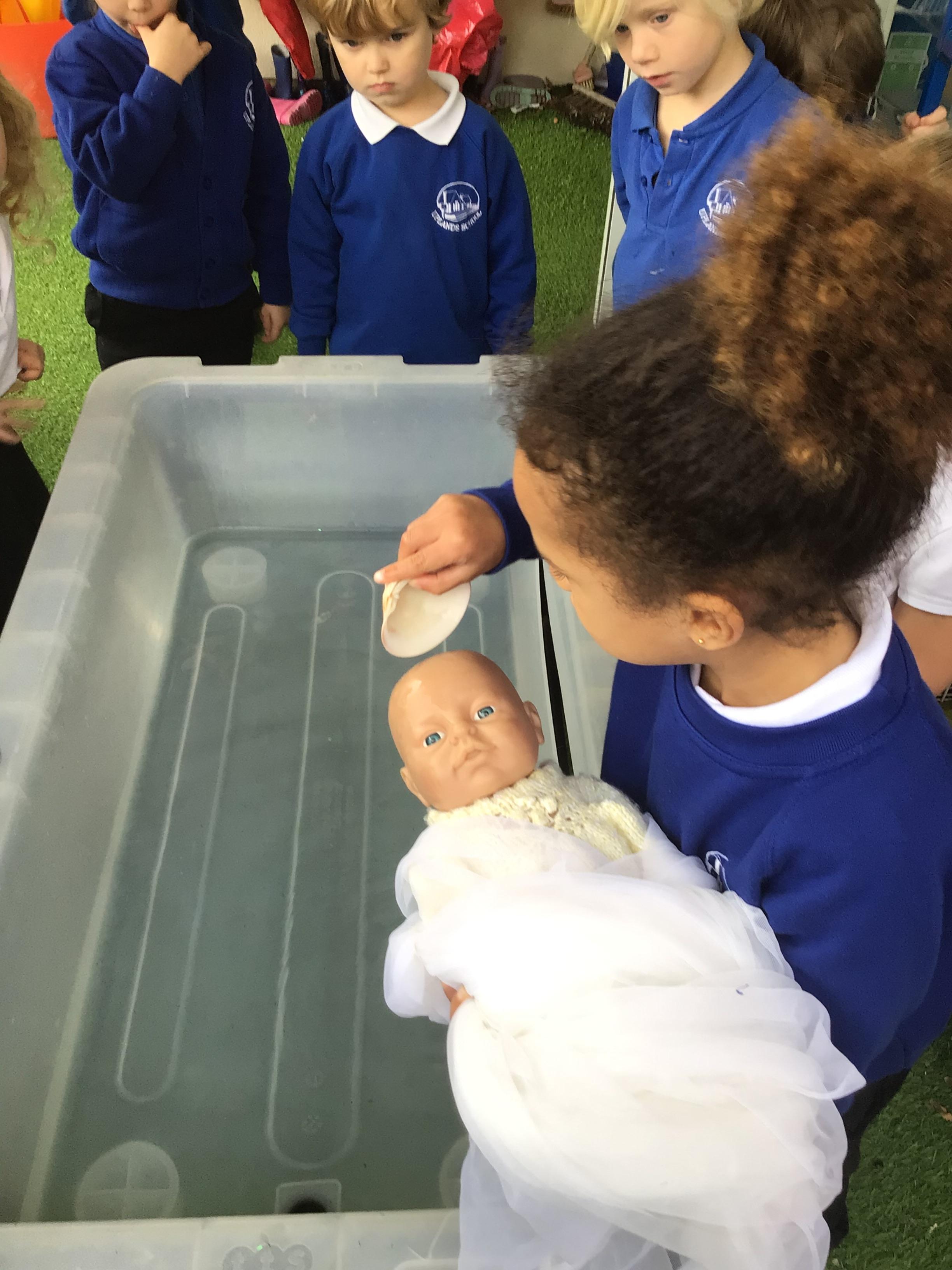 - In RE we looked at baptism, the children had an opportunity to baptise a baby in the classroom .