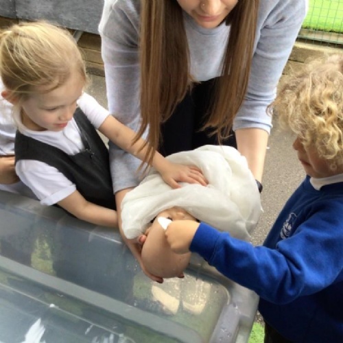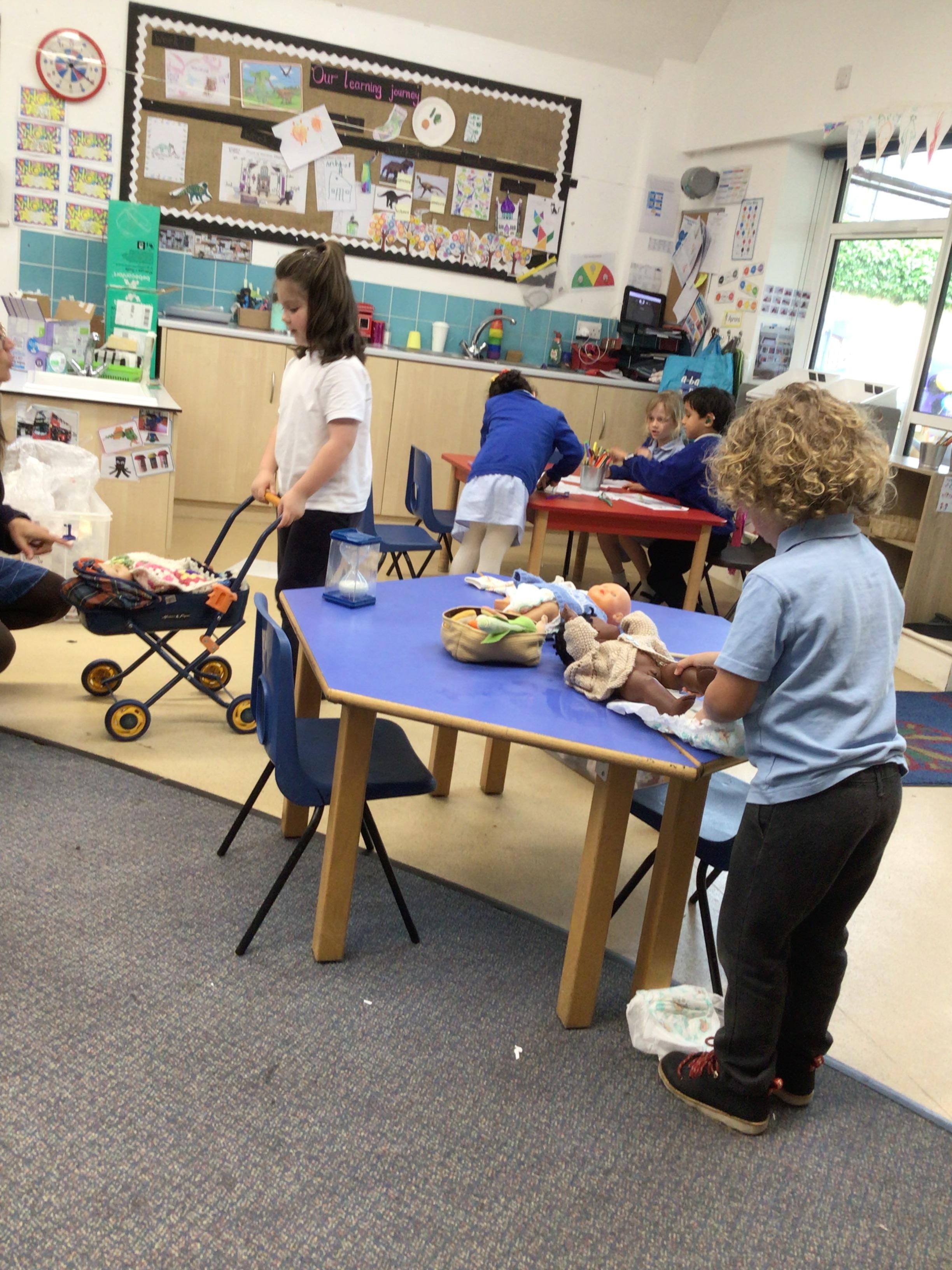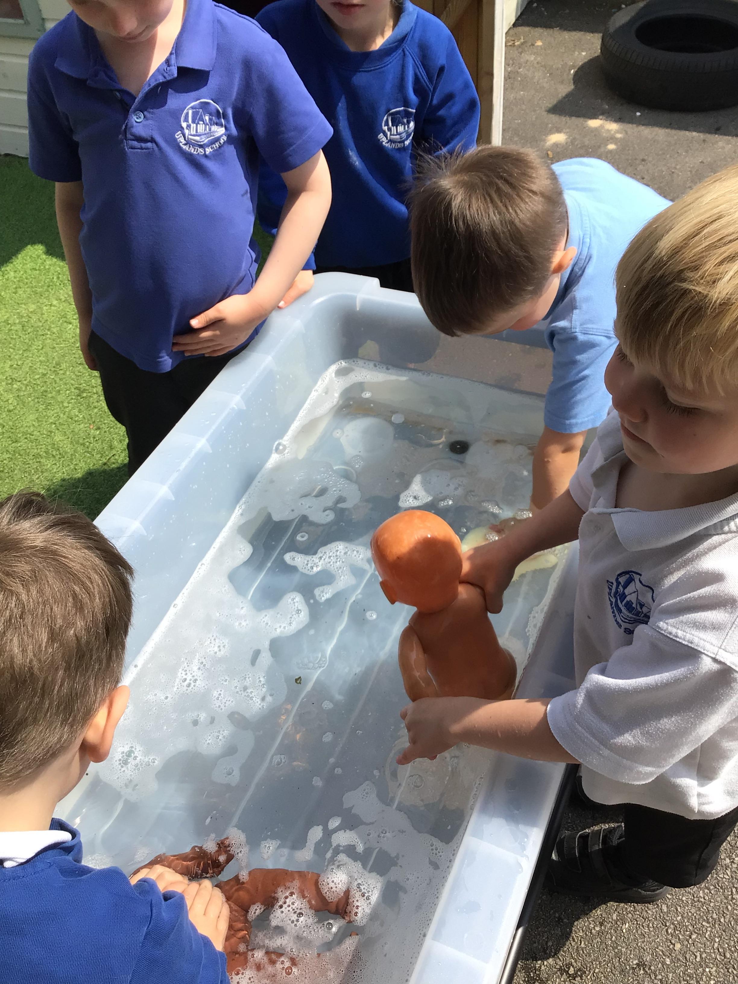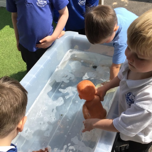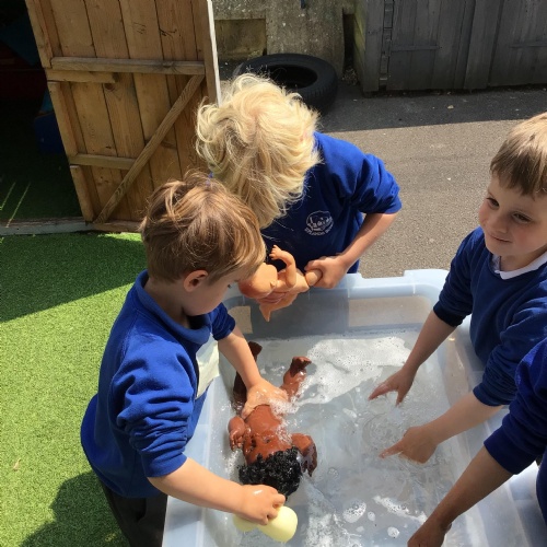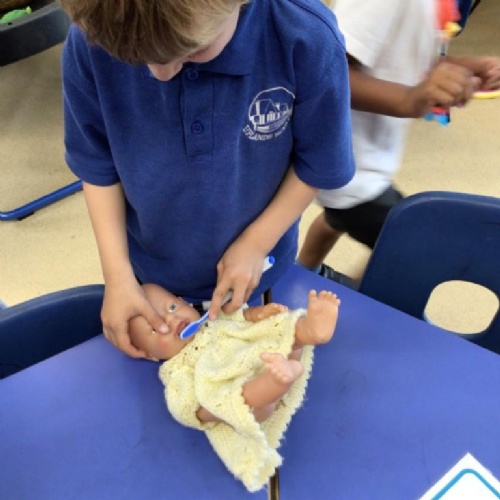 - In RE we looked at baptism, the children had an opportunity to baptise a baby in the classroom .