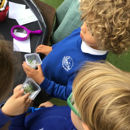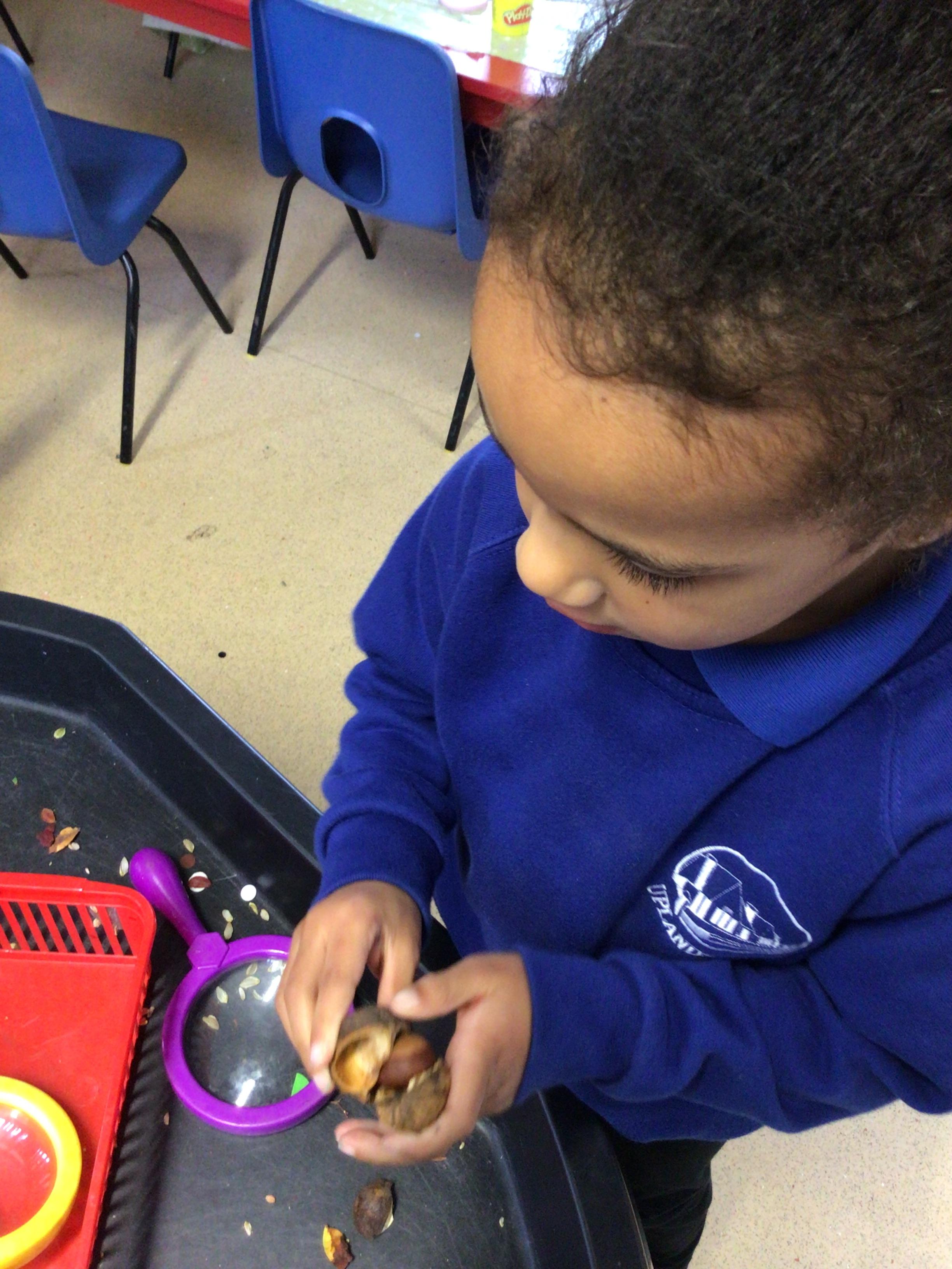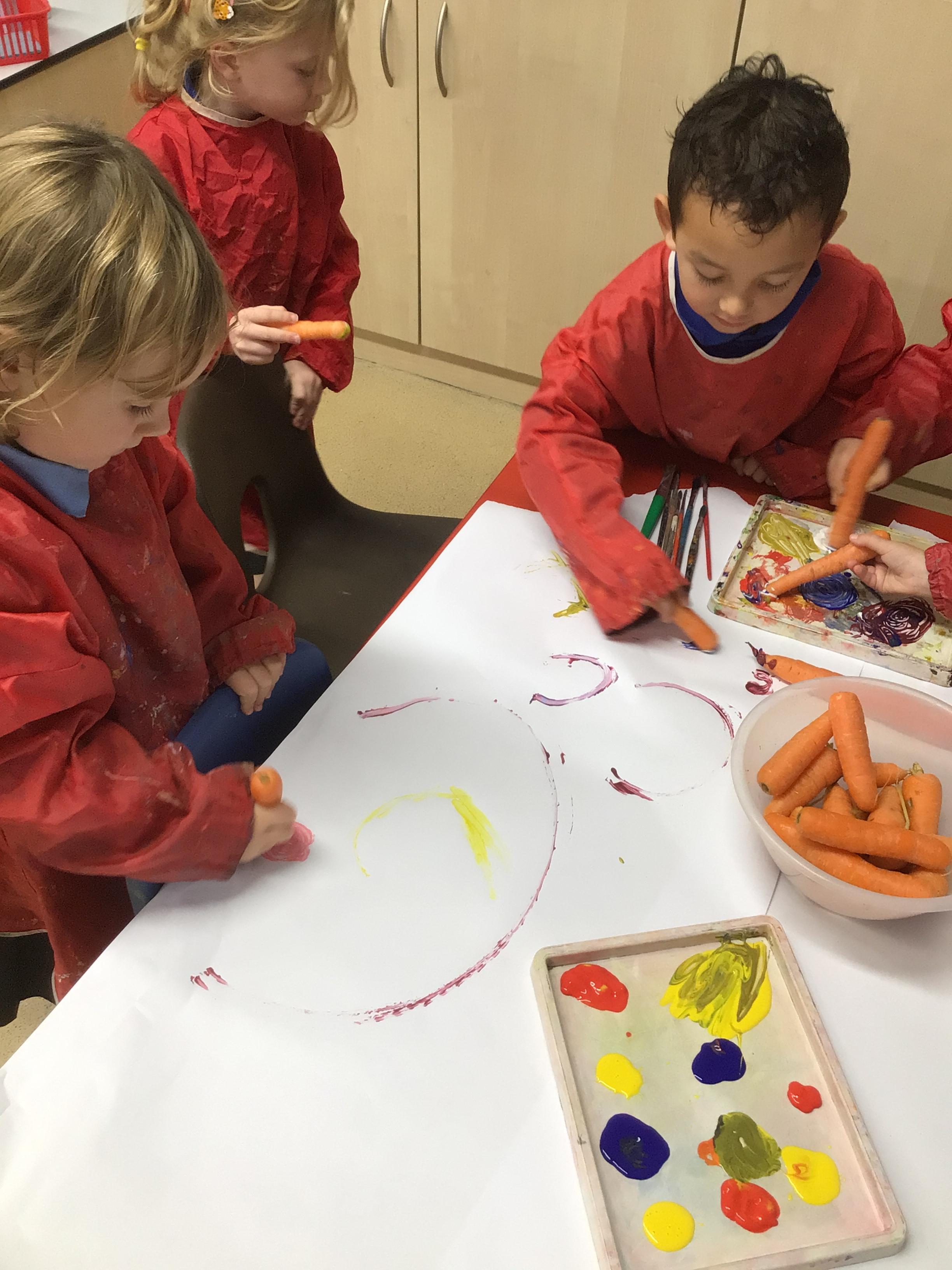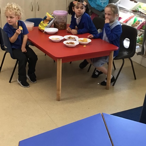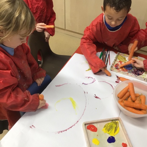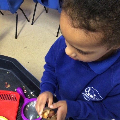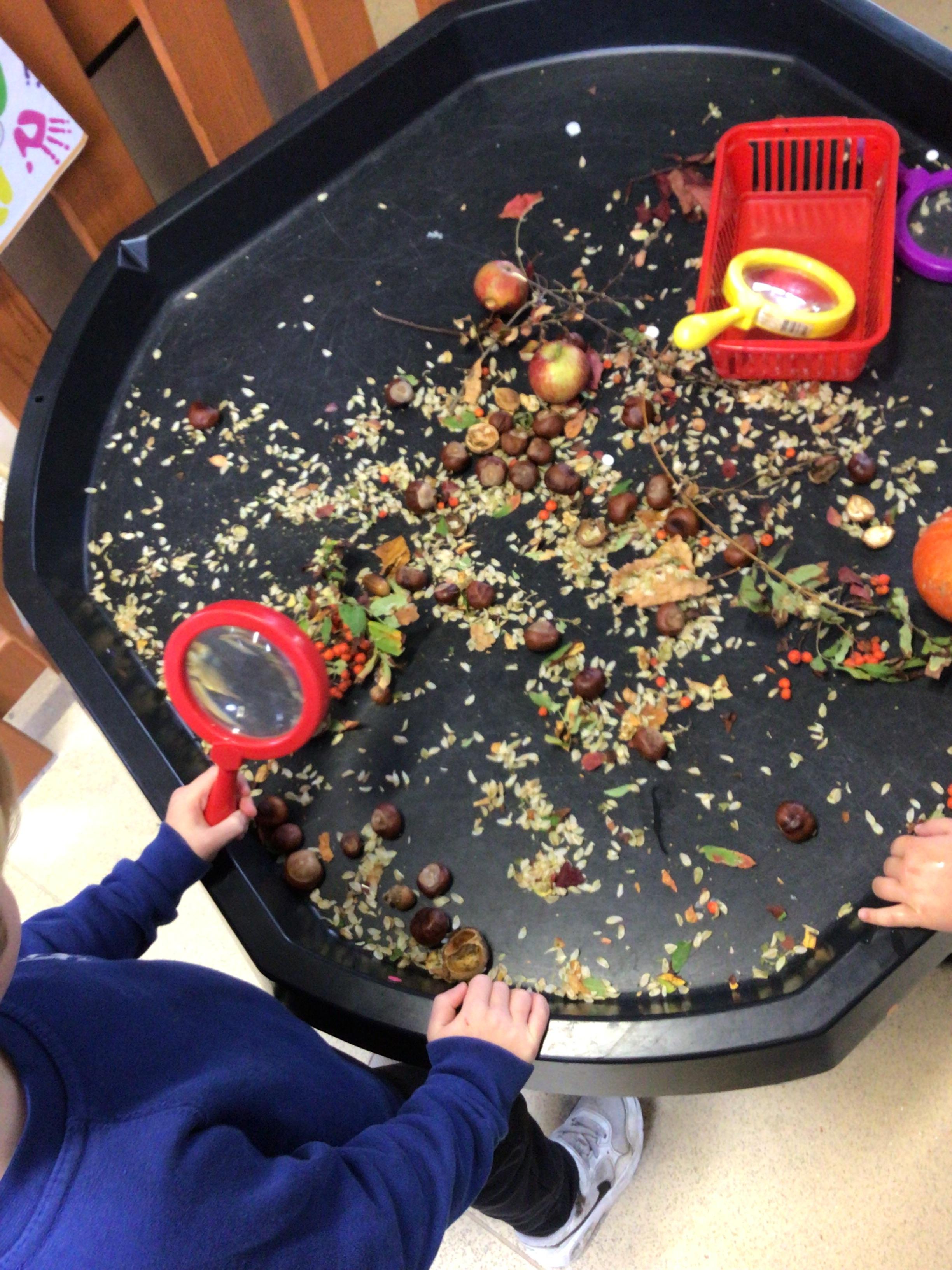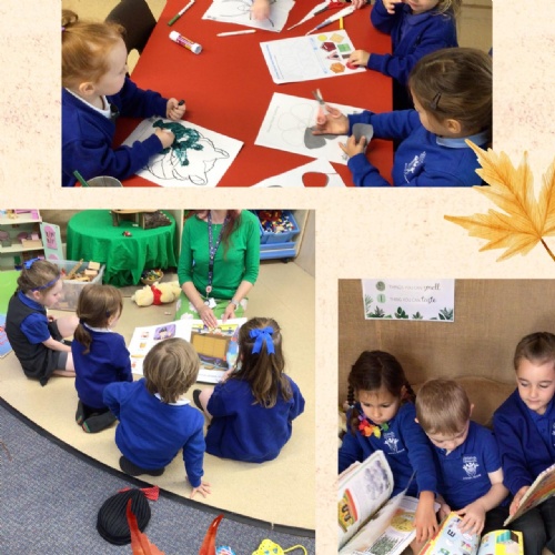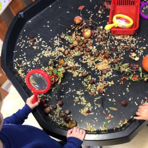 Merlins have enjoyed learning about the season 'Autumn' this week! We have explored some of the autumnal changes and signs we may see in the world around us. We have discussed 'harvest' and learnt about the journey of how some fruit and vegetables go from being a seed to ending up in the shops ready for us to buy!