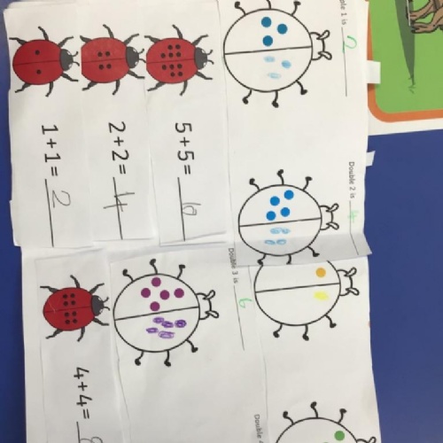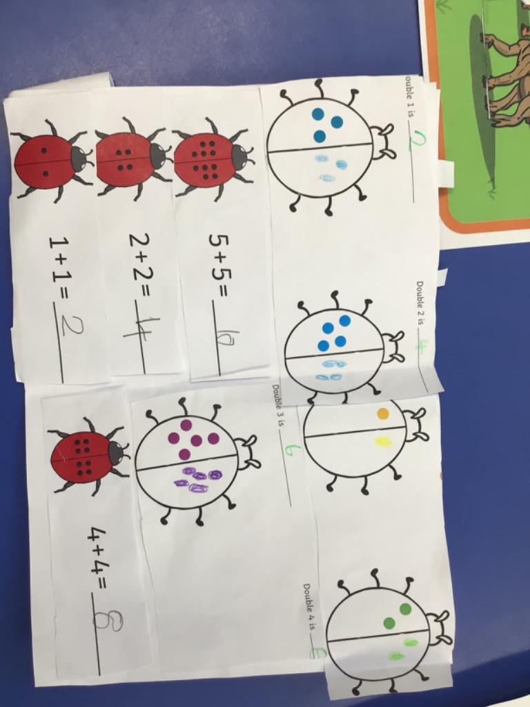 In maths we have been doubling numbers. We all understand that doubling means adding the same number again. We have used numicon to help us understand this and some of us now just know doubles mentally!