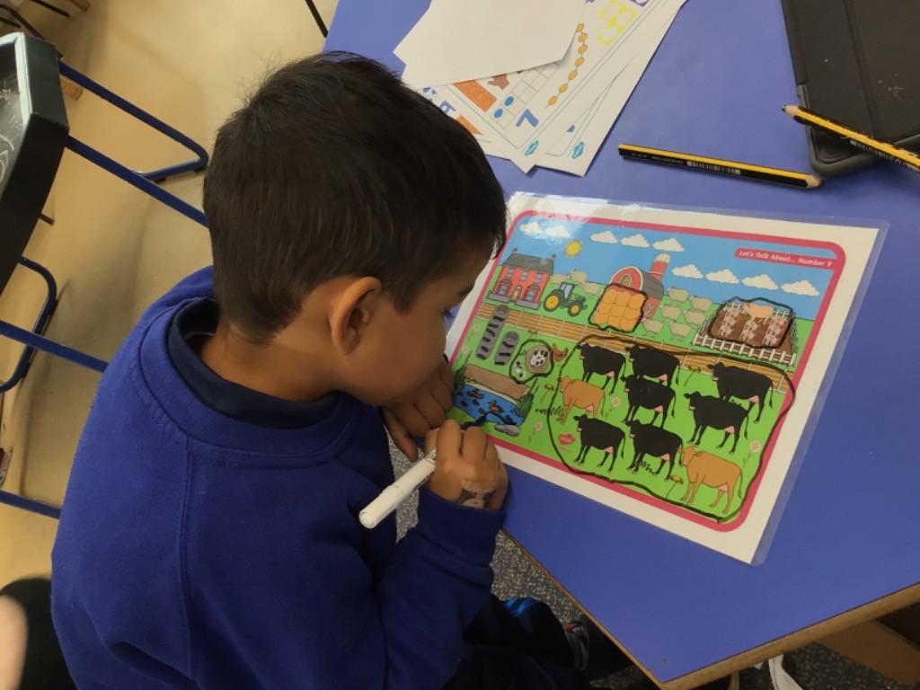 - In Maths we have been exploring up to the number 6. We have been looking at matching the numeral to amount.