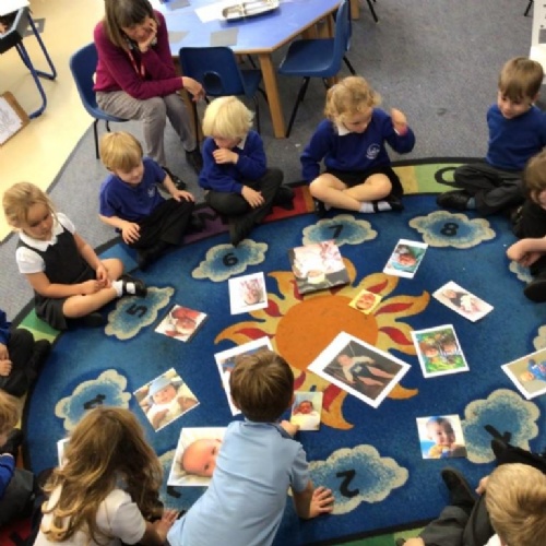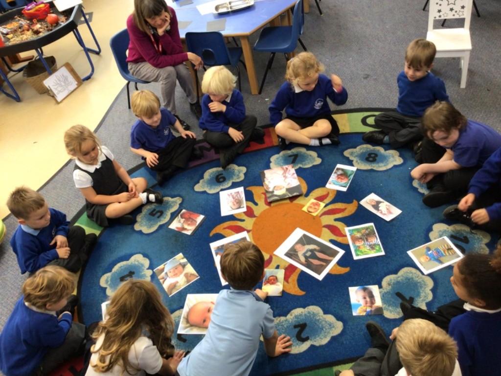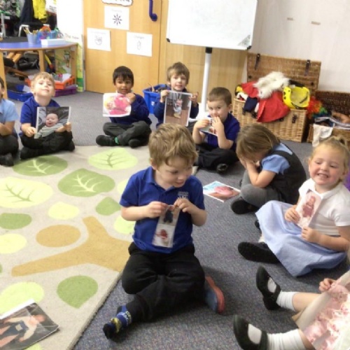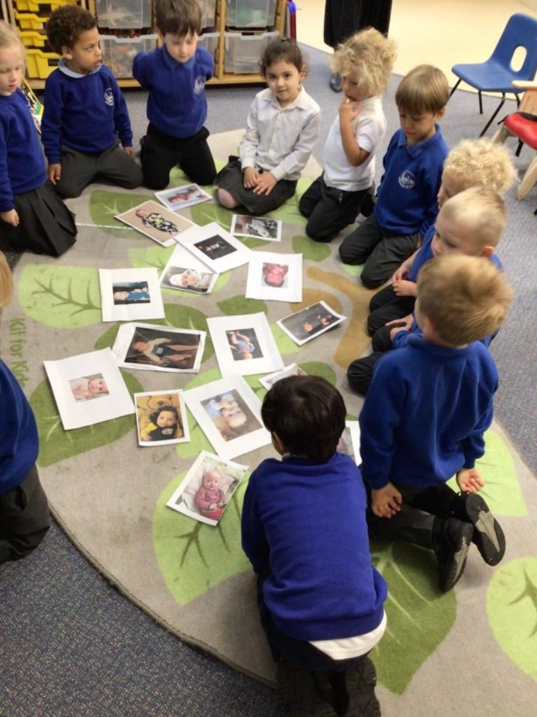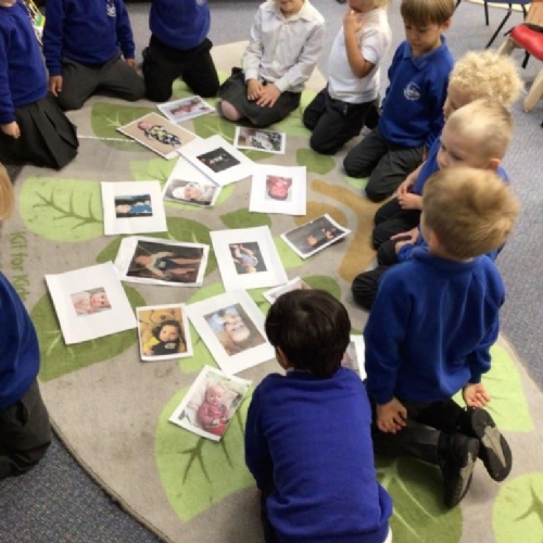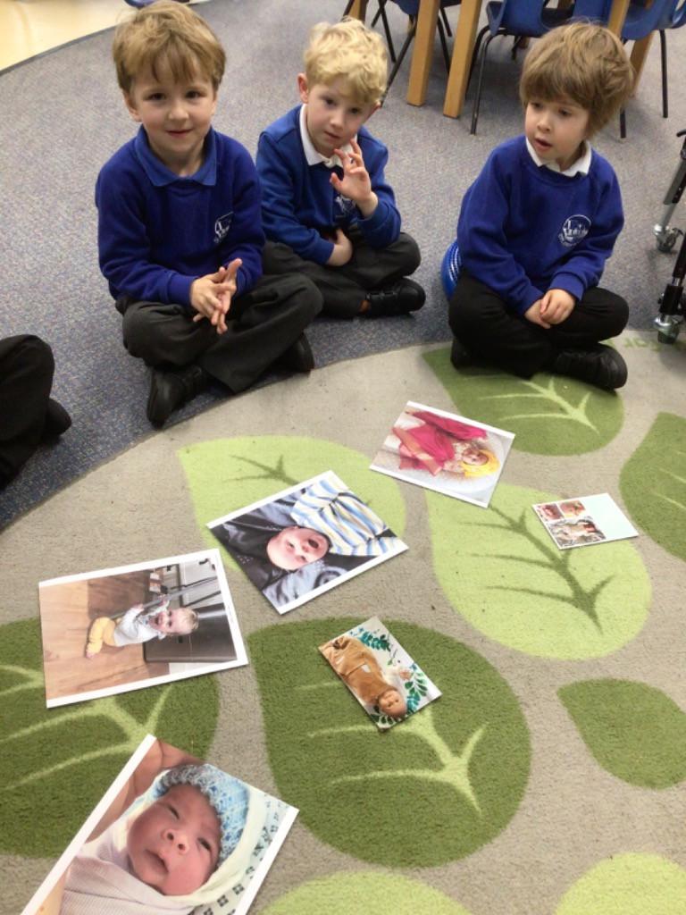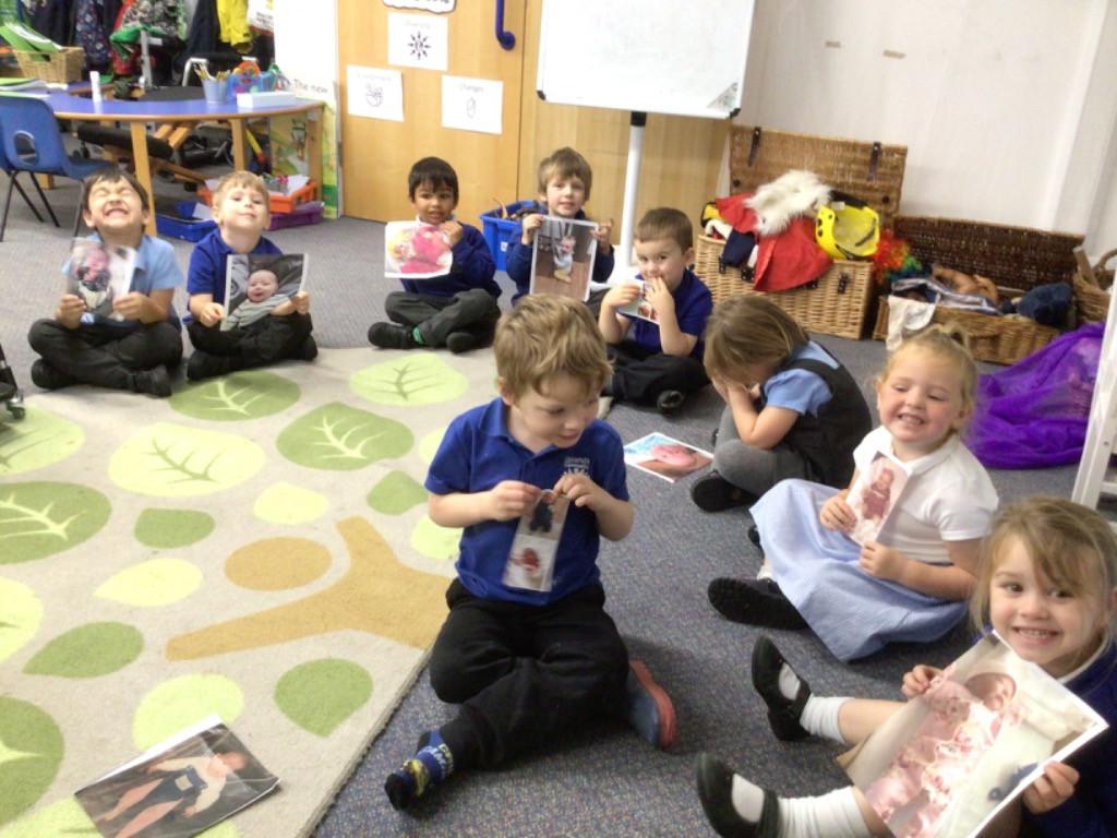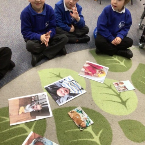 We also learnt about the ‘human life cycle’ and how changes happen to people over time, eg, developing from a baby, to toddler, to child, etc. We had a huge giggle looking at each others baby photos and some great comparisons about our similarities and differences were made!