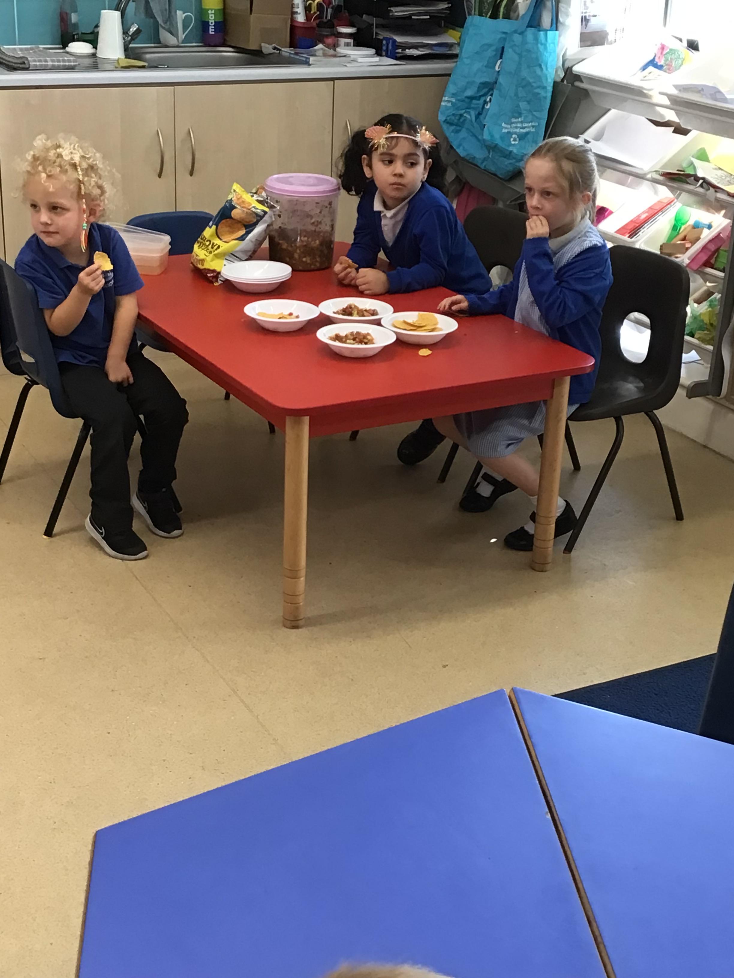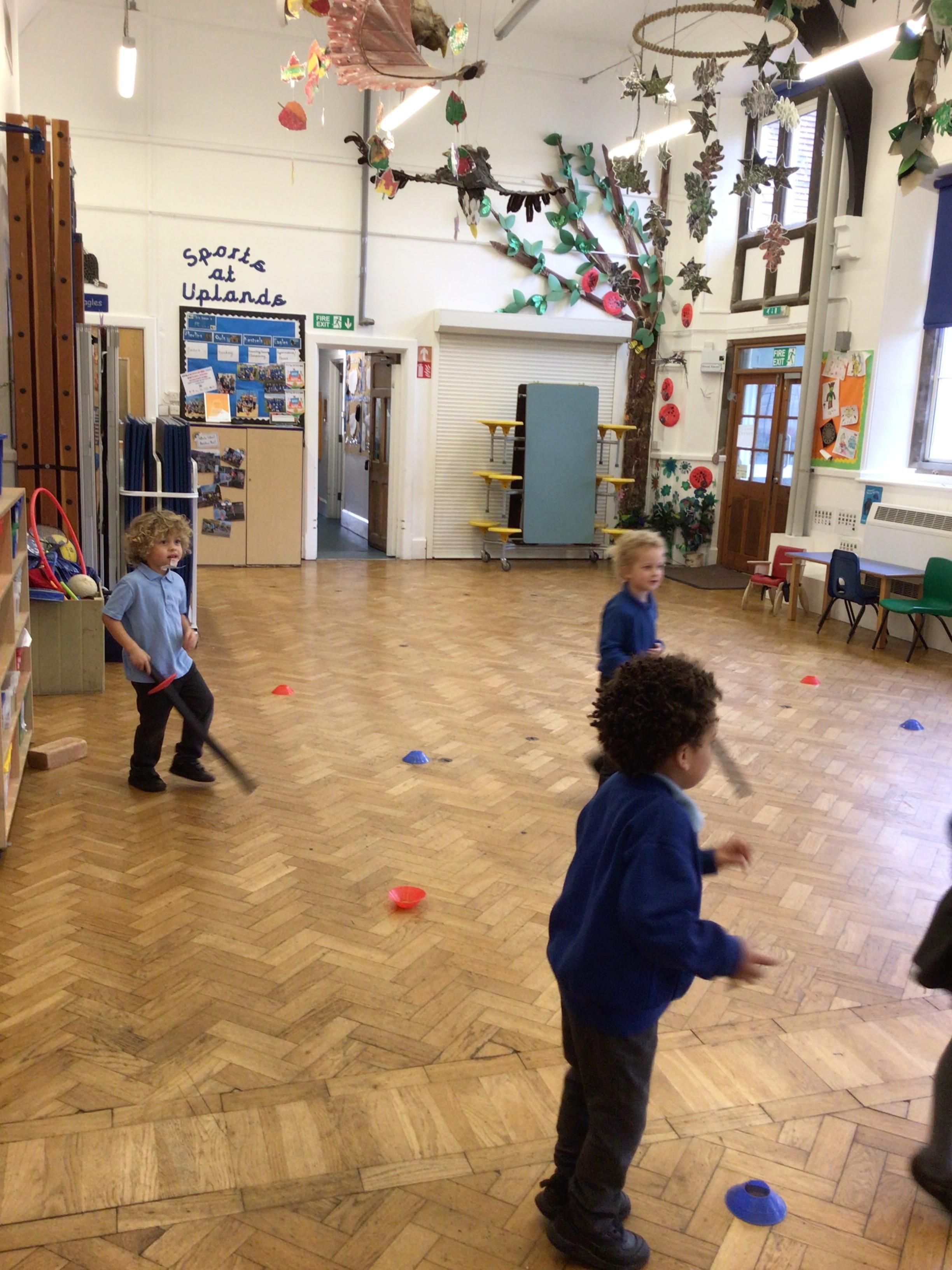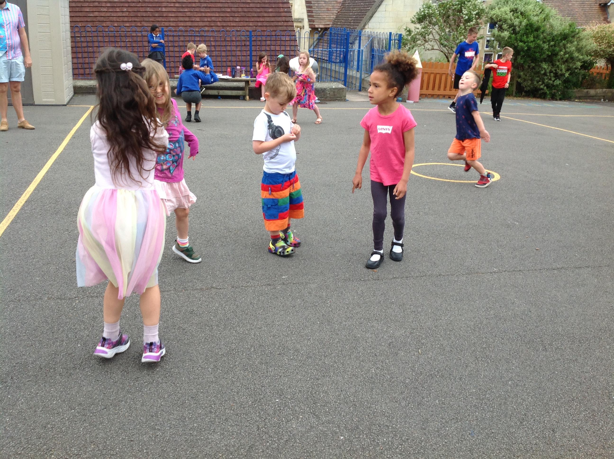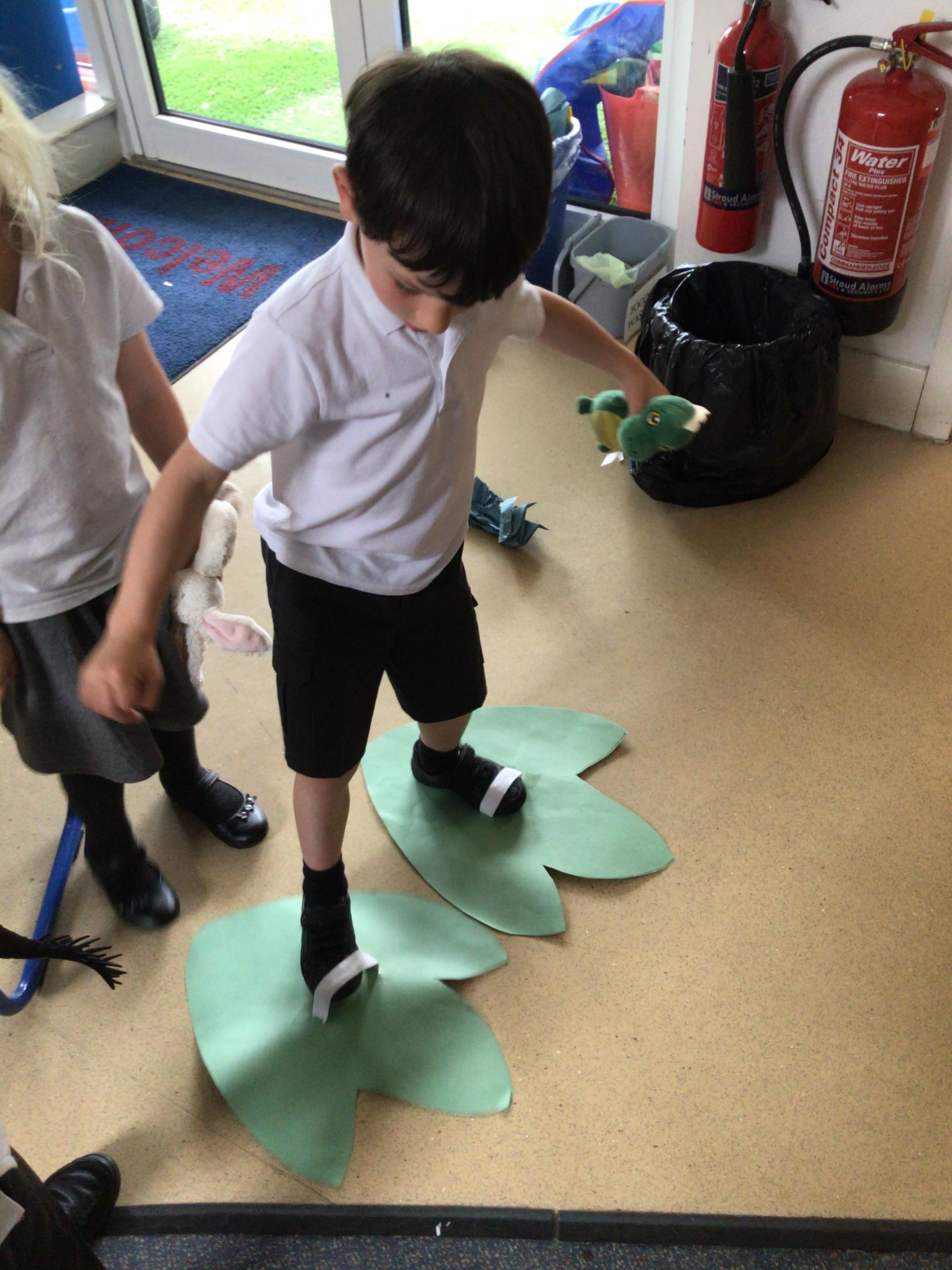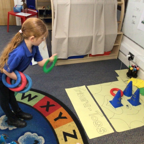 This week we have been reading the book 'Saturday Night at the Dinosaur Stomp'. It has inspired us to have our own 'stomp'. In preparation, we have written invitations to our own dinosaurs, made biscuits and party hats.Today we have held the 'stomp'. We have drunk swamp juice, eaten biscuits and played musical dinosaurs. We had some brilliant games to play ( thank you Mrs Day-Lewis), including a 'Tricera-Toss'.