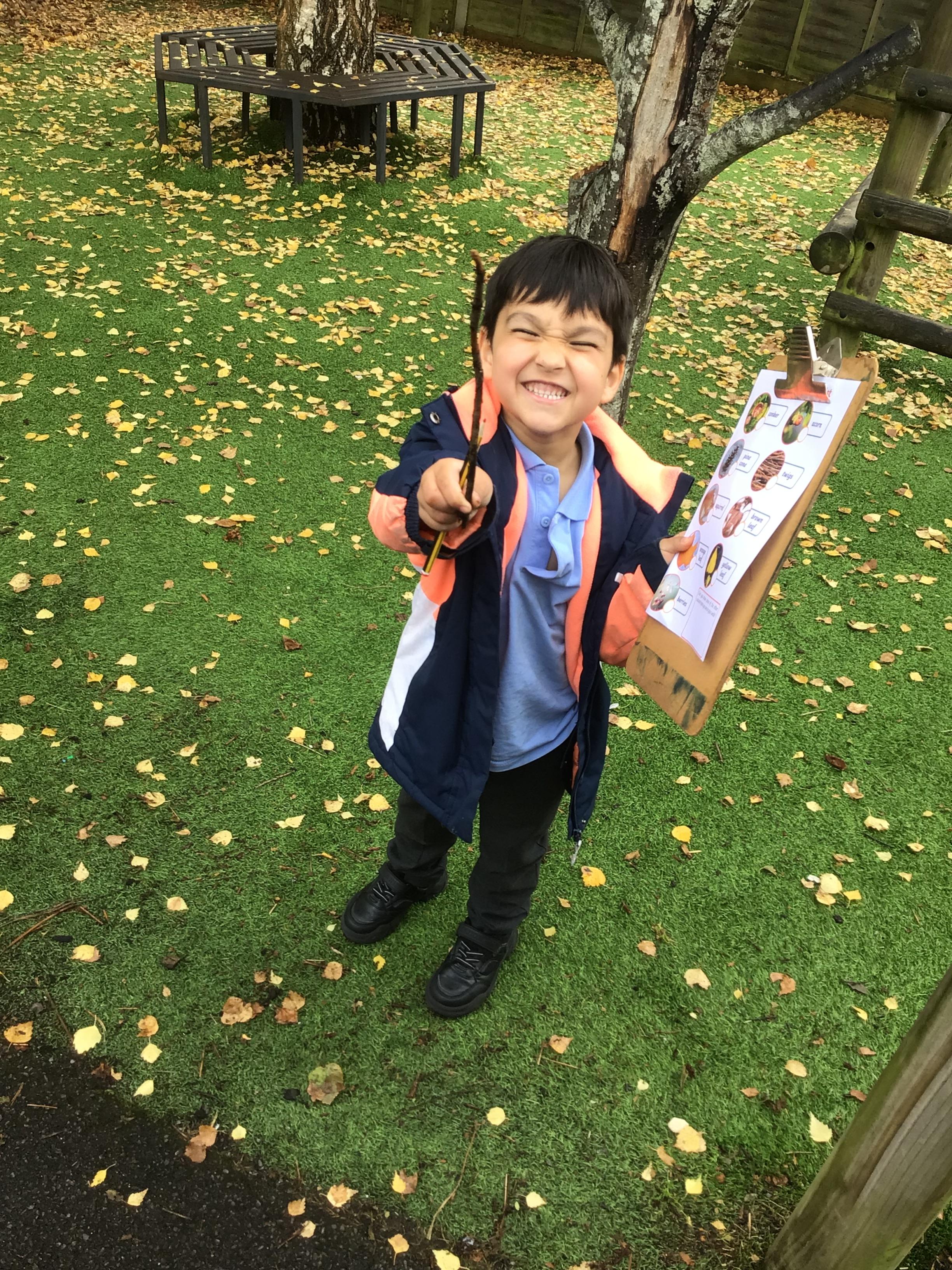 - We went on a local walk in our Wellies to collect Autumn leaves