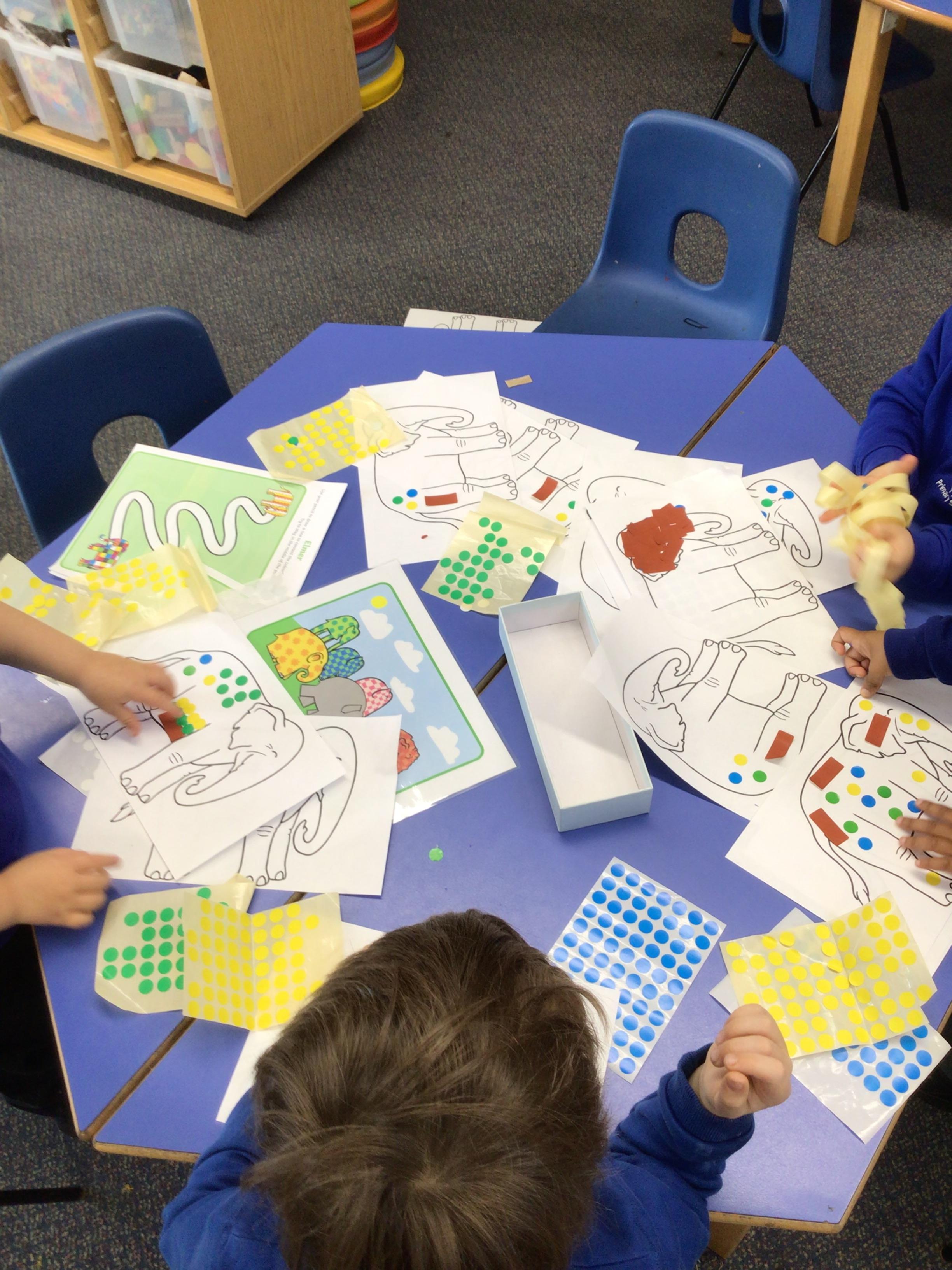 We have painted with water colours, learnt even more sounds in phonics and have been learning to retell the story of Elmer!