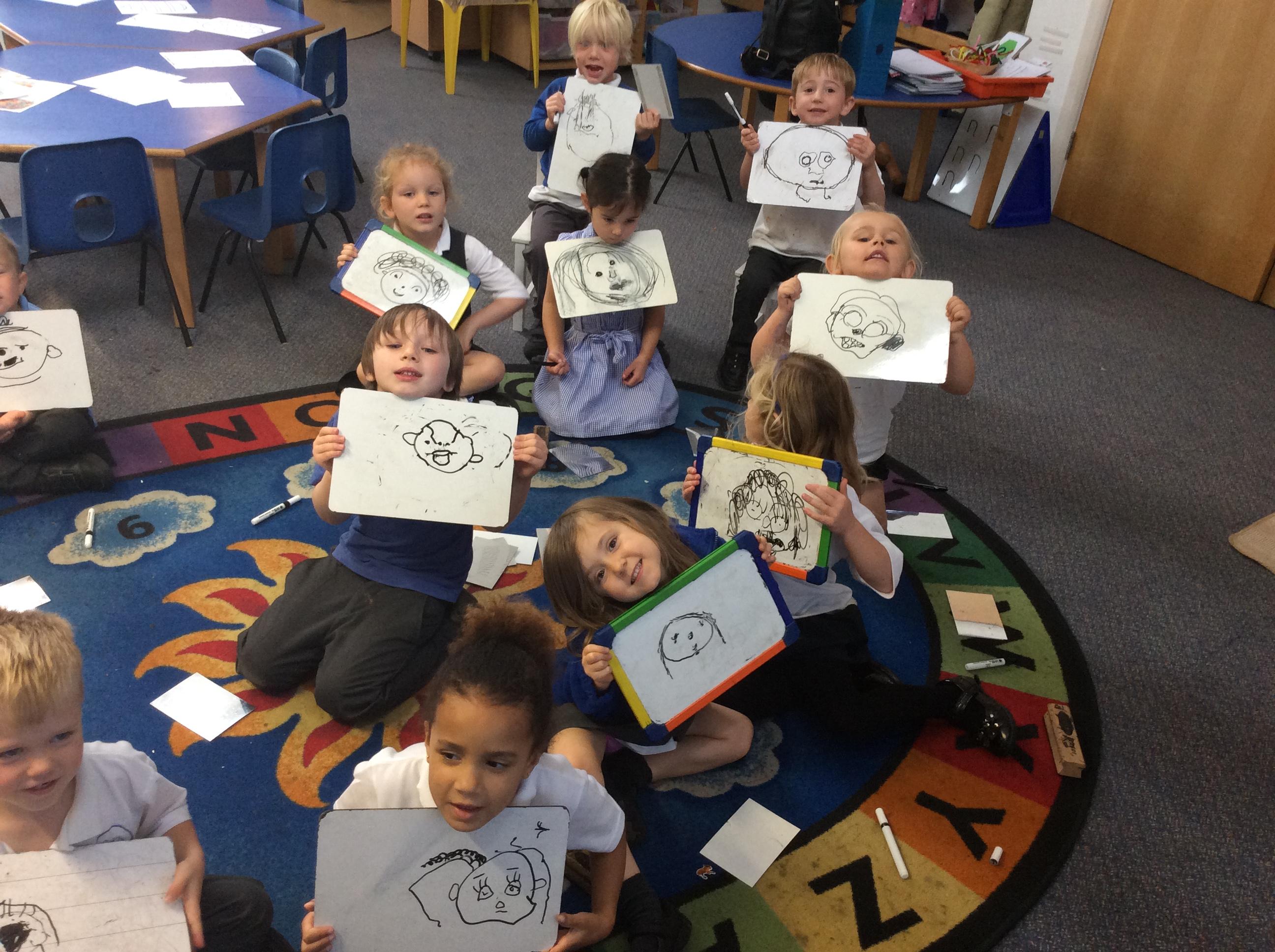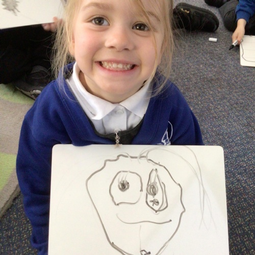 We have also worked hard on creating our own self-portraits and looked closely at each of our unique facial features.