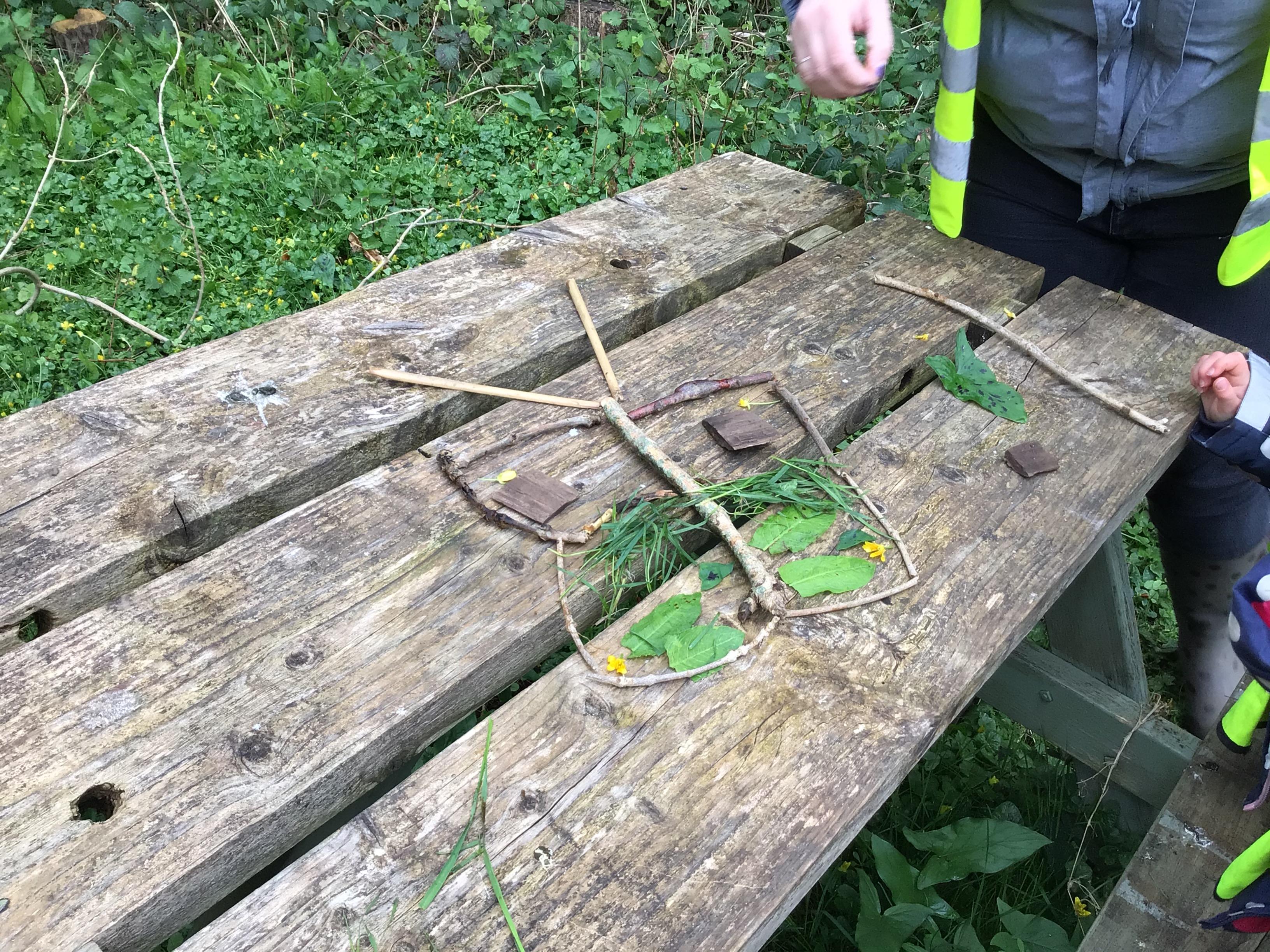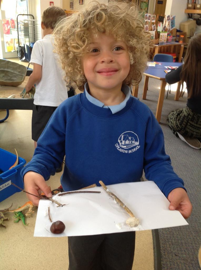 We started by making pictures of animals from materials that we found.