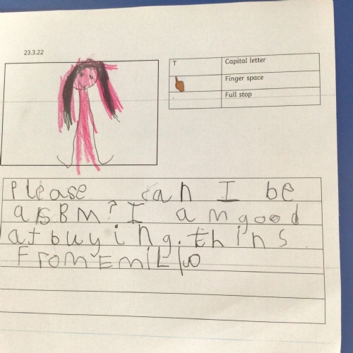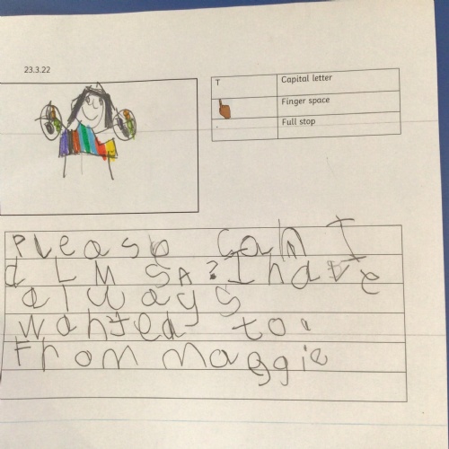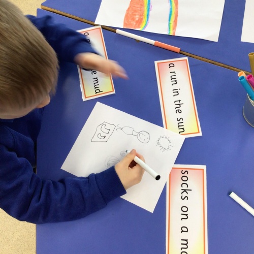 - We have continued our story ‘Magic Train Ride’ in literacy, this week we have been writing sentences about where we would like to go on the Magic Train.