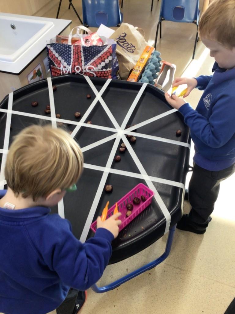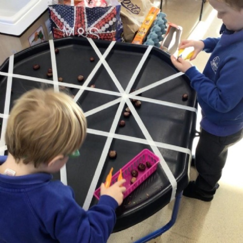 In maths we have been sharing. We have really enjoyed doing this practically and understand that it has to be the same for each one to be fair.