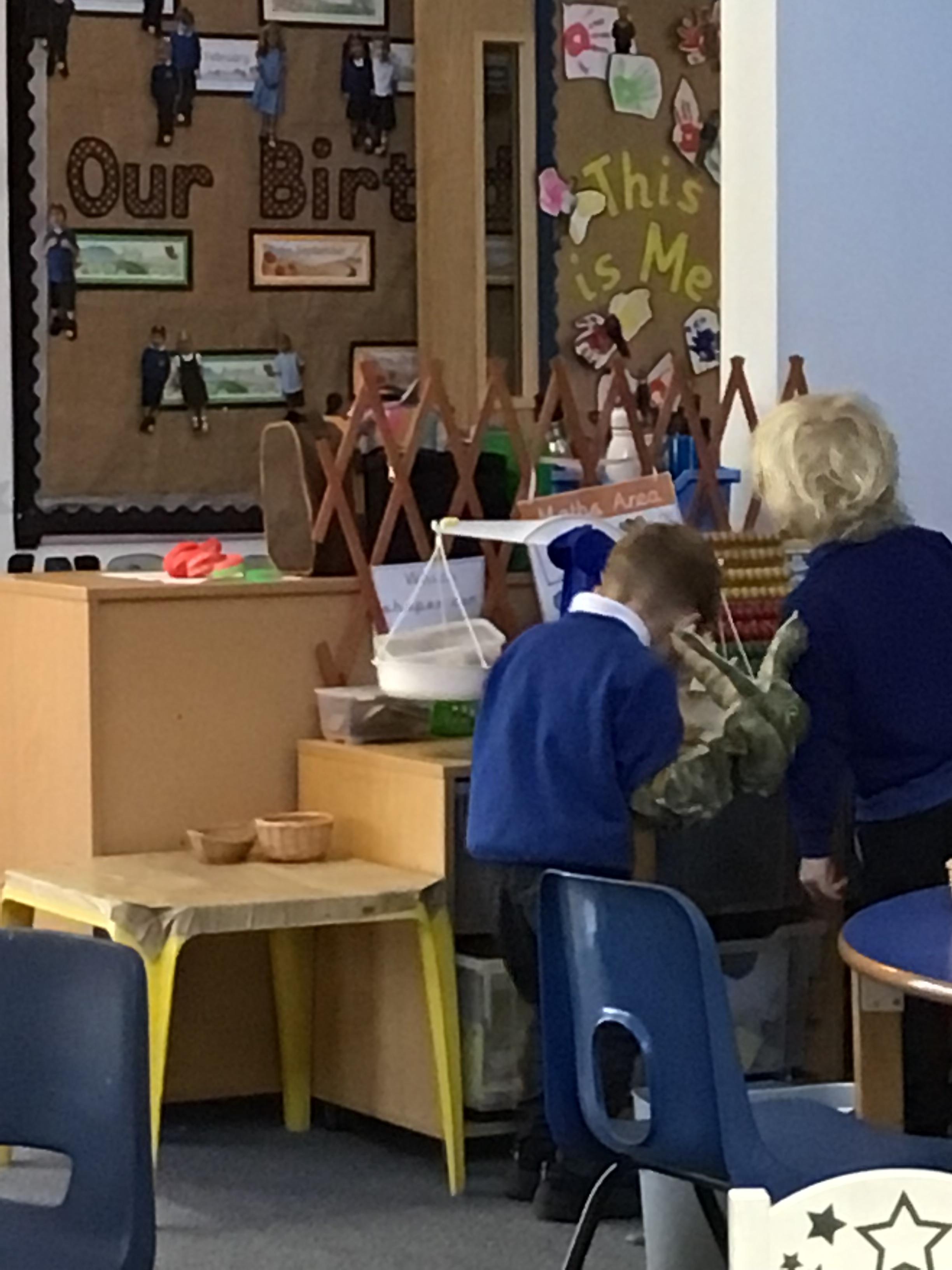 Next week is going to be even more exciting because on Thursday you will be having lunch with one of your adults AND meeting everyone in your class. It is going to be great to be altogether at last. We have put some photographs below of some of the things that you have been doing this week so that you can talk about them with your families.