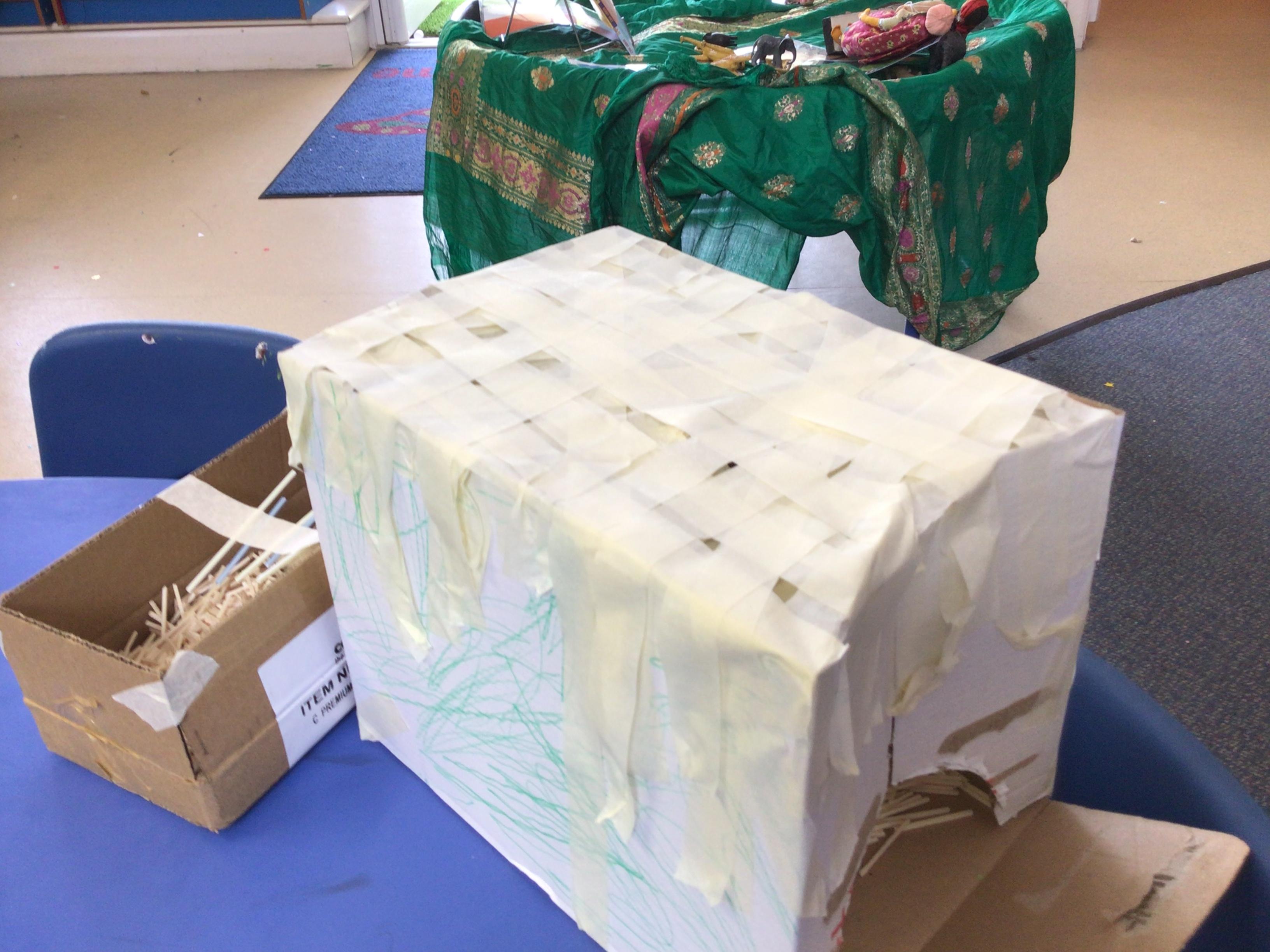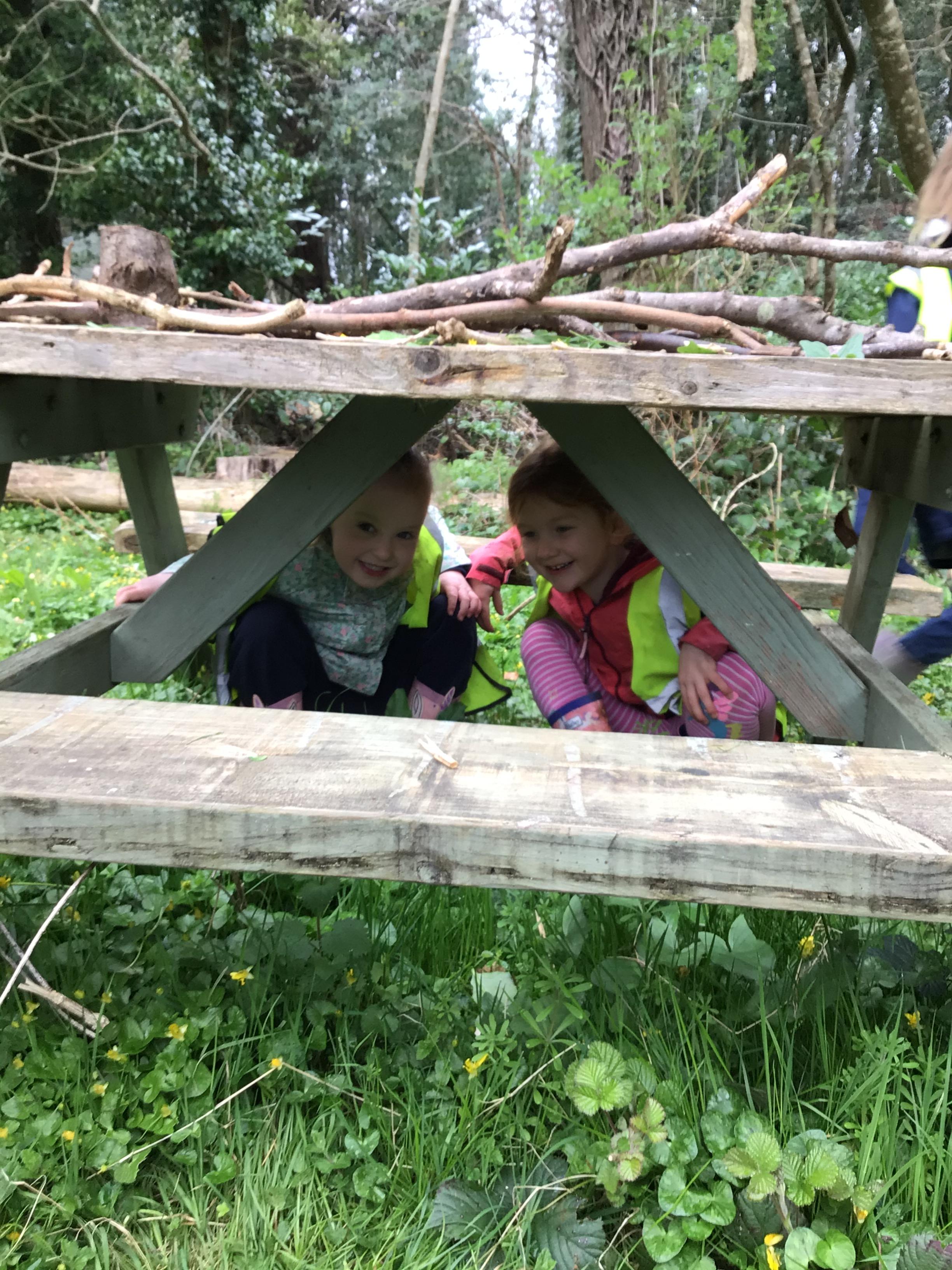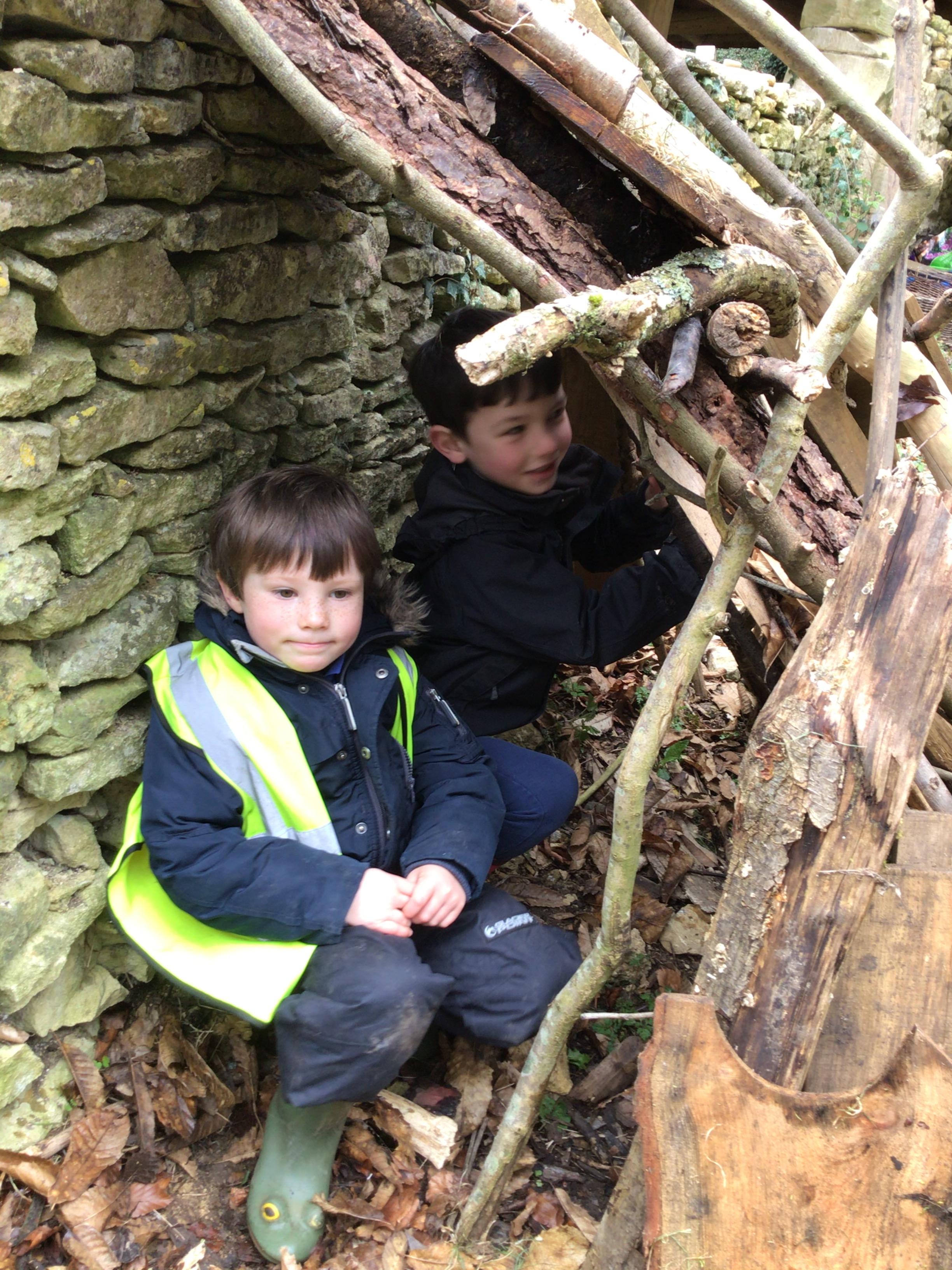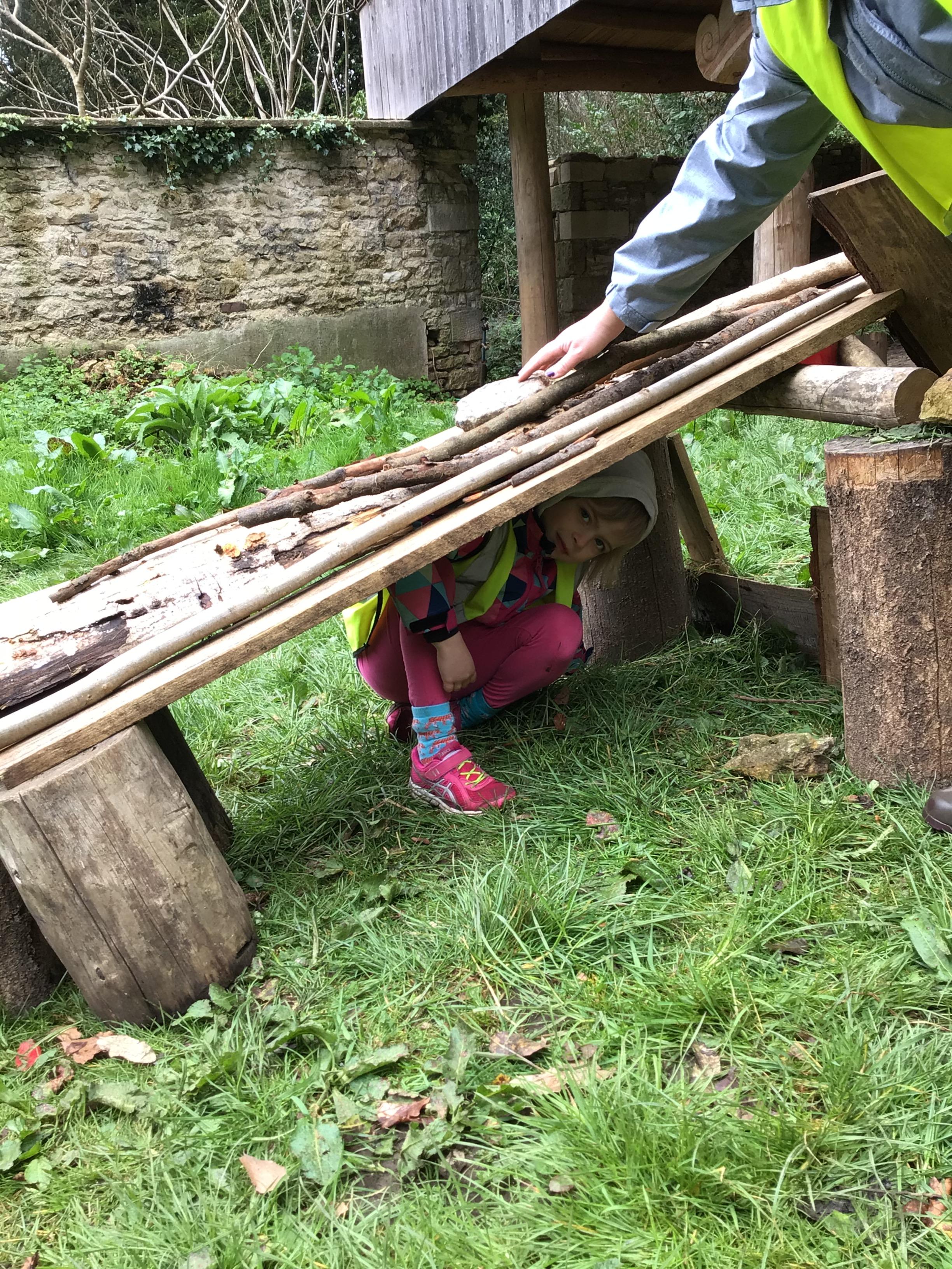 Next we made dens. The challenge was to ensure that it had a roof and that both children could fit inside!