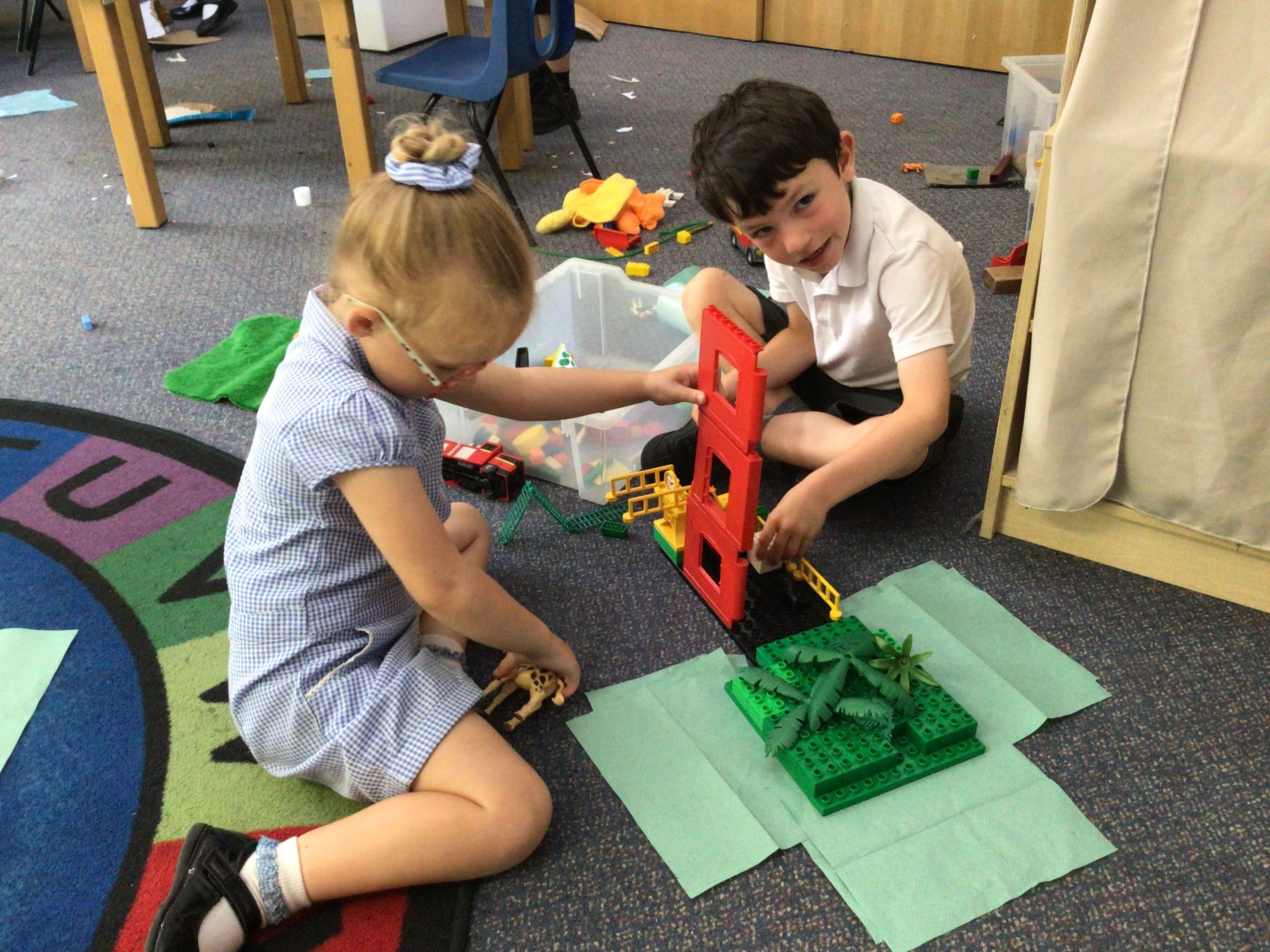 Today the children were given a very special job where they had to design and make their own zoo. The children worked brilliantly with their partners to create different enclosures to keep the animals safe - they were super imaginative and even built monkey bars, beds and bridges for the animals! Take a look at the photos below.