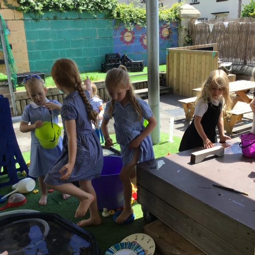 Friday was a very hot day so we decided to have a but of fun playing with the water. This progressed from simply paddling, into some amazingly complicated role play involving a queen who would not allow her servants to go on holiday!