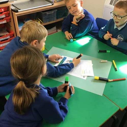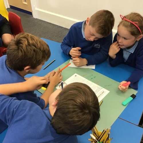 In maths, we have been working hard at reading and writing numbers. We have also looked at properties of shapes and the Y4 children have been working on symmetric figures.