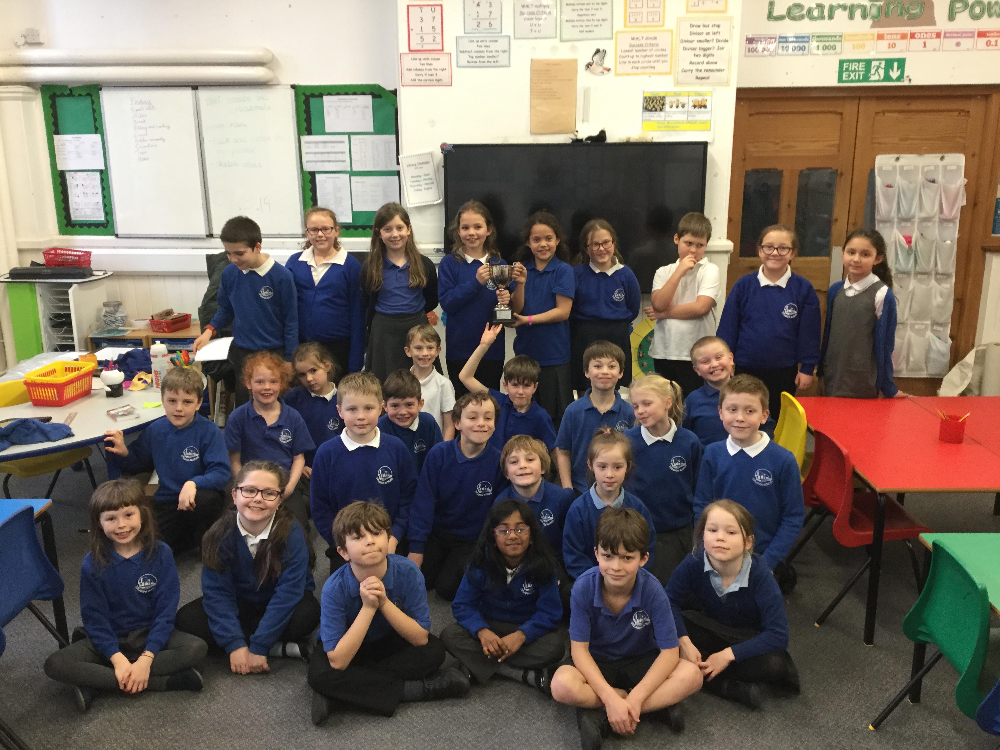 Finally, we have reclaimed the title of Best attendance in school so here is a picture of us celebrating with the trophy!