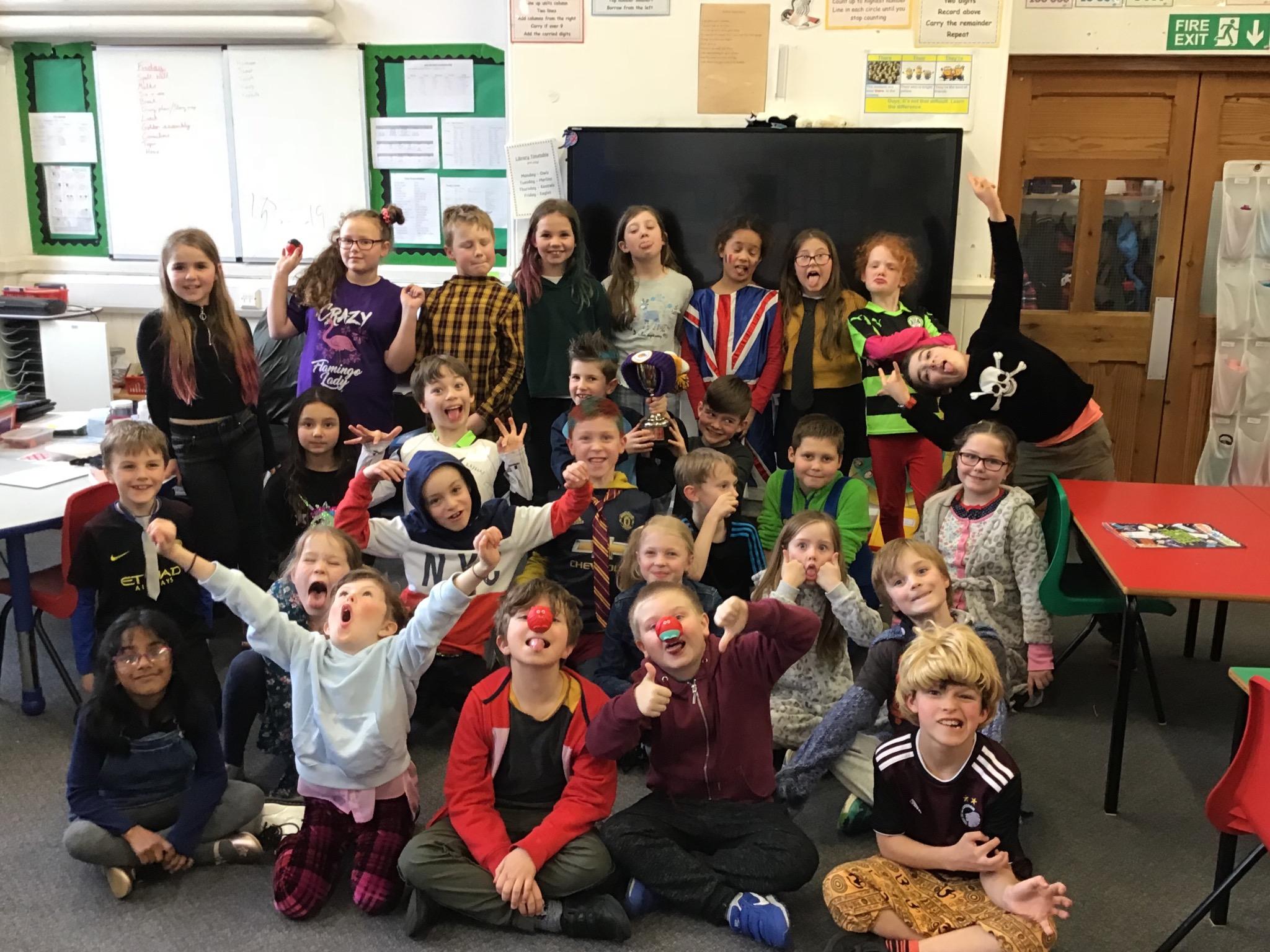 Finally, we have been able to reclaim our title of the class with the best attendance again so here is another photo of us celebrating with the trophy with all the Kestrels in their odd clothes for Red nose day on Friday.